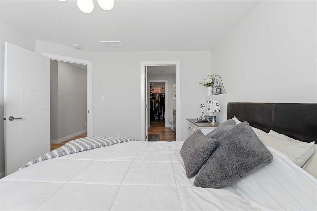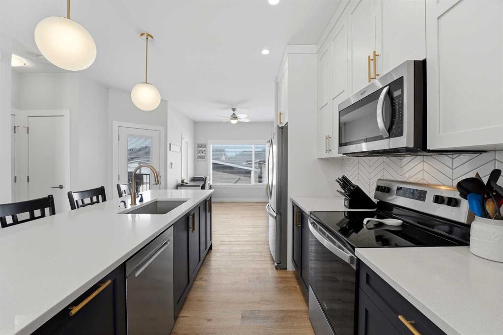 Welcome to this stunning, massively upgraded END UNIT townhome with an OVERSIZED HEATED single detached GARAGE in the desirable community of Evergreen—with NO condo fees! Built in 2020, this home showcases exceptional quality and thoughtful design throughout. The main floor features a bright, open-concept layout with gorgeous quartz countertops, a large island with pendant lighting, custom cabinetry, and a silgranite undermount sink. You’ll love the soft-close cabinets, stainless steel appliances, garburator, and trendy light fixtures that elevate the entire space. Durable vinyl plank flooring runs seamlessly throughout, including on the stair nosing, creating a clean and cohesive look. The lower level offers a rare and functional layout with TWO primary suites, each complete with their own ensuite bathrooms and large walk-in closets—ideal for guests, roommates, or flexible living. The larger suite features a dual vanity, glass shower, and a massive walk-in closet. All bathrooms throughout the home include undermount sinks and higher counter heights for added comfort and style. Additional upgrades include triple pane windows, a high-efficiency furnace, central A/C, and numerous electrical enhancements such as extra outlets, dimmer switches, conduit for hidden TV wiring, and added pendant lighting. This home is also equipped with smart technology including a Nest thermostat, Nest smoke detector, and Ring doorbell and rear camera with motion lighting. Step outside to enjoy your covered deck with Duradek, perfect for low-maintenance outdoor living, along with a fully fenced yard with vinyl fencing. The property truly stands out with its RARE oversized single detached HEATED garage, plus an additional powered parking pad for extra convenience. Located in Evergreen, you’ll enjoy easy access to golf courses, walking and biking trails, Canyon Ski Hill, and all essential amenities. This is a beautifully finished, move-in-ready home where no expense was spared—a must-see!