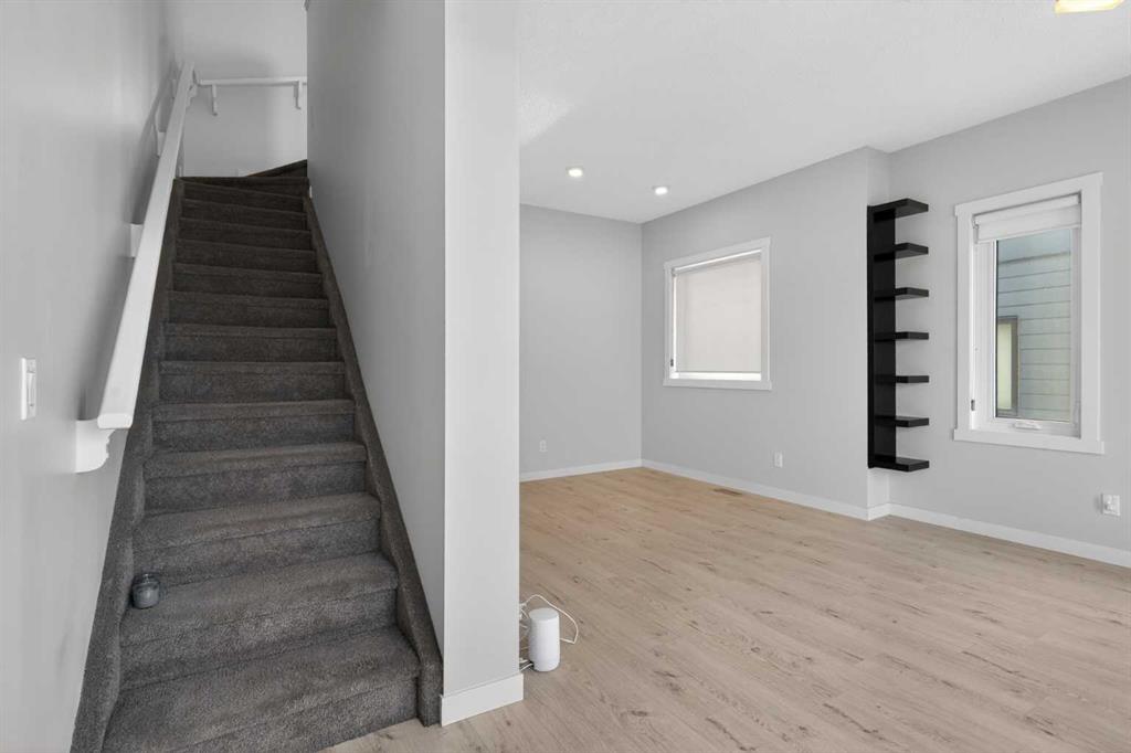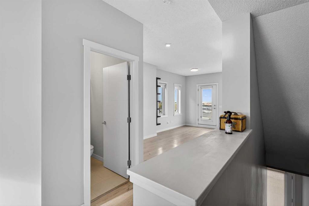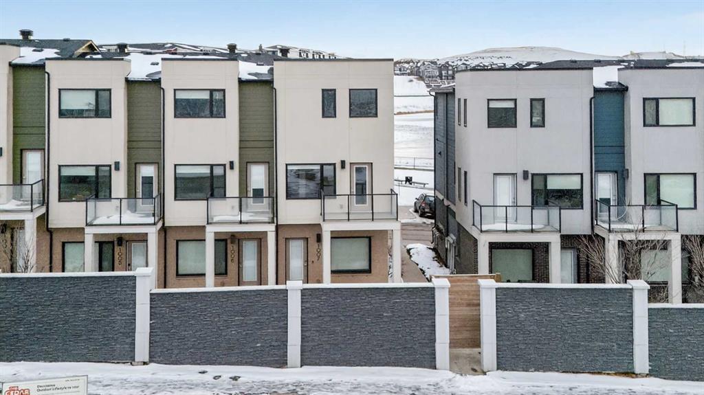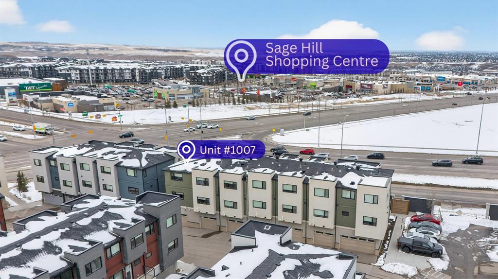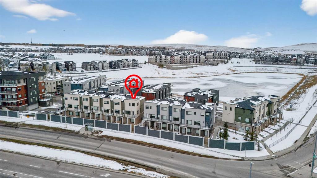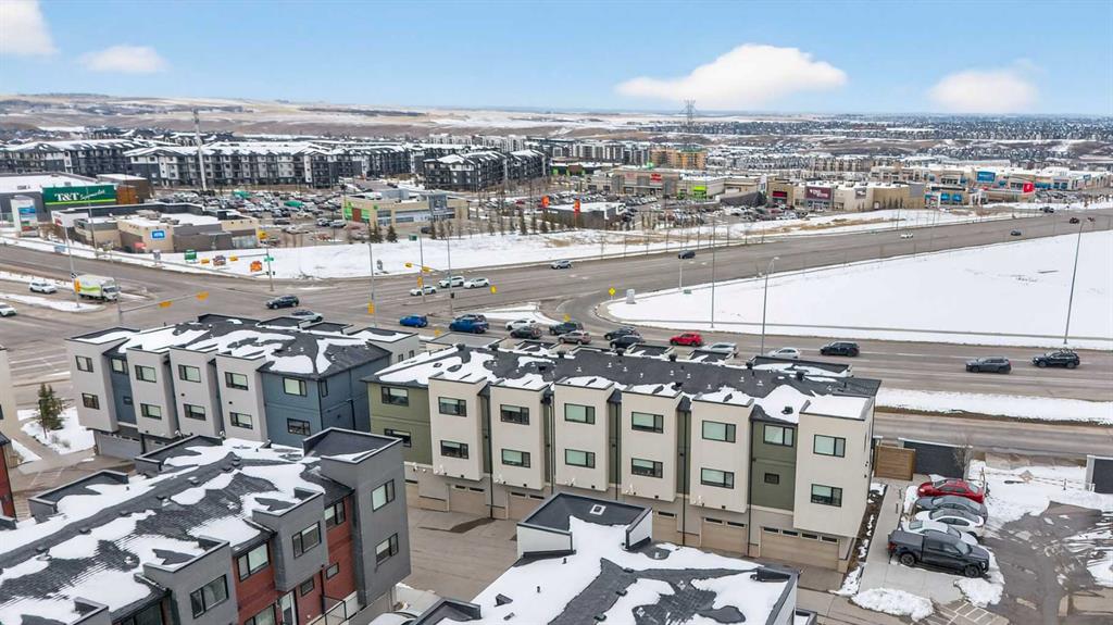 Welcome to this bright and stylish end-unit townhome in the sought-after community of Sherwood NW. Offering approximately 1,232 sq ft of thoughtfully designed living space, this modern two-bedroom, 2.5-bath home combines comfort, functionality, and scenic views—perfect for professionals, couples, or small families. The open-concept main floor is filled with natural light and features a spacious living and dining area, ideal for both everyday living and entertaining. The contemporary kitchen is equipped with quartz countertops, a breakfast bar, and ample cabinetry, providing both style and practicality. A mix of carpet, laminate, and vinyl flooring adds comfort and durability throughout, while high ceilings enhance the bright, airy feel of the home. Upstairs, you’ll find a generous primary bedroom with plenty of natural light, along with a second well-sized bedroom—perfect for guests, a roommate, or a home office. The home also includes convenient in-suite laundry for added ease. Enjoy your private balcony, ideal for relaxing outdoors, with views of the nearby pond from the kitchen and city views from the living and dining areas. An attached tandem double garage offers secure parking and additional storage. Located in a quiet, family-friendly neighbourhood, this home is just minutes from shopping, dining, and everyday conveniences at Sage Hill Crossing, as well as parks, pathways, and public transit. With easy access to Stoney Trail and major routes, commuting across the city is seamless. A fantastic opportunity to own a modern, low-maintenance home in a thriving NW Calgary community.