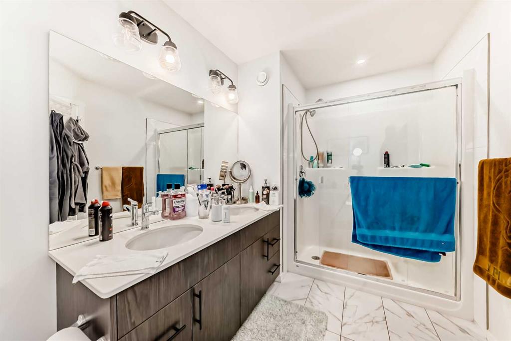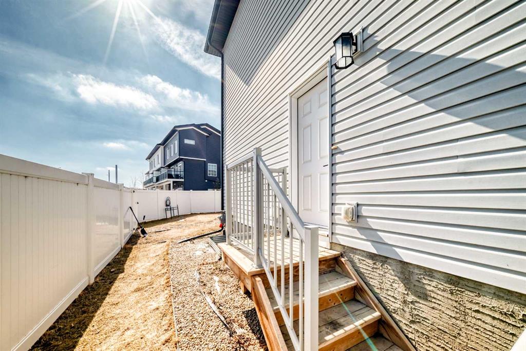 Welcome home to this immaculate three-bedroom semi-detached home in Walden. GENEROUSLY SIZED BEDROOMS, this home provides ample space for the whole family. On the open-concept main floor, you will find a beautifully designed kitchen with UPGRADED APPLIANCES, gorgeous QUARTZ COUNTERTOPS, and a spacious PANTRY. The LARGE WINDOWS in the living and dining room offer beautiful NATURAL LIGHT, and the UPGRADED LVP FLOORING adds to the elegance of the space. Step outside into the beautifully Backyard, featuring a spacious deck, white vinyl fence, the upper floor also features convenient UPSTAIRS LAUNDRY, a WALK-IN CLOSET and a DOUBLE-VANITY BATHROOM. A SEPARATE SIDE ENTRANCE offers the opportunity to convert the basement with roughed-in plumbing into a SECONDARY Unit, subject to approval and permitting by the City. The spacious DOUBLE ATTACHED GARAGE completes this beautiful home. A PARK AND GREEN SPACE are located conveniently across the street, and popular SHOPPING AND DINING districts are just a few minutes away. Don’t miss out on this gorgeous home in one of Calgary’s most desirable communities!