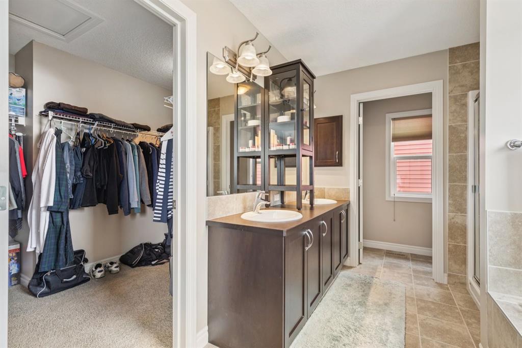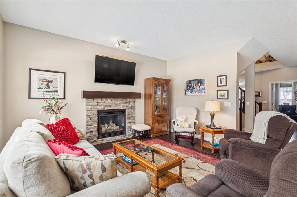 Welcome to #7 Cooperstown Place SW—an exceptional, meticulously maintained residence in the highly sought-after community of Coopers Crossing. Proudly offered by the original owners, this sophisticated 2,538 Sq Ft home blends timeless design with thoughtful, high-end upgrades, all set on a quiet, low-traffic street with a desirable sunny south-facing backyard.From the moment you arrive, the stunning stucco and stone exterior and undeniable curb appeal set the tone. Inside, you're greeted by an open foyer with an elegant, inviting staircase and 9’ ceilings that carry throughout the main level. The bright, open-concept layout is flooded with natural light from an abundance of windows, creating a warm and welcoming atmosphere.The heart of the home is the massive chef-inspired kitchen, featuring quartz countertops, extensive cabinetry, and generous prep space—perfect for everyday living and entertaining alike. High-end stainless-steel appliances, including a double induction oven, elevate the space, while the adjacent dining area comfortably accommodates a growing family. The living room showcases a beautiful stone surround fireplace, adding both warmth and character. A versatile main floor office/den/library with double French doors offers the perfect work-from-home setup or quiet retreat. Upstairs, you’ll find a spacious and sunlit bonus room, convenient upper-level laundry, and three generously sized bedrooms. The primary suite is a true sanctuary, complete with a walk-in closet and a luxurious 5-piece en suite featuring a barn door entrance and quality finishes throughout. This home is equipped for comfort year-round with two furnaces and dual A/C units, along with a water softener and newer hot water tank. Custom built-ins and upgraded millwork throughout further highlight the attention to detail. Step outside to your private backyard oasis—fully fenced and beautifully landscaped with mature trees along the rear for added privacy. Enjoy summer evenings on the two-tier deck with pergola, privacy walls, and gemstone exterior LED soffit lighting for ambiance. A custom storage shed and a concrete walkway running from front to back add both function and convenience. The attached double garage features epoxy flooring and comfortably accommodates a pickup truck & more. Every aspect of this home reflects pride of ownership—it is exceptionally clean, well-cared for, and truly move-in ready. Located within walking distance to schools, parks, pathways, and amenities, with easy access out of town, this is a rare opportunity to own a high-end home in one of Airdrie’s most prestigious communities. A perfect blend of luxury, functionality, and location—this home is sure to impress.