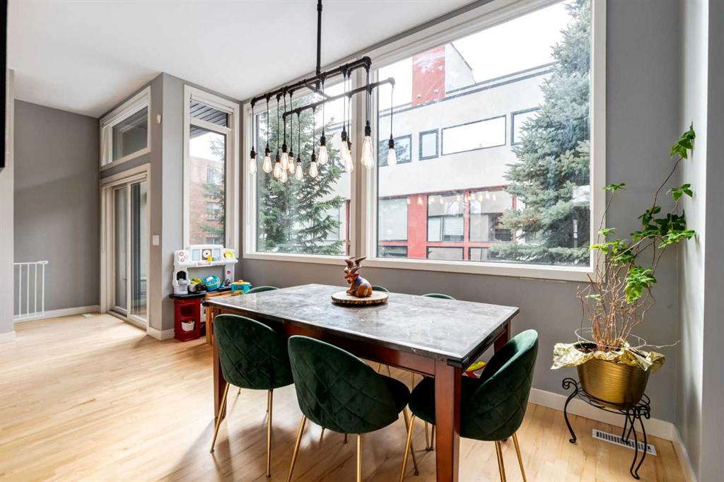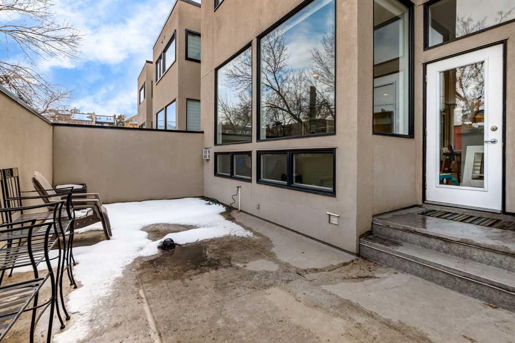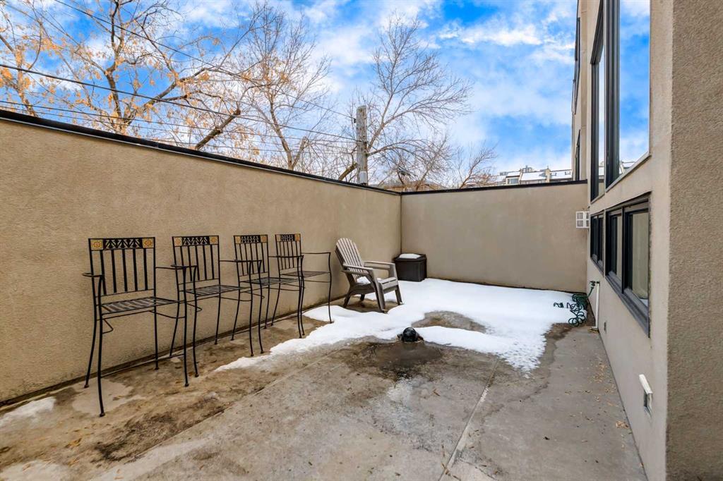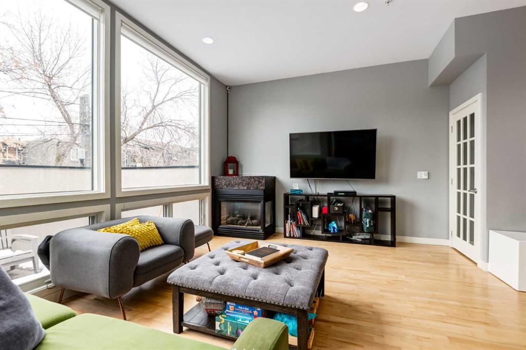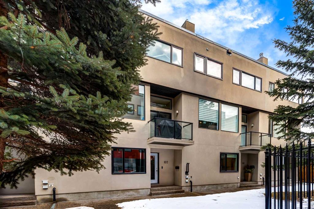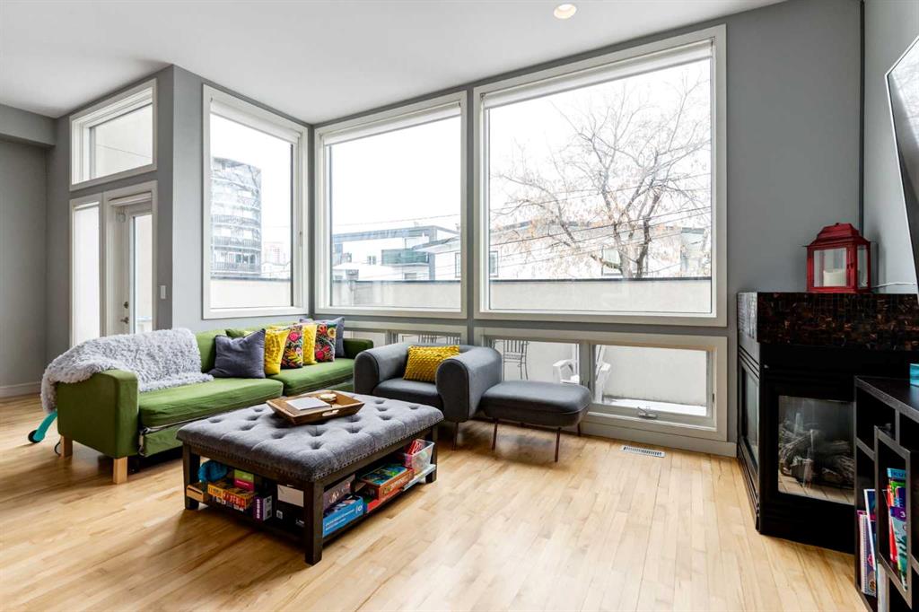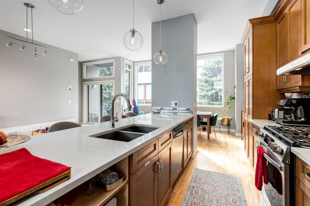 Welcome to this exceptional three-storey townhome offering over 2,650 sq. ft. of beautifully designed living space, ideally situated in a quiet, gated complex just steps from vibrant 17th Ave SW—providing unmatched access to Calgary’s best dining, shopping, and amenities. As the largest unit in this thoughtfully designed development, this home impresses with 4 spacious bedrooms, 3 full bathrooms, soaring 10-foot ceilings, and an abundance of natural light enhanced by multiple skylights. Recent updates, including brand new carpet and modern finishes, complement the timeless elegance of maple hardwood flooring and quartz countertops throughout. The main level showcases a bright and open concept layout featuring near floor-to-ceiling windows, a cozy gas fireplace, and a gourmet kitchen complete with rich walnut cabinetry, stainless steel appliances including a gas stove, a large island, and a sunny breakfast nook with French doors leading to a private patio—perfect for indoor-outdoor living. An elegant dining area offers west-facing exposure and access to a charming balcony overlooking the beautifully maintained courtyard. Upstairs, retreat to a spacious primary suite with a four-piece ensuite, alongside two additional generously sized bedrooms, a full bath, and convenient upper-floor laundry, all illuminated by a stunning four-panel skylight. The entry level adds exceptional versatility with a large den/media room or fourth bedroom, a full 3-piece bath, and direct access to the double heated garage. A fully finished basement with built-in cabinetry and an additional fridge provides even more functional space for storage or entertaining. Enjoy outdoor living with both a large private deck and a second balcony, offering multiple spaces to relax and unwind. Meticulously maintained and move-in ready, this home combines space, style, and an unbeatable location—an opportunity not to be missed.