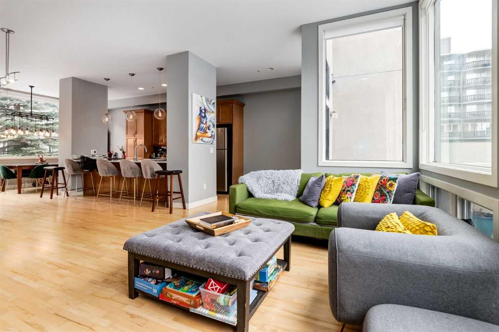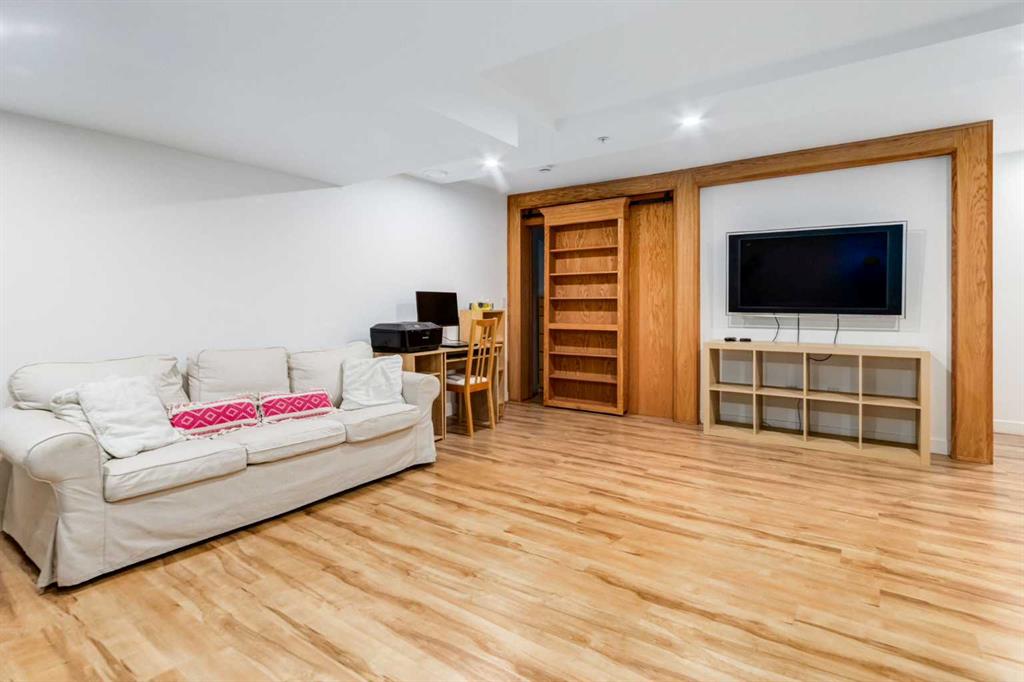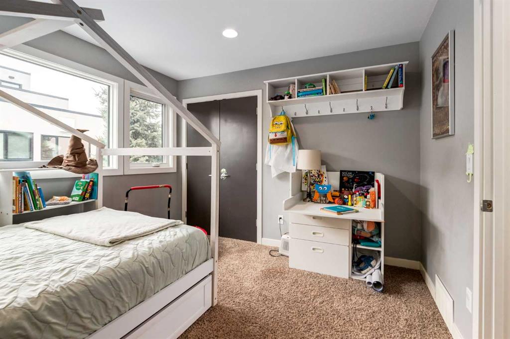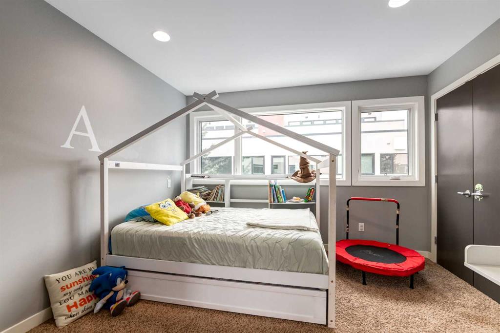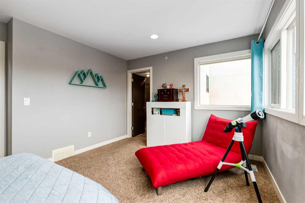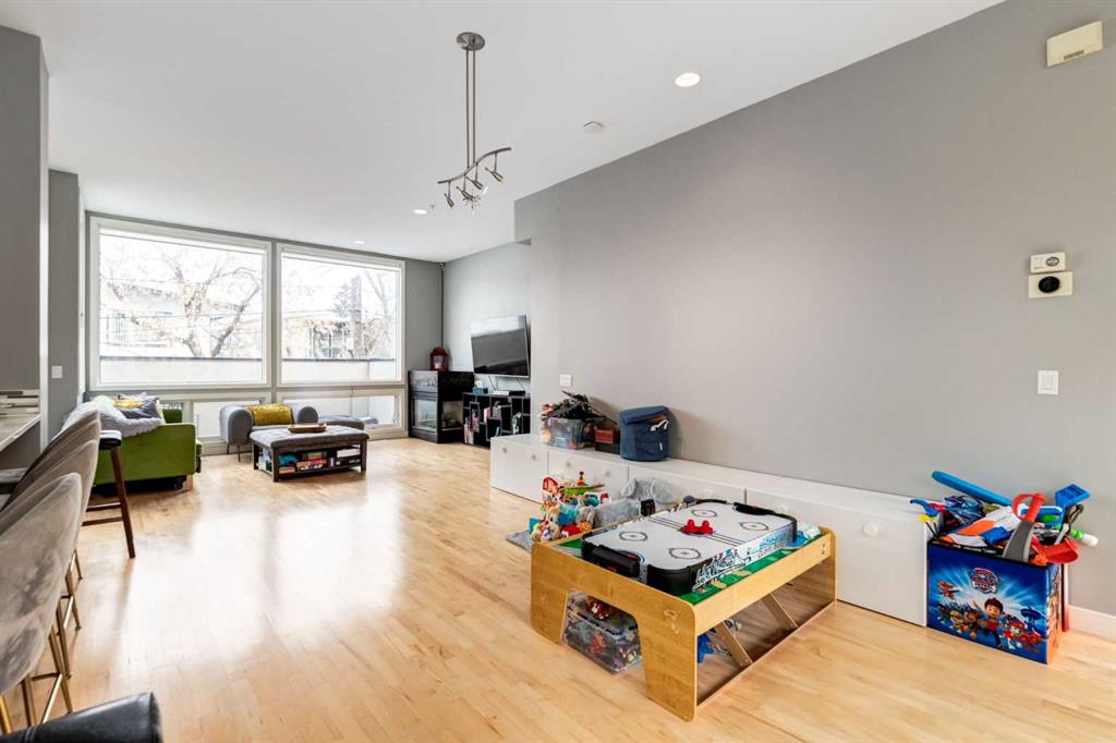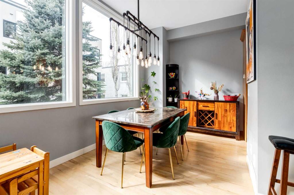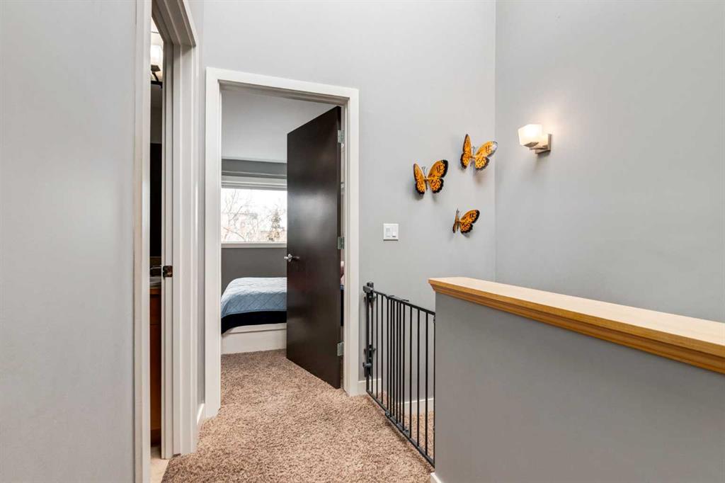 Welcome to this exceptional three-storey townhome offering over 2,650 sq. ft. of beautifully designed living space, ideally situated in a quiet, gated complex just steps from vibrant 17th Ave SW—providing unmatched access to Calgary’s best dining, shopping, and amenities. As the largest unit in this thoughtfully designed development, this home impresses with 4 spacious bedrooms, 3 full bathrooms, soaring 10-foot ceilings, and an abundance of natural light enhanced by multiple skylights. Recent updates, including brand new carpet and modern finishes, complement the timeless elegance of maple hardwood flooring and quartz countertops throughout. The main level showcases a bright and open concept layout featuring near floor-to-ceiling windows, a cozy gas fireplace, and a gourmet kitchen complete with rich walnut cabinetry, stainless steel appliances including a gas stove, a large island, and a sunny breakfast nook with French doors leading to a private patio—perfect for indoor-outdoor living. An elegant dining area offers west-facing exposure and access to a charming balcony overlooking the beautifully maintained courtyard. Upstairs, retreat to a spacious primary suite with a four-piece ensuite, alongside two additional generously sized bedrooms, a full bath, and convenient upper-floor laundry, all illuminated by a stunning four-panel skylight. The entry level adds exceptional versatility with a large den/media room or fourth bedroom, a full 3-piece bath, and direct access to the double heated garage. A fully finished basement with built-in cabinetry and an additional fridge provides even more functional space for storage or entertaining. Enjoy outdoor living with both a large private deck and a second balcony, offering multiple spaces to relax and unwind. Meticulously maintained and move-in ready, this home combines space, style, and an unbeatable location—an opportunity not to be missed.