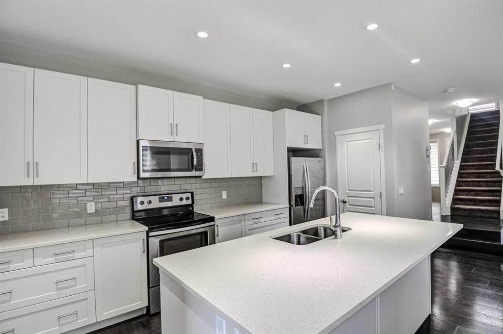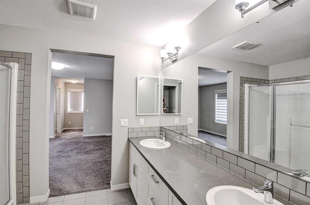 Opportunity knocks to own a beautiful & spacious house at an affordable price in a most sought after lake community of Mahogany. Over 2100 sq ft of living space! The front porch and stucco/stone exterior create a beautiful curb appeal to the house. Greeted by an oversized foyer, this home has an immediate feeling of comfort in an open design main floor with the focal lifestyle room showcasing a gas fireplace framed by two drop down beams. Bright & spacious living room and dinning room. Kitchen has a large quartz island, quartz counter tops & stainless steel appliances. The upper floor boasts a front bonus room, convenient laundry, two great sized bedrooms, and huge primary bedroom ( full ensuite and a huge walk-in-closet) situated at the back for a private & quite setting. Big side yard for outdoor entertaining, BBQ gas line and for kids and pets to play. Basement has a high ceiling, partitioned, drywalled and has an unfinished 3-pc bath. Have all the spaces to your creative ideas. The rear attached garage (25' x 20') is huge and insulated. This home is walking distance to the wetlands and the main beach. Mahogany is housed with both Public and Catholic schools. Mahogany School (K-5). Divine Mercy School (K-6)