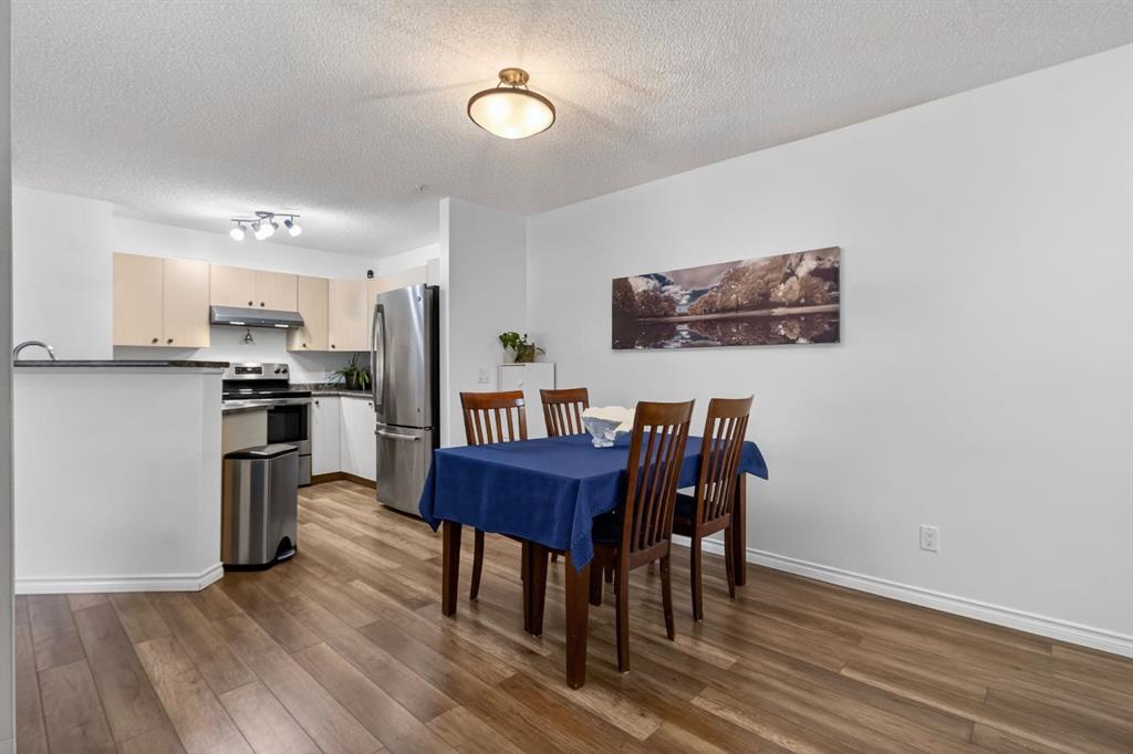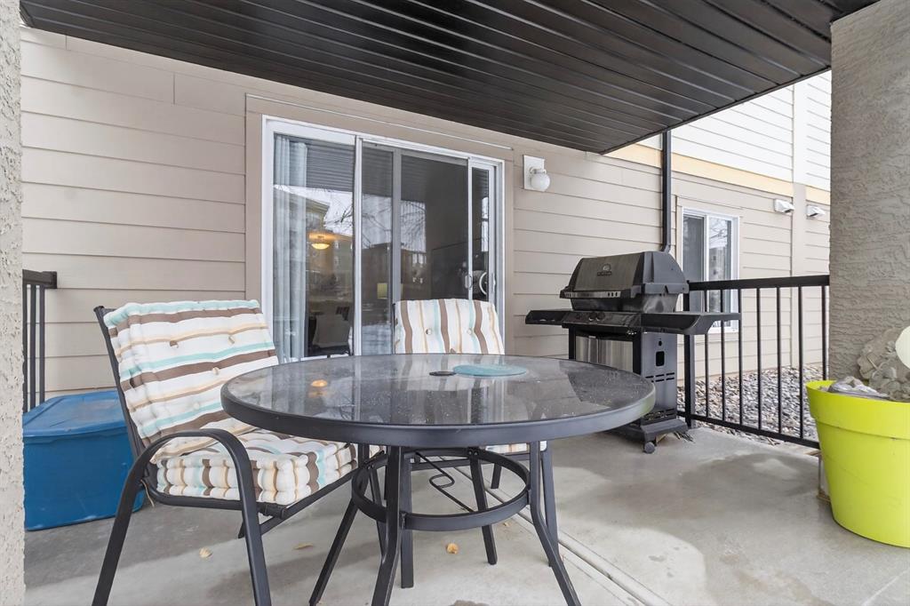 **OPEN HOUSE APRIL 26, 2026 FROM 1:00 P.M. - 3:00 P.M.** Welcome to Mackenzie Pointe backing onto green space, all utilities are included with the condo fees. This beautifully maintained ground-floor 2 bedroom, 2 bathroom condo offers incredible value with two parking stalls (titled underground + assigned outdoor) and a titled storage locker. Step inside to a bright, modern interior featuring upgraded laminate flooring and fresh paint throughout. The welcoming entryway offers excellent functionality with two closets, including one with in-suite laundry. The open-concept layout creates a seamless flow, perfect for both everyday living and entertaining. The spacious kitchen is thoughtfully designed with light-toned cabinetry, a breakfast bar, and newer stainless steel appliances. Overlooking the dining and living areas, it allows you to stay connected while hosting or enjoying a quiet night in. The living room is filled with natural light from a large sliding glass door that leads to your private, covered northwest-facing patio, backing onto beautiful greenspace and mature trees, a peaceful setting to relax and unwind. The generous primary suite features a bright window, walk-in closet, and a private 4-piece ensuite. The second bedroom is ideally located on the opposite side of the unit, complete with its own 4-piece bathroom, perfect for guests, roommates, or added privacy. Additional highlights include, ground-floor convenience, all utilities included, titled underground parking (truck-friendly), second outdoor stall steps from the entrance, titled storage locker, private covered patio backing greenspace. Move-in ready and offering exceptional comfort and convenience, this is one you won’t want to miss. Book your private showing today!