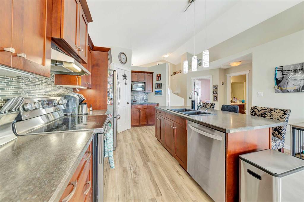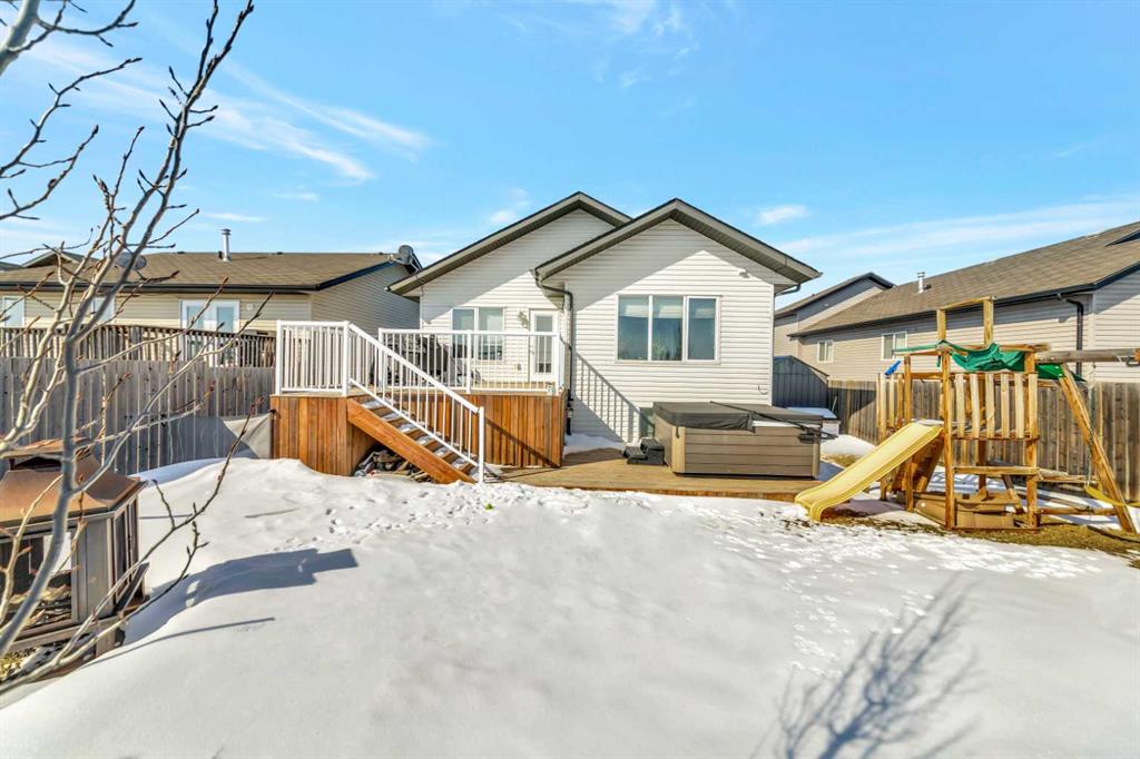 Fantastic Sask side location with no back neighbours on a very quiet street. This 5 bedroom, modified bi-level is move-in ready with a lot of perks including: Central air conditioning, RV parking, new flooring, hot tub and a double attached heated garage! This home offers a great floor plan with the kitchen featuring a large island, garburator, corner pantry and ample cabinet and counter top space. The primary bedroom is a generous size and has a walk-in closet and ensuite. The basement is complete for you with 2 bedrooms, an additional bathroom and a large family room. From the heated garage to the private hot tub and quiet Sask-side location, every detail of this move-in-ready home is designed to elevate your lifestyle—just turn the key and welcome home!