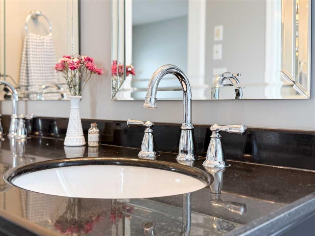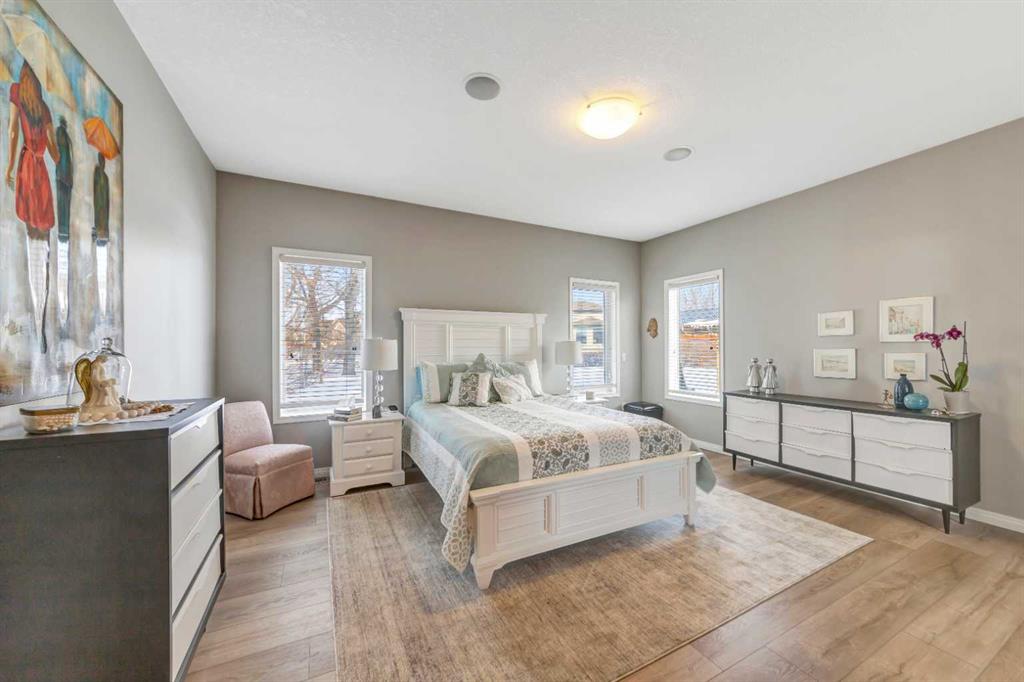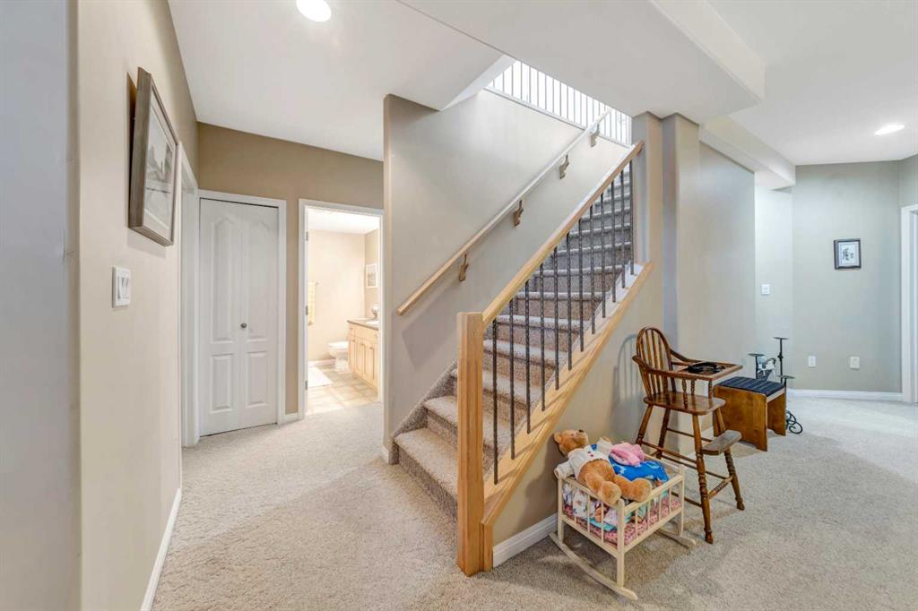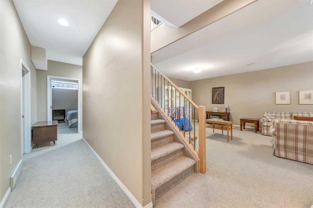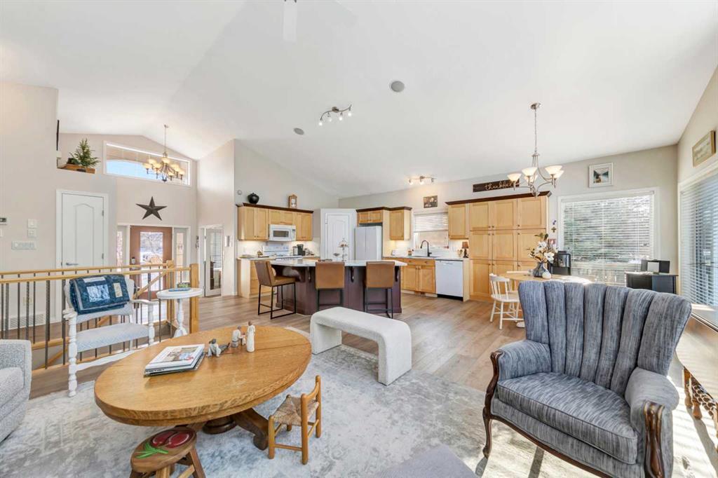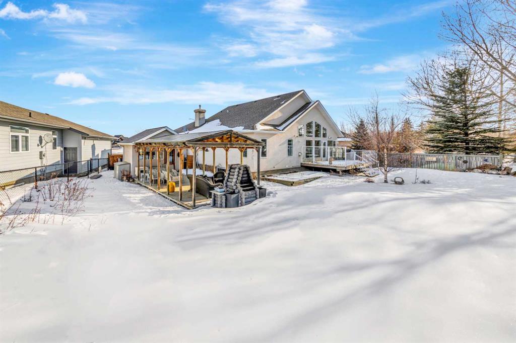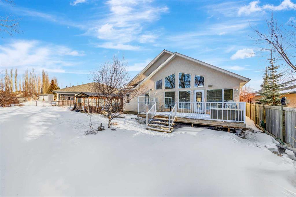 Backing onto the beautiful Bud Miller Park on a lot of over 10,000 square feet, this stunning bungalow is a rare find in a quiet, family-friendly cul-de-sac. From the moment you step inside, the thoughtful floor plan impresses. A generous foyer welcomes you in, with a den at the front before opening into the bright, airy main floor. Vaulted ceilings and updated flooring flow throughout, while oversized windows frame spectacular views of the lush backyard and parkland beyond. The kitchen features updated countertops and a pantry, seamlessly overlooking the dining area and living room — anchored by a cozy gas fireplace, it's the perfect space for both everyday living and entertaining. The spacious primary suite offers a fully updated ensuite complete with a jet tub, separate shower, and water closet. Rounding out the main floor are a full bathroom, a dedicated laundry room, and direct access to the heated 27x26 attached garage. Downstairs, the fully finished basement with 9-foot ceilings provides exceptional additional living space, featuring two large bedrooms, a private office, a family room, a full bathroom, and abundant storage. Outside, the property offers RV parking and plenty of room to enjoy. Recent updates include new shingles (2024) and a new water heater (2025), with central air conditioning for year-round comfort — all sitting on a solid concrete foundation. A truly special home that checks every box — inside and out.