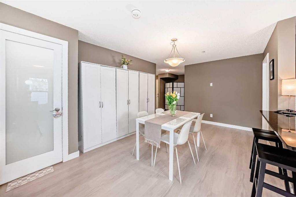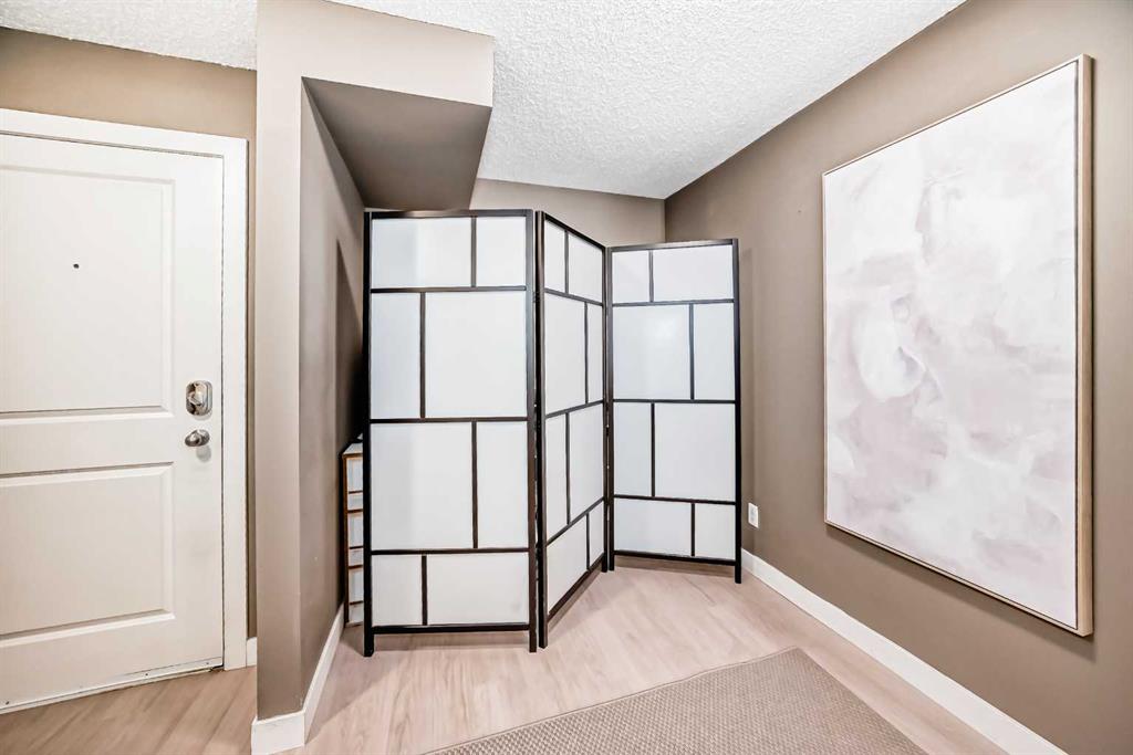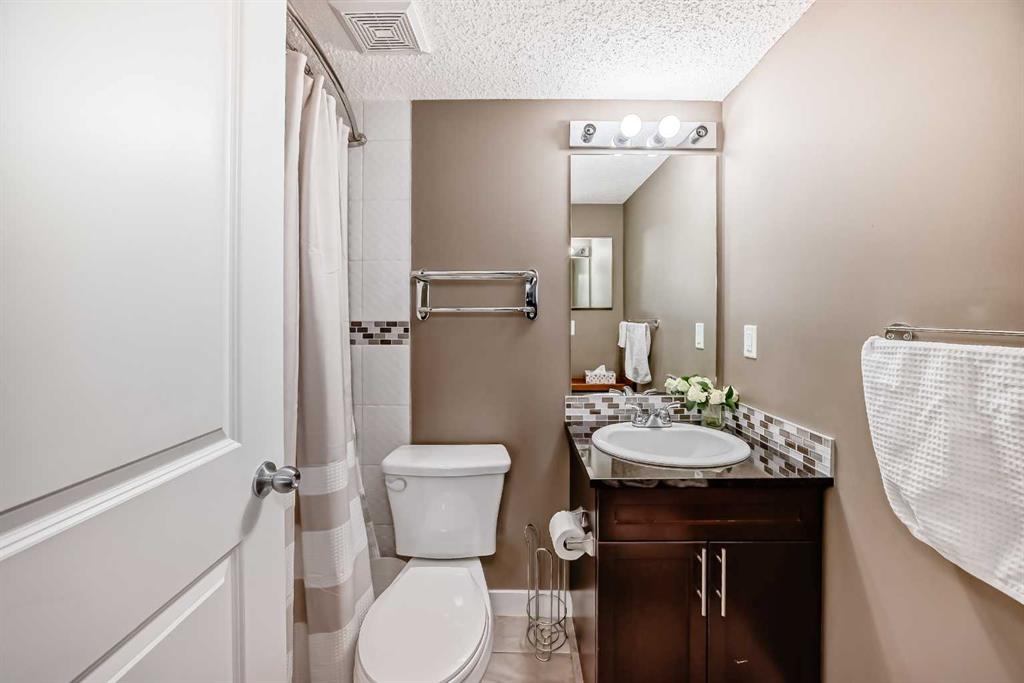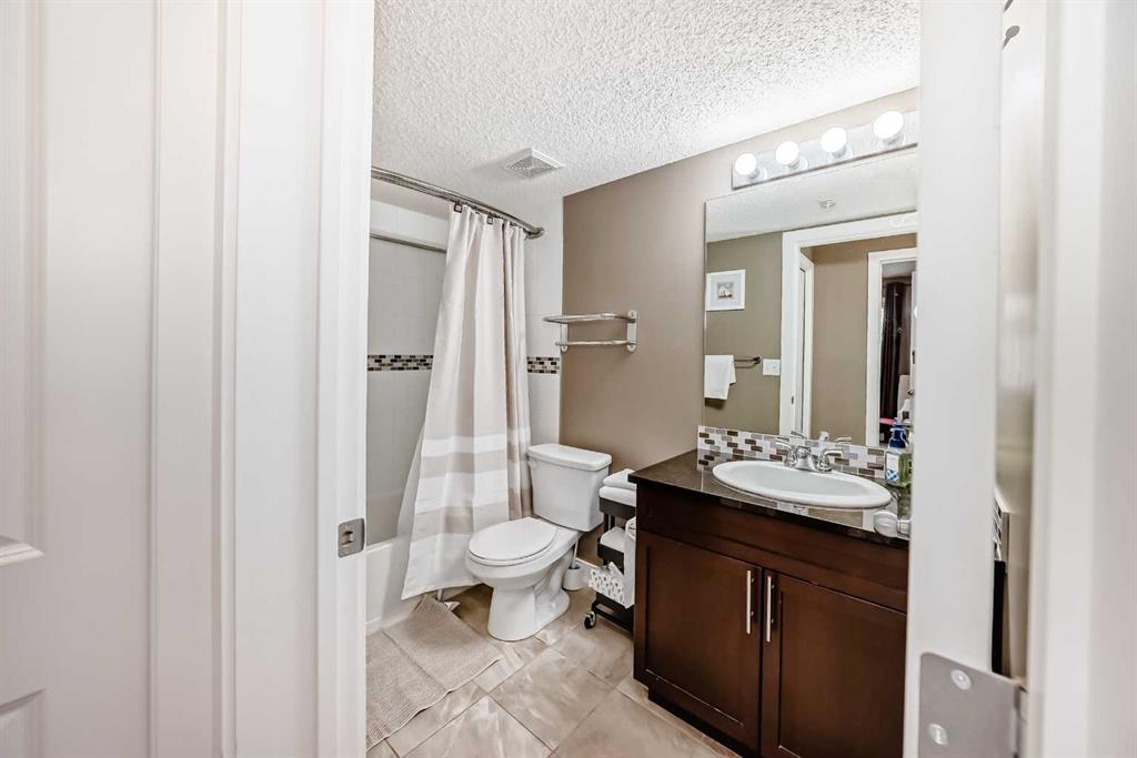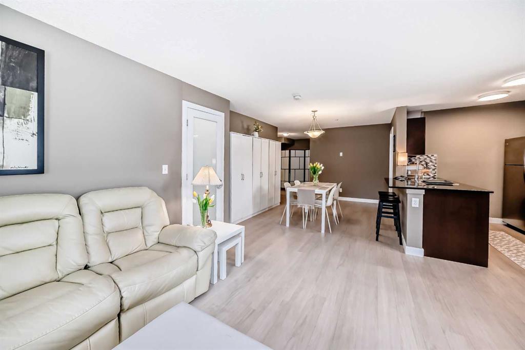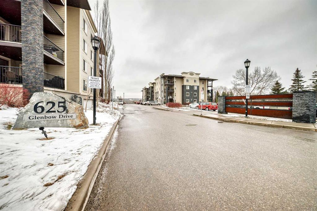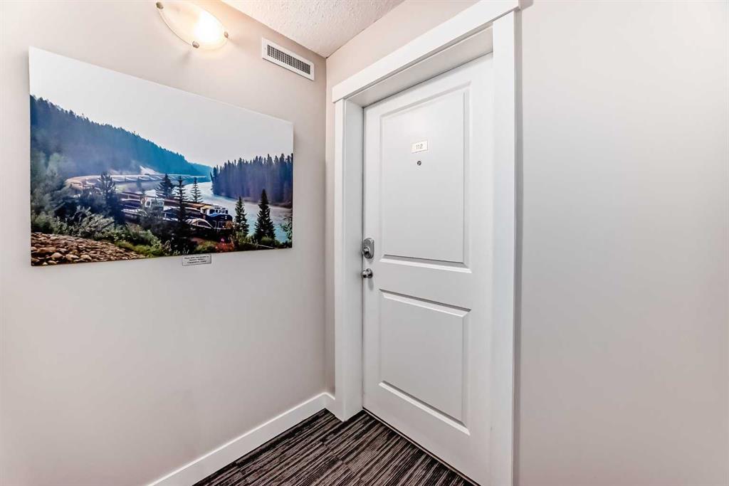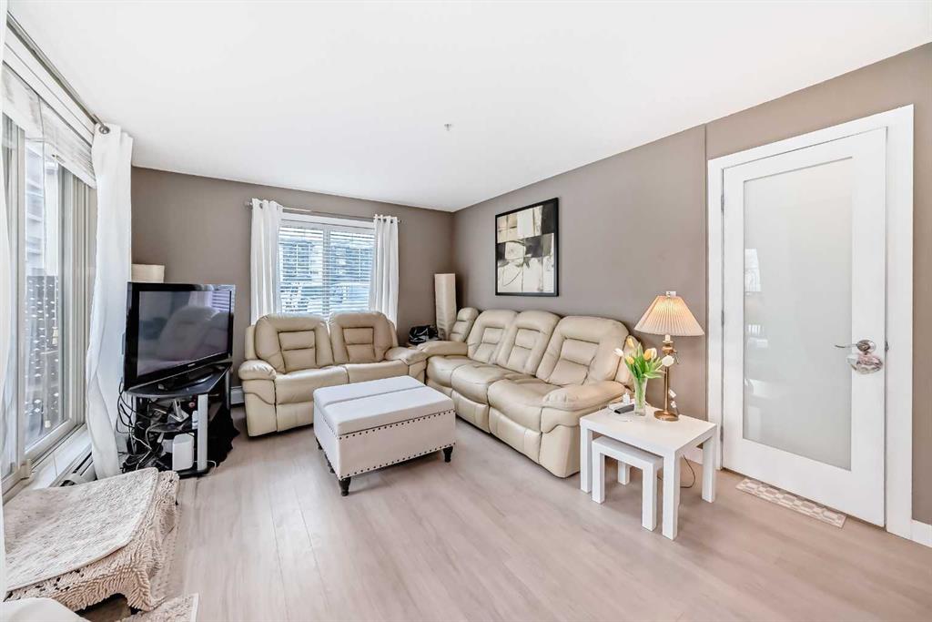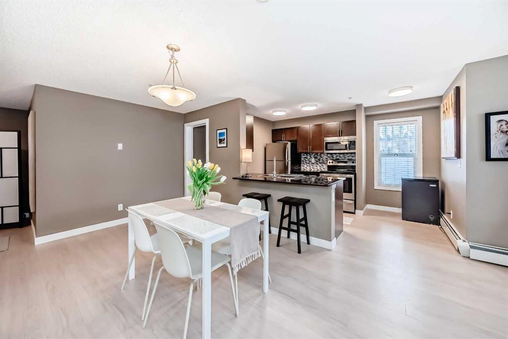 Welcome to this beautifully maintained corner ground floor apartment in the heart of Glenbow, Cochrane, offering a functional layout and exceptional convenience. This bright and inviting home features 2 bedrooms and 2 bathrooms, perfect for first time buyers, downsizers, or investors. The well appointed kitchen showcases stainless steel appliances including a new Bosch dishwasher, granite countertops, tile backsplash, ample cabinetry, and a convenient breakfast bar. New lighting throughout the home enhances the modern feel, while the spacious primary bedroom offers a walk through closet leading to a private 3 piece ensuite complete with granite countertops. A second bedroom and a full 4 piece bathroom provide flexibility for guests, family, or a home office. Both bathrooms have been updated with new shower heads. An in suite laundry room with additional storage adds everyday practicality, while the welcoming front entry features a full size coat closet. Ground floor access makes this home especially appealing for those seeking a no stairs lifestyle. This unit includes one titled underground parking stall (#291) and one assigned surface stall (#139). Ideally located just steps from Cochrane’s restaurants, coffee shops, grocery stores, parks and walking paths.