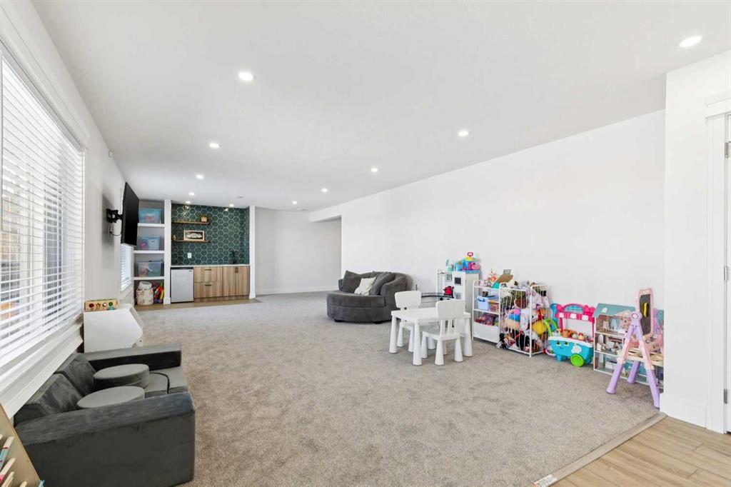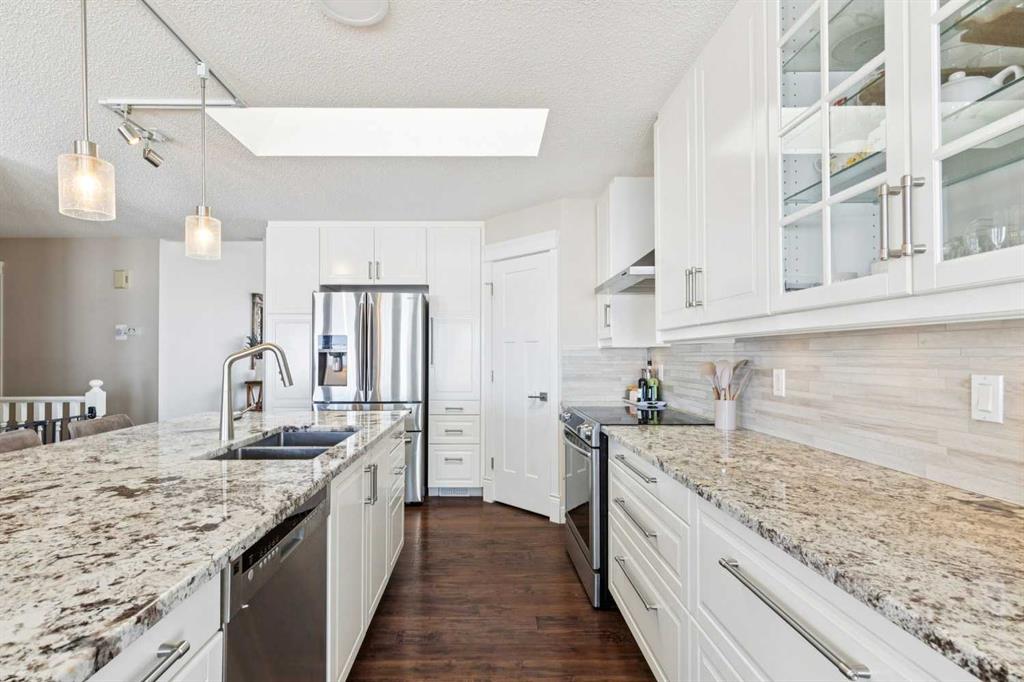 BEAUTIFUL MOUNTAIN VIEWS from this large, UPDATED WALKOUT BUNGALOW on a HUGE OVERSIZED PIE LOT in the desirable community of Scenic Acres! Step inside to a spacious FORMAL LIVING AND DINING ROOM, perfect for entertaining, highlighted by VAULTED CEILINGS and an abundance of natural light. The thoughtfully designed main floor features two living areas, including a rear family room that flows seamlessly into the fully renovated kitchen, where you can enjoy stunning mountain views right from your kitchen and living room windows. The kitchen showcases granite countertops, smooth white cabinetry, stainless steel appliances, a skylight, and large windows that fill the space with natural light. Step out onto the large balcony and take in the PANORAMIC MOUNTAIN VIEWS, perfect for relaxing or entertaining. The primary bedroom offers breathtaking MOUNTAIN VIEWS and features a beautifully updated ensuite bath. The main level also includes a spacious second bedroom, a beautifully renovated full bathroom, a private office with skylight, plus a convenient laundry and mud room area. The NEWLY RENOVATED WALKOUT BASEMENT offers exceptional additional living space, including a large recreation room, bar with refrigerator and sink, two generously sized bedrooms, a fitness area, and a stylish full bathroom—perfect for guests. Even with all this finished space, there is still ample storage. With almost 3,400 SQUARE FEET OF DEVELOPED, USABLE SPACE, this home offers incredible flexibility for families of all sizes. Additional updates include a recent roof, two newer furnaces, a new hot water tank, central A/C, vacuum system, fresh paint, updated baseboards and doors, and BIRCH HARDWOOD flooring on the main level. The double attached garage offers ample storage and includes a conveniently installed EV outlet. Nestled on a friendly cul-de-sac, this home offers access to walking paths and is conveniently close to schools, transportation, shopping, and amenities. Added convenience includes timed underground sprinklers, plus a private backyard complete with a shed and gazebo. Outside, you’ll truly appreciate the privacy of having no neighbors behind, along with a massive fenced backyard, perfect for enjoying daily sunsets over the mountains. Book your private showing today!