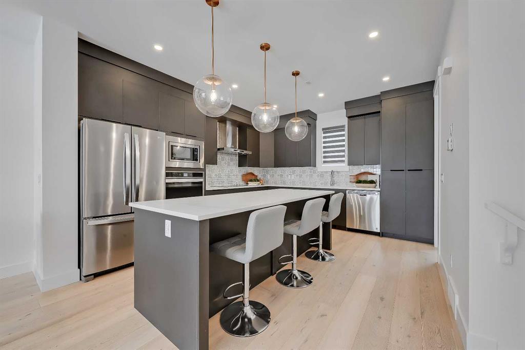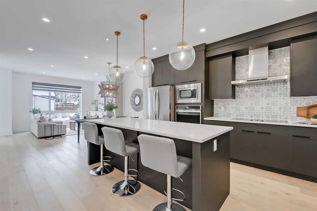 Clean lines, thoughtful updates, and a layout that truly delivers, this well-maintained inner-city home in sought-after West Hillhurst offers a refined take on everyday living across all three levels. Recent enhancements include fresh designer paint, updated lighting, and a new custom-built entertainment unit, while the timeless hardwood flooring adds warmth and character to the space. Step inside to a bright, welcoming foyer that opens into a spacious living room. The proportions are ideal, open, comfortable, and effortlessly functional for both entertaining and everyday life. The newly added custom-built entertainment unit serves as a striking focal point, offering both style and practical storage, while large windows invite in natural light to create an inviting, airy atmosphere. At the rear of the home, the kitchen is thoughtfully designed for both function and flow. A generous island provides ample prep space, storage, and seating, perfect as a central gathering place. Clean-lined cabinetry and a practical layout keep everything within easy reach, while seamless access to the private backyard makes indoor-outdoor living feel natural, whether you're enjoying summer evenings outside or a quiet morning coffee. Upstairs, the primary suite feels elevated and serene, featuring vaulted ceilings that enhance the sense of space and light. A walk-in closet offers excellent storage, while the ensuite includes a double vanity and a spacious tiled shower with bench seating. A second bedroom and full bathroom complete the level, along with the added convenience of second-floor laundry, making everyday living that much easier. The fully developed basement adds another layer of versatility, featuring a spacious rec room with a stylish wet bar, perfect for entertaining or unwinding, along with an additional bedroom and full bathroom. Whether hosting guests, working from home, or creating a separate retreat, this level offers flexible, functional living. Mechanical is efficiently tucked away to maximize usable space. Additional highlights include AIR CONDITIONING, a PRIVATE BACKYARD, and a SINGLE DETACHED GARAGE, ensuring comfort and convenience throughout the year. Located in the highly desirable community of West Hillhurst, this home offers exceptional walkability. You’re just minutes from the shops, restaurants, and cafés of Kensington, along with all the amenities and local shopping along 19 Street. Enjoy easy access to parks, river pathways, transit, and downtown, making it effortless to embrace a connected, inner-city lifestyle. A smart layout, thoughtful updates, and an unbeatable location—this is inner-city living at its best.