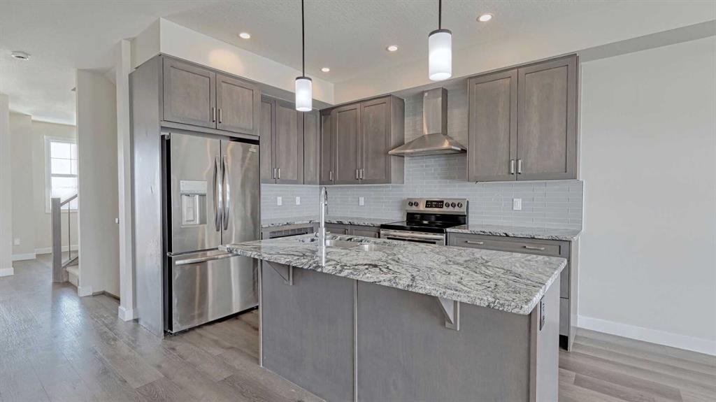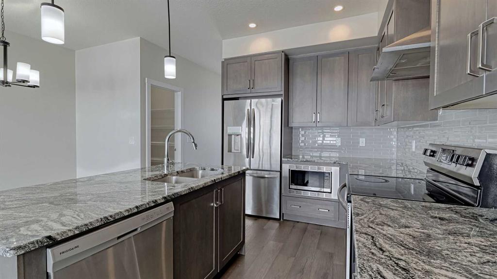 Welcome to this New and young community of Alpine park. No Condo fees!!!!. Spacious 3 Level home plus a lower level. 3 bedrooms + large main floor Den/Office, 2 and 1/2 bathrooms, Double attached garage. This home offers lots of living space, beautiful open concept with 9 ft Ceilings, lots of large windows and natural light coming in. The second level is very welcoming with large Living room, Dining room, and a Stylish kitchen. Upgraded Stainless steel appliances, Quartz counter, large island, lots of upgraded cabinets, Luxury vinyl laminate flooring and more. Enjoy large family or intimate dinners in the ideal Dining room. Primary Suite has a 4 piece En-suite and very large walk-in closet. Two more very good size bedrooms on this level and a 4 piece main bathroom, and laundry. Double attached garage is a bonus. Close to many amenities, shopping, and major routes . Transit bus stop is 1 minute away. A perfect home for you to enjoy.