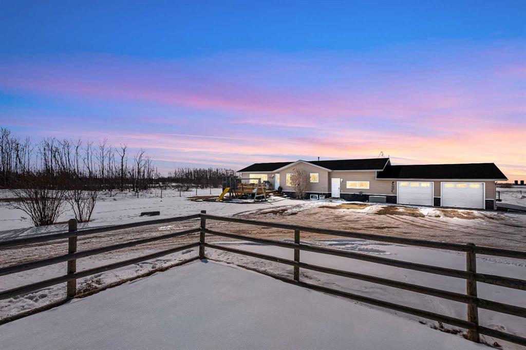 Welcome to this beautiful acreage offering the perfect blend of country living and city convenience. Built in 2000, this well-maintained home features over 1,500 sq. ft. on the main level and is situated on 7.34 acres of usable land just minutes from Lloydminster, located within the Lloydminster School Division with pavement right to your driveway. Step inside through the welcoming front foyer into an impressive family room featuring a cozy fireplace, creating the perfect space for relaxing evenings and making lasting family memories. The spacious main level layout offers plenty of room for both everyday living and entertaining. Outside, this property is well set up for horse enthusiasts or hobby farm living, complete with pasture, corrals, a dugout, and perimeter fencing already in place. The large 26’ x 28’ garage provides excellent space for vehicles, storage, or workshop use. Enjoy the peace and privacy of acreage living while staying close to city amenities—this is a fantastic opportunity to enjoy the best of both worlds.