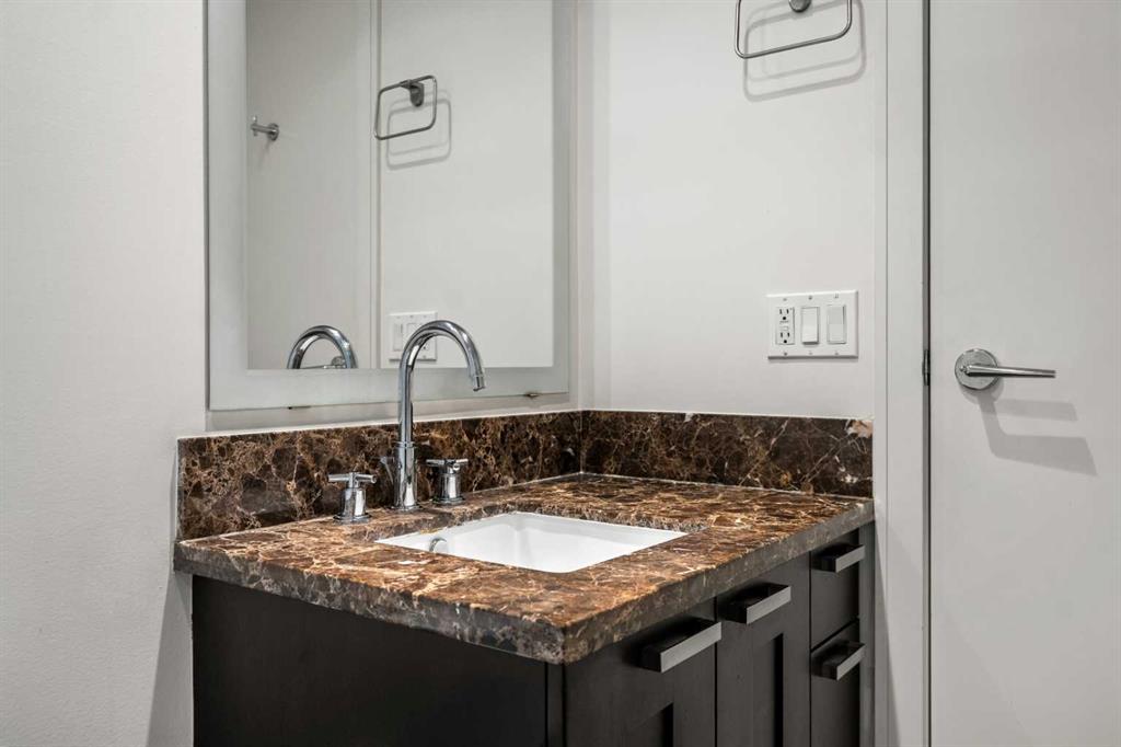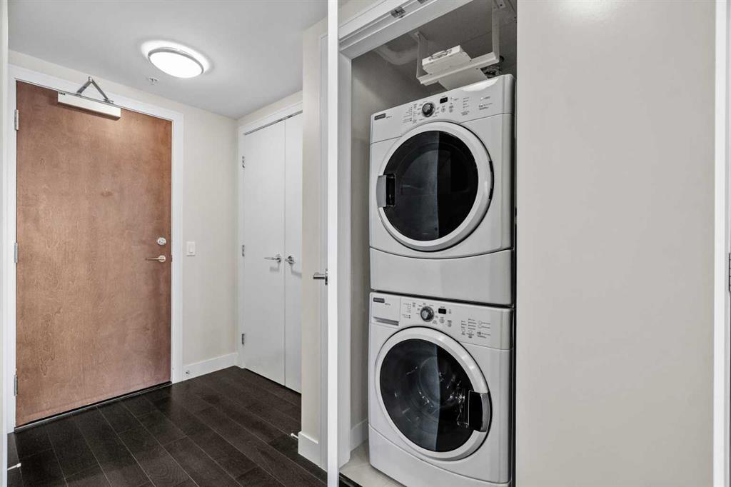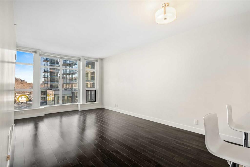 Experience elevated downtown living at Waterfront Condos, one of Calgary’s most sought after luxury residences, perfectly situated along the Bow River and just moments from Prince’s Island Park. This beautifully appointed one bedroom unit offers a seamless blend of style and functionality, ideal for both a sophisticated urban lifestyle or a strong rental opportunity. Enjoy bright east-facing views and exceptional walkability to top dining, cafés, entertainment, office hubs, and cultural attractions. The thoughtfully designed open layout features solid concrete construction for added sound attenuation, central air conditioning and is complemented by contemporary, high-end finishes throughout. The kitchen is both elegant and practical, showcasing integrated appliances, a gas cooktop, built-in microwave, dishwasher, and polished granite countertops, perfect for everyday living or hosting guests. The built-in wall pantry is perfect for extra storage, additional to your closet storage beside the kitchen. Expansive floor-to-ceiling windows flood the space with natural light and lead to a spacious balcony, creating a perfect setting to unwind outdoors. The primary bedroom includes dual closets with custom built-ins, and a luxurious ensuite complete with a soaker tub for ultimate relaxation. Residents enjoy access to over 6,000 square feet of premium amenities, including a fully equipped gym, yoga studio, hot tub, sauna, private theatre, owner’s lounge, and concierge service. This unit also comes with a storage locker on the same floor as the unit (rare) and a heated underground parking stall for added convenience. Located steps from scenic river pathways, Prince’s Island Park, Stephen Avenue, grocery stores, and the C-Train, this is downtown Calgary living at its finest, offering the perfect balance of comfort, convenience, and investment appeal. VIRTUAL TOUR AVAILABLE!