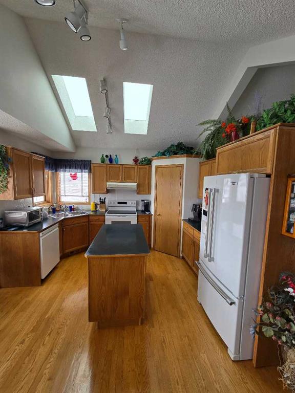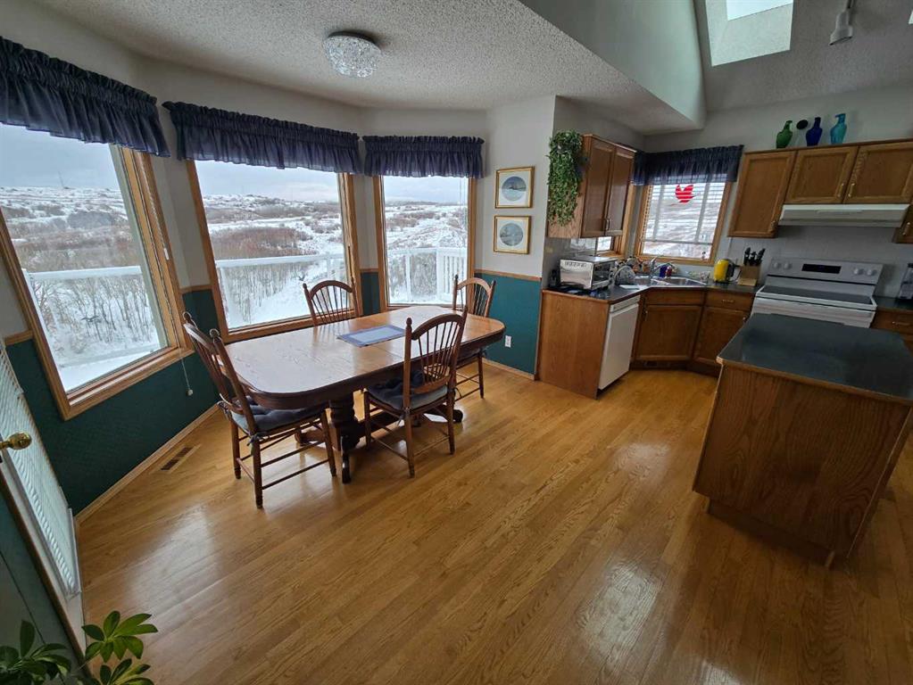 This is your rare opportunity to own one of the most coveted locations in Calgary—backing directly onto Nose Hill Park, one of the city’s largest and most breathtaking natural reserves. With only 26 homes offering private access to the park, this property delivers an unmatched blend of privacy, nature, and convenience. Step out your back door into serene green space featuring wooded areas, a natural pond, and unforgettable sunset views from your deck. The front offers a traditional streetscape, while the backyard opens to pure, uninterrupted nature—truly the best of both worlds. This well-maintained two-storey home with a fully developed basement offers a total of 4 bedrooms and 3.5 bathrooms, ideal for families or those seeking extra space. Inside, you’ll find vaulted ceilings in the living room, dining area, and kitchen, enhanced by multiple recently replaced skylights that flood the home with natural light. Additional highlights include: Cozy fireplace, Functional corner pantry, High-efficiency furnace, Main floor laundry, fully fenced yard, and Outdoor storage shed. Recent upgrades provide peace of mind, including new shingles and gutters (2026). Located close to major transportation corridors with easy access to the airport, this home combines tranquility with accessibility.