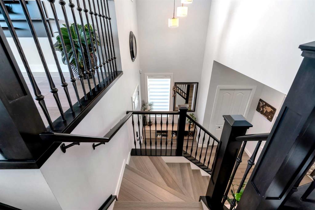 Welcome to 143 Cranfield Circle SE, ideally situated on a quiet cul-de-sac and backing onto a peaceful green space. This professionally renovated two-storey home offers a rare combination of space, natural light, and flexibility, complete with hard surface flooring throughout and central air conditioning for year-round comfort. The kitchen is both stunning and highly functional, featuring full-height cabinetry, quartz countertops, a stylish backsplash, built-in oven and microwave, gas cooktop, and cabinet lighting. With ample counter and storage space, the large central island becomes the heart of the home—perfect for casual breakfasts or entertaining friends. The bright dining nook flows seamlessly into the inviting living room, highlighted by a feature wall. A well-placed powder room and main floor laundry complete this thoughtfully designed level. Upstairs, the layout is ideal for family living. A spacious bonus room provides the perfect space for movie nights or a kids’ play area. Two generous bedrooms share a full bathroom with quartz counters, while the primary suite offers a true retreat with dual sinks, a large shower, and a built-in closet. The fully finished basement expands your living space with a recreation room, additional bedroom, and a full four-piece bathroom—ideal for guests, teens, or extended family. The double attached garage adds everyday convenience, while outside; the backyard feels like your own private oasis. Mature landscaping includes four aspen trees, one apple tree, one pear tree, two cherry trees, raspberries, gooseberries, and four evergreens—creating a space that is both expansive and serene. The large deck is perfect for morning coffee, summer BBQs, and gathering with family and friends. Additional updates provide peace of mind, including a furnace replaced in 2020, central air conditioning added in 2021, and a water filtration system installed in 2022. The roof is approximately 10 years old. Living in Cranston means access to the Cranston Residents Association, offering amenities such as a splash park, skating rink, tennis courts, and year-round community events. With endless pathways along the Bow River and through Fish Creek Park, this is a lifestyle rooted in nature, connection, and community.