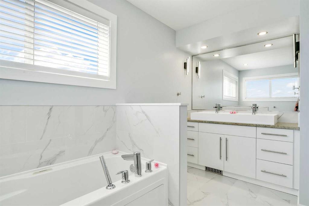 This absolutely stunning updated 2 storey family home sits on a massive pie shaped lot on a quiet, family friendly street with a playground steps away. This impeccable home features 2319 sq ft of luxurious development, offering 4 bedrooms total & 3.5 bathrooms. Perfect for family & entertaining, this remarkable home offers a beautiful gourmet kitchen with premium stainless appliances including fridge with ice & water maker, ceramic top range, dishwasher, built-in microwave, a central island & huge walk-in pantry. A bright & open dining area with tons of room for guests that opens to a massive 21 x 12 maintenance free private deck that’s perfect for evening barbeques. Adjacent to the dining area is the huge family sized-living room with gleaming wood floors and electric fireplace. The upper floor features a large primary bedroom with a walk-in closet, spacious ensuite with a jetted tub, large vanity and stand-up shower. Two additional bedrooms, a 4 pc main bath & a convenient upper laundry complete this level. The fully finished basement with a 4th bedroom, a cozy recreation room perfect for watching movies & playing games, a separate den or office (currently used as an exercise room), another full bath & a huge storage area with built-in shelving. You have everything you need for a growing family! Extensively updated, it also boasts 9 foot ceilings with knock down ceilings, built-in speakers with individual room volume controls, water softener, central air conditioning to take the edge off on those hot summer nights, solid passage doors, wood shelving in kitchen pantry, granite countertops in all bathrooms & caesarstone in the kitchen. Impeccable landscaping that includes poured exposed aggregate walk-ways & patios that surround the entire home, robust raised flower or garden beds large enough to accommodate several different home-gardening projects, metal railings on maintenance free deck, beautiful 6 foot perimeter fencing, large rear shed with 2-level storage and more! A new oversized triple garage plus double wide concrete parking pad, great for 2 vehicles, boat, or an RV. This property's sunny southwest pie lot at over 5100 sq ft is one of the largest on Copperstone Gardens and leaves ample room for kids, pets and entertaining guests. Enjoy proximity to parks, walking trails, schools, & shopping centers, plus fantastic community amenities including two scenic ponds, a community center, tennis & basketball courts, skating rink and a tobogganing hill.