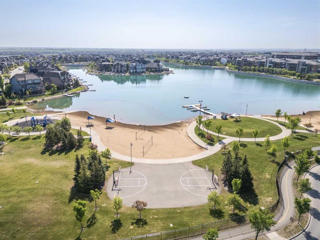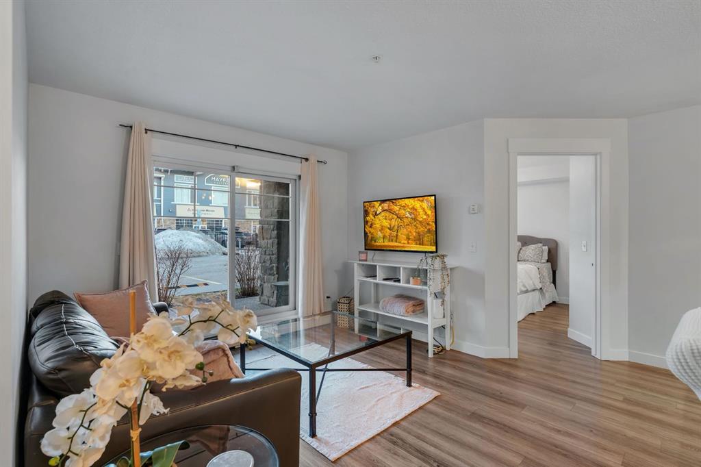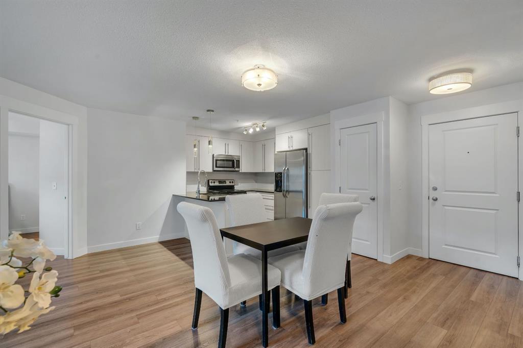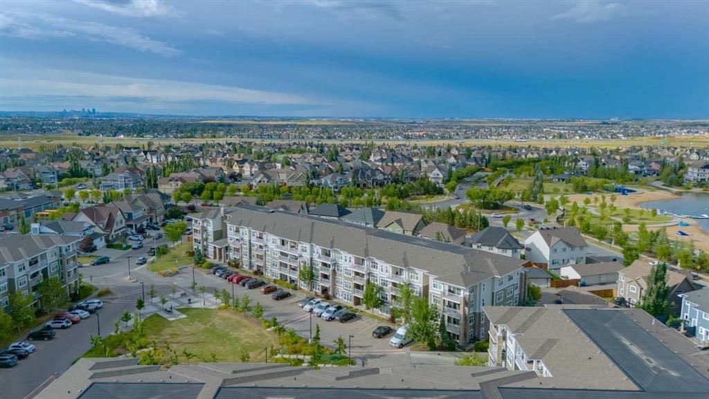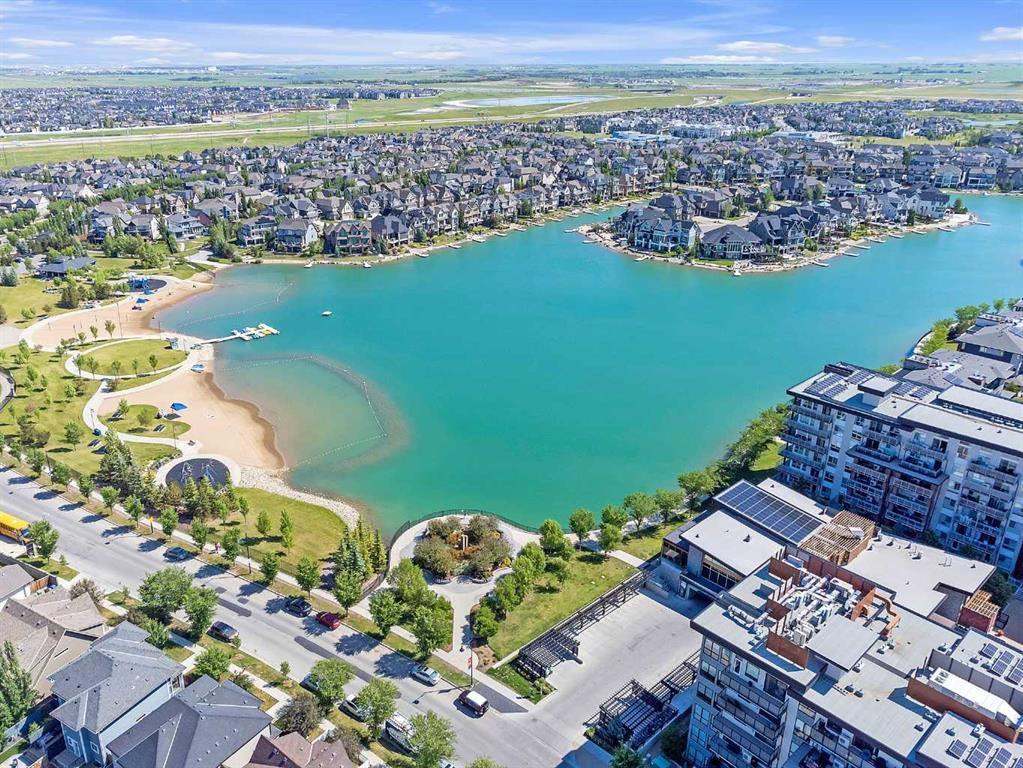 A Short walk to Mahogany Lake and its stunning West Beach! This contemporary 2 bedroom, 2 bathroom condo offers a bright and spacious layout with approximately 850 sq. ft. of thoughtfully designed living space. Welcome to this immaculate, like new home that blends modern design with warmth and comfort. The airy interior is filled with natural light and enhanced by luxury vinyl plank flooring, contemporary light fixtures, crisp white walls, and a stylish shiplap feature wall that adds character while maintaining a clean, open feel. The kitchen is a true standout, featuring sleek stainless steel appliances, ample cabinetry, generous counter space, and excellent storage perfect for everyday living or entertaining. The open concept living and dining area flows seamlessly, complemented by a convenient computer workstation/office space and in-suite washer and dryer. The primary bedroom with ensuite provides a peaceful retreat, complete with closet organizers for maximum functionality. A smart floor plan places the two bedrooms on opposite sides of the unit, offering excellent privacy and flexibility for roommates, guests, or a home office. Step outside to your large southwest facing patio with main floor access, ideal for pet owners and outdoor living. Enjoy a gas BBQ hookup and easy access to nearby shops perfect for summer evenings with friends. This home includes a titled, heated underground parking stall and a storage locker for added convenience and peace of mind. Located in one of Calgary’s most sought-after communities, Mahogany offers an exceptional lifestyle with lake access, parks, shopping, restaurants, public transit, and quick access to Deerfoot Trail, Stoney Trail, and South Health Campus. Whether you’re seeking relaxation or an active, vibrant community, this condo truly has it all. Don’t miss this incredible opportunity, schedule your viewing today!