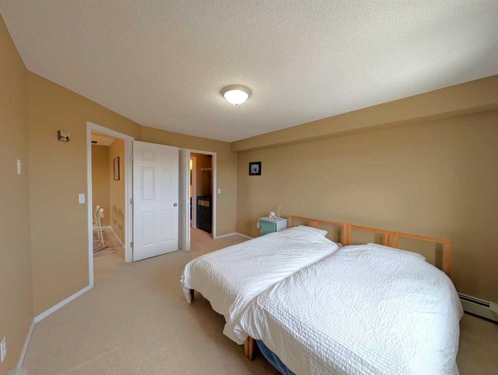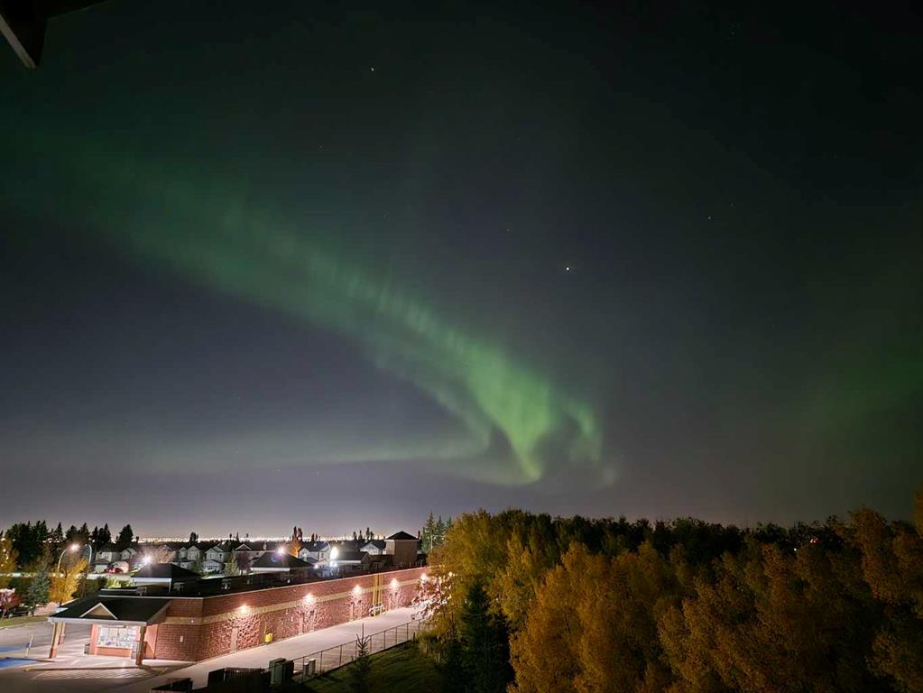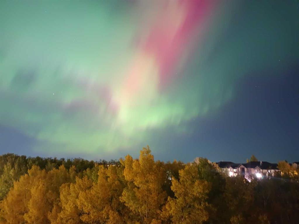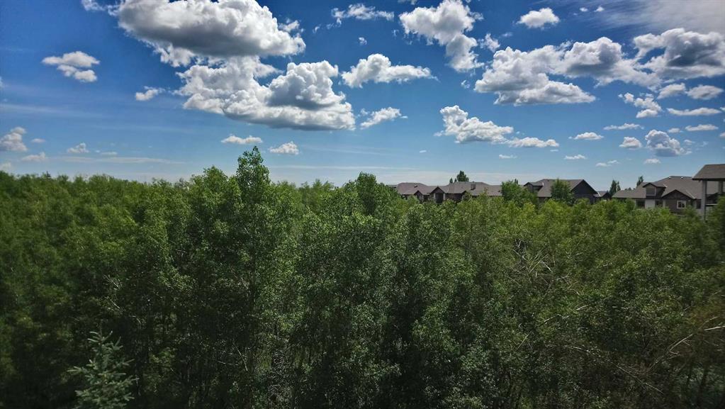 Welcome to The top floor, corner unit—the most sought-after floor plan in the complex—offering a functional layout and exceptional natural light. This top-floor, corner unit features two bedrooms, two full bathrooms, and one titled parking stall, with no neighbours above—just the sky. Backing directly onto the lush ravine, this home delivers breathtaking views of the city, summer fireworks, and even the occasional winter aurora. Step inside and you’ll immediately feel at home in the bright, open-concept living space. The layout includes a spacious dining area, a central kitchen with a breakfast bar, and a sun-filled family room with ample space for any size sofa. Enjoy relaxing or entertaining on your oversized corner balcony, perfectly positioned to take in the stunning views and overlook the surroundings. The generous primary bedroom offers a walk-through closet and a 4pc ensuite bathroom. The second bedroom is ideally located on the opposite side of the unit, adjacent to the second 4pc bathroom—perfect for guests, roommates, or a home office. Additional highlights include in-suite laundry, a good size in-suite storage room, and more windows and natural light than any other suite. Condo fees include all utilities, adding exceptional value and peace of mind. Easy access to the Stoney Trail—perfect for quick trips to the mountains west or seamless travel anywhere in the city. Book your private viewing today and experience this incredible opportunity to own a truly special condo in a prime location.
