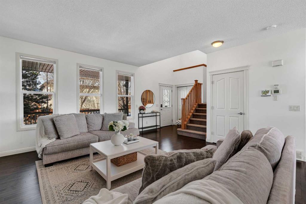 Backing onto green space in the vibrant community of McKenzie Towne, this exceptionally maintained home blends thoughtful upgrades, central air conditioning and an oversized insulated double detached garage to support both everyday comfort and long-term value. Arrive through the expansive front porch where quiet morning coffees and evening sunsets become part of daily living. Step inside to an open-to-above entry that immediately enhances the sense of space and light while setting a welcoming first impression. Hardwood flooring carries through the main level as natural light moves freely across the open layout. Gather around the gas fireplace framed by built-ins, creating a warm focal point for relaxing evenings and meaningful connection. Entertain with ease in the dining area where designer lighting draws attention upward and surrounding windows capture peaceful backyard views. Effortlessly prepare meals in the timeless kitchen designed for both function and flow, complete with stainless steel appliances, extensive cabinetry, generous counter space, a pantry for added storage and a raised breakfast bar that encourages casual conversation. Stay productive within the built-in desk area that keeps work or homework conveniently tucked into the main floor. The dedicated mudroom keeps daily essentials out of sight while providing direct access to the backyard. Retreat upstairs to a spacious primary sanctuary where large windows invite natural light while a walk-in closet and a flexible sitting area create space for reading, yoga or quiet moments at the end of the day. Indulge in the private ensuite featuring a deep soaker tub that promotes relaxation alongside an oversized shower that streamlines busy mornings. Two additional bedrooms accommodate family, guests or evolving lifestyle needs while a full bathroom with updated lighting completes the upper level. Continue downstairs to a fully finished basement that expands living options through a generous open recreation space easily arranged into zones for media, play, fitness or hobbies. Appreciate the added convenience of a lower powder room paired with stylish wallpaper that adds personality. Enjoy outdoor living on the pergola-covered deck that sets the stage for summer barbecues and evening unwinding while a second pergola patio extends gathering space into the yard. Take advantage of the fenced backyard with ample room for children and pets to play, all enhanced by direct access to the adjacent green space for added openness. Walk to nearby schools, parks, playgrounds and pathways while enjoying quick access to transit and the shops, groceries and restaurants along High Street, with even more amenities available just minutes away on 130th Avenue.