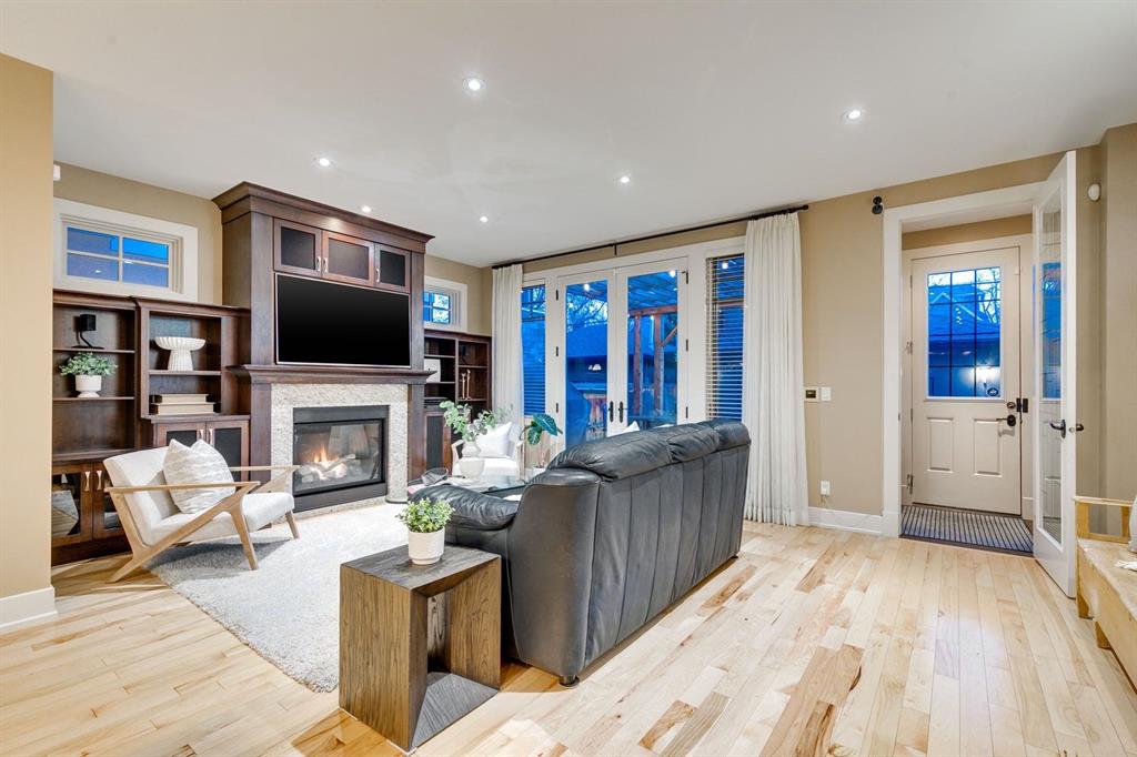 A true inner city gem in the heart of Hillhurst. This exceptional home offers a rare blend of timeless elegance, quality craftsmanship, and standout curb appeal, just steps from Kensington Village, Freshco, the Bow River pathways & downtown. From the moment you enter, this home makes an impression with its grand foyer featuring a curved wooden staircase, skylight, and expansive windows that fill the space with natural light, all enhanced by its charming location across from the lawn bowling park. Located just off the homes' entrance, you'll find a private office with French glass doors, coffered ceilings, and custom built-ins that overlook the peaceful green space, ideal for those working from home. The main living area is designed for both entertaining and daily living. Rich and timeless hardwood floors lead into a stunning chef’s kitchen featuring high end panelled appliances, including a Wolf 6 burner gas range, Sub-Zero refrigerator, custom built cabinetry, and a large island ideal for gatherings. The adjoining dining area offers an elegant space to host, while the living room centres around a beautiful stone fireplace and opens seamlessly to the sunny south facing backyard. An enclosed mudroom with built-ins offers both style and practicality, making it easy to come and go from the garage while keeping everything organized. Upstairs, you’ll find three spacious bedrooms and a well appointed laundry room. The primary suite is a true retreat, complete with downtown views, a two way fireplace, and a spa-inspired ensuite featuring a deep soaker tub, steam shower, dual vanities, and a custom walk-in closet. The fully developed lower level adds even more versatility, with a cozy family room, games area, wet bar, and a beautifully designed wine room. A fourth bedroom, full bathroom, and dedicated home gym complete this level, offering space for guests, relaxation, and wellness. Outside, enjoy a private, south exposed yard with a pergola-covered deck, two gas lines for outdoor entertaining, and low-maintenance landscaping, all set against an exterior finished entirely in aggregate. Additional features include air conditioning, in-floor heating in the basement, foyer, and bathrooms, a gym-sized steam shower in the basement, a new washer and dryer, custom millwork, 9ft doors, vaulted ceilings, hidden safe room, and an oversized heated garage. Located in one of Calgary’s most sought after communities, this home offers unmatched walkability and lifestyle, just moments from shops, restaurants, boutiques, schools, hospitals, and the river pathways. A rare opportunity to own a truly exceptional home in Hillhurst.