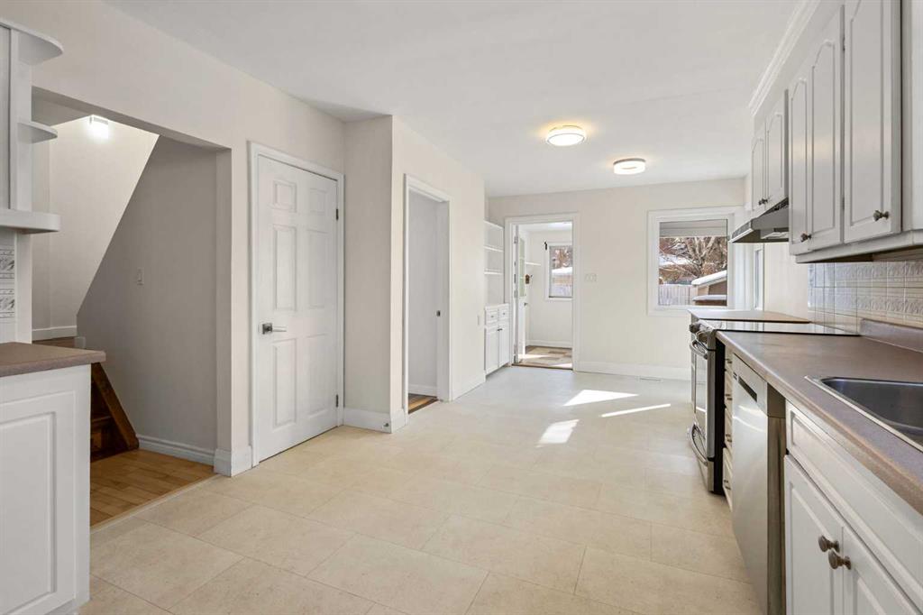 If you're looking for an affordable home in an up and coming neighborhood, with a huge yard, then you'll fall in Love with this Charming Character home! The location appeals to a wide range of buyers who value convenience, long term investment potential and the flexibility to shape the property to their needs. Located in a sought after mature and peaceful location, it is nested between major access roads and awaits a buyer that appreciates the immediate livability of the home with the option to build future equity through renovation or it's income generation potential. You'll find the cozy primary bedroom on the upper floor with a convenient 3 piece ensuite. It is a sunny retreat that's been freshly painted, and has a large built in closet (doors are available). The bright and sunny main level has hardwood floors in the huge living room and the welcoming foyer area. Glass block windows to the south provide beautiful refracted light. All of the Windows and front door were replaced in 2018 and the west facing windows are Triple pane! A large kitchen with an dining area is at the rear of the home with newer appliances (2020), and updated flooring. The 2nd bedroom is off of the kitchen, overlooks the huge yard and is ideal for a home office/den. An updated and modern 4 piece bathroom is conveniently tucked away off of the kitchen. The main level has a sunny rear porch (mud room) that opens onto the kitchen while keeping coats, bikes, golf clubs etc securely covered inside, but is not included in the total sq feet due to measurement rules. In the lower level you'll find the laundry room, storage and a family room area. NOTE major updates: Hot water tank 2024, New windows 2018, flooring upstairs and kitchen, toilets in bathrooms, appliances 2020, lighting, Weeping tiles and new sump pump 2020. The single front drive garage, attached covered carport and front driveway provide tons of parking! The fully fenced lot offers a huge yard for BBQ's, family fun, pets, or perhaps another large garage if desired.