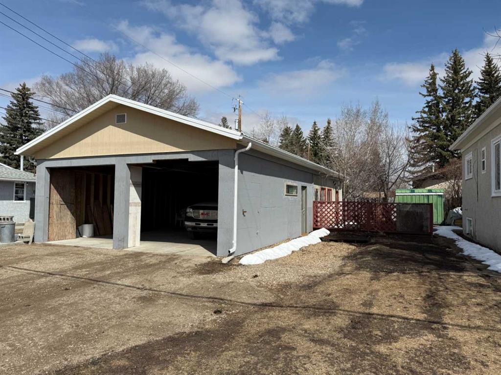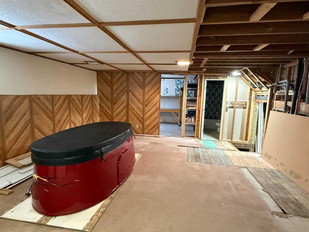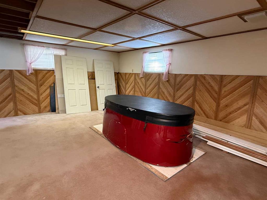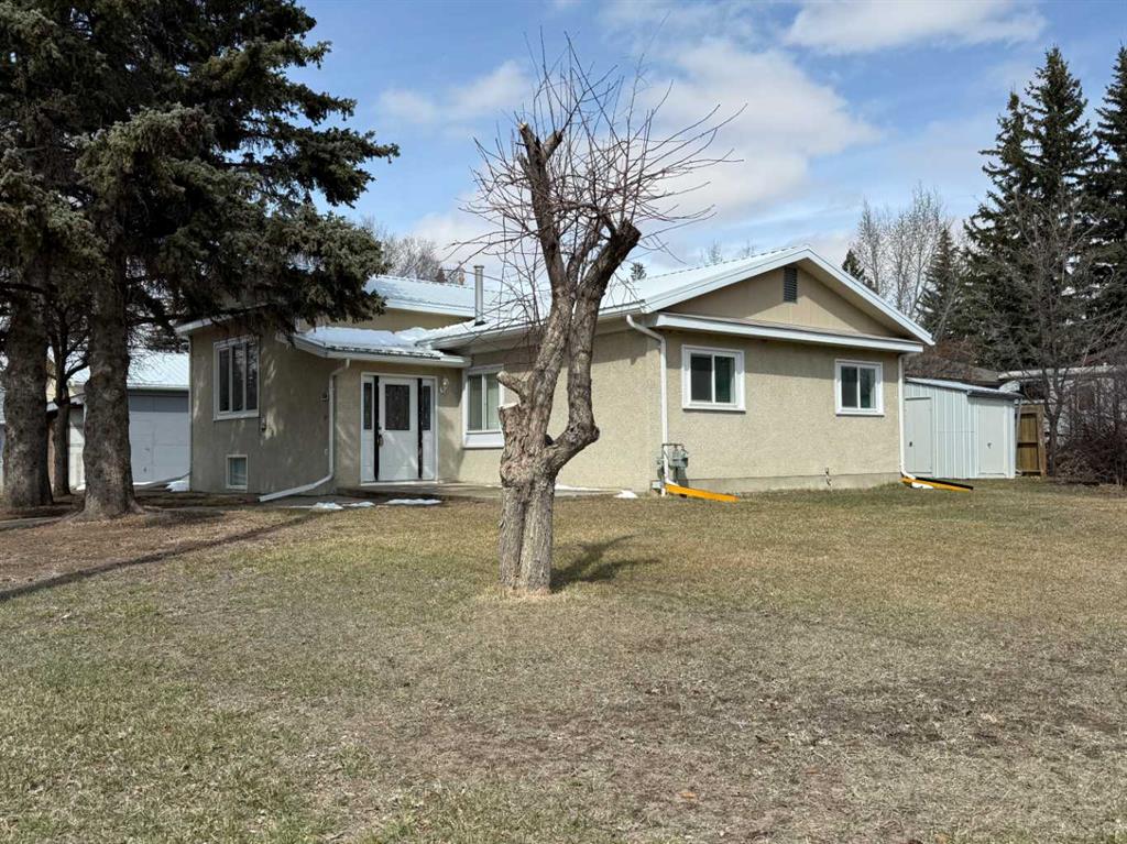 Situated on a generous 75’ x 132’ corner lot in the Town of Vulcan, this four-level split offers excellent potential in a highly desirable location. Just one block from the Vulcan Golf Course clubhouse, two blocks from the seasonal outdoor swimming pool, and within walking distance to both the elementary and high school, this property combines convenience with space. The main level features an inviting entry leading into the dining area, kitchen, and two bedrooms. The upper level offers a bright living room with large windows, a primary bedroom with walk-in closet and roughed-in two-piece ensuite, a full bathroom, and convenient laundry with stacking washer and dryer. The lower level is partially developed with a family room (hot tub included in as-is condition), a four-piece bathroom, and additional den/storage space. The basement houses the utility area and features a combination of dirt and cinderblock construction. Exterior features include a stucco finish and durable metal roof. Parking and workspace are a standout with a 24’ x 26’ carport adjoining a 24’ x 24’ heated shop/garage complete with 220 amp electrical service—ideal for hobbyists or projects. Recent updates include a hot water tank (2023). An additional furnace is included but has not been installed. Central vacuum system is present but not currently operational. Extra flooring materials in the garage and yard are included. This property is being sold “as is, where is” as the seller has not resided in the home.