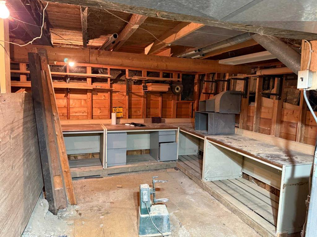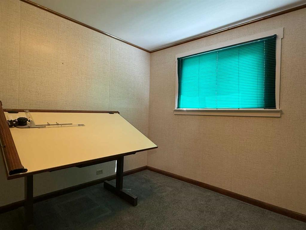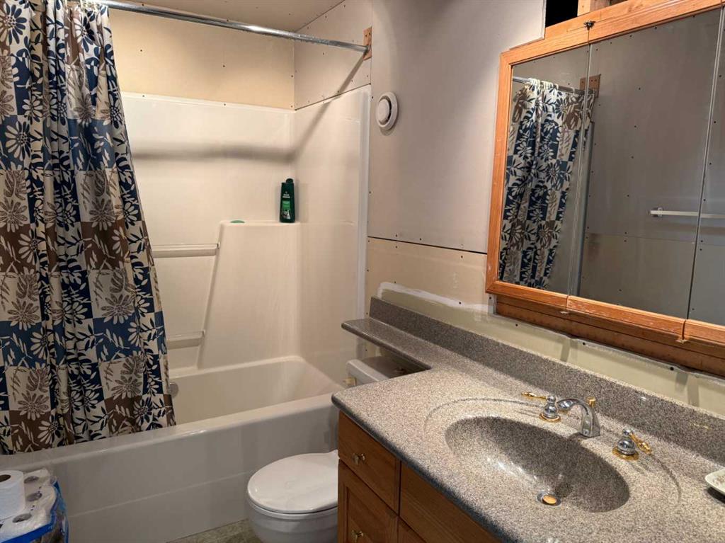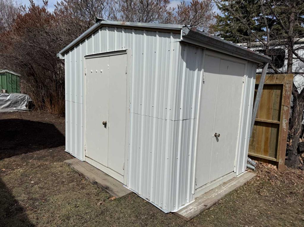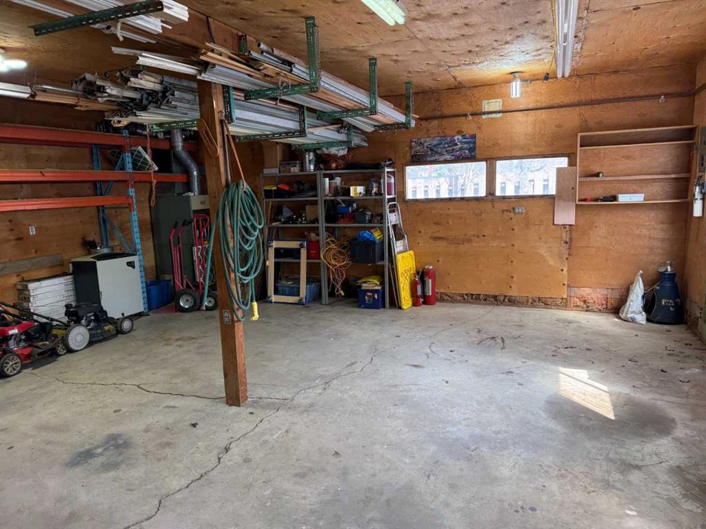 Situated on a generous 75’ x 132’ corner lot in the Town of Vulcan, this four-level split offers excellent potential in a highly desirable location. Just one block from the Vulcan Golf Course clubhouse, two blocks from the seasonal outdoor swimming pool, and within walking distance to both the elementary and high school, this property combines convenience with space. The main level features an inviting entry leading into the dining area, kitchen, and two bedrooms. The upper level offers a bright living room with large windows, a primary bedroom with walk-in closet and roughed-in two-piece ensuite, a full bathroom, and convenient laundry with stacking washer and dryer. The lower level is partially developed with a family room (hot tub included in as-is condition), a four-piece bathroom, and additional den/storage space. The basement houses the utility area and features a combination of dirt and cinderblock construction. Exterior features include a stucco finish and durable metal roof. Parking and workspace are a standout with a 24’ x 26’ carport adjoining a 24’ x 24’ heated shop/garage complete with 220 amp electrical service—ideal for hobbyists or projects. Recent updates include a hot water tank (2023). An additional furnace is included but has not been installed. Central vacuum system is present but not currently operational. Extra flooring materials in the garage and yard are included. This property is being sold “as is, where is” as the seller has not resided in the home.