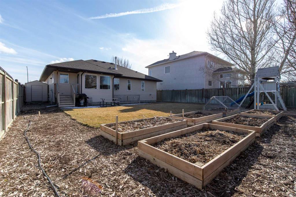This fantastic Picture Butte bungalow home is ready for a new owner! With five bedrooms, three bathrooms, and a smart layout perfect for growing families, this home might be the place you've been waiting for. Inside, the living room is bright and spacious with a large front window and built-in shelving surrounding a gas fireplace. The kitchen will be a hit with the chef in your family, with an open layout leading into the dining area with access to the rear porch. Down the hall, the primary bedroom includes an ensuite bath with a shower. Two more main floor bedrooms alongside a laundry room and full four-piece bath complete the main floor. Downstairs, the large rec room is surrounded by convenient storage, another bedroom, and a three piece bath. A rear exit leads up a set of stairs to the back yard. Outside, there's plenty of room to enjoy quality time with the whole family with a lawn, play centre, raised gardening beds, and a finished double attached garage offering room to store equipment and vehicles safely. If a bungalow home in a quiet neighborhood sounds like the place for you, give your REALTOR® a call and book a showing today!
