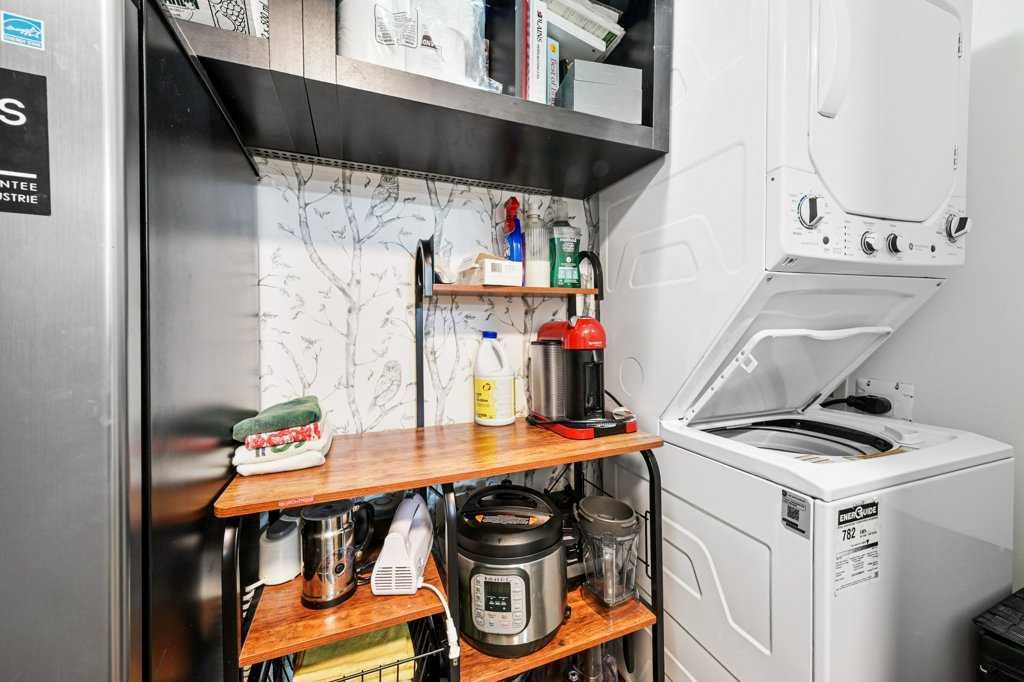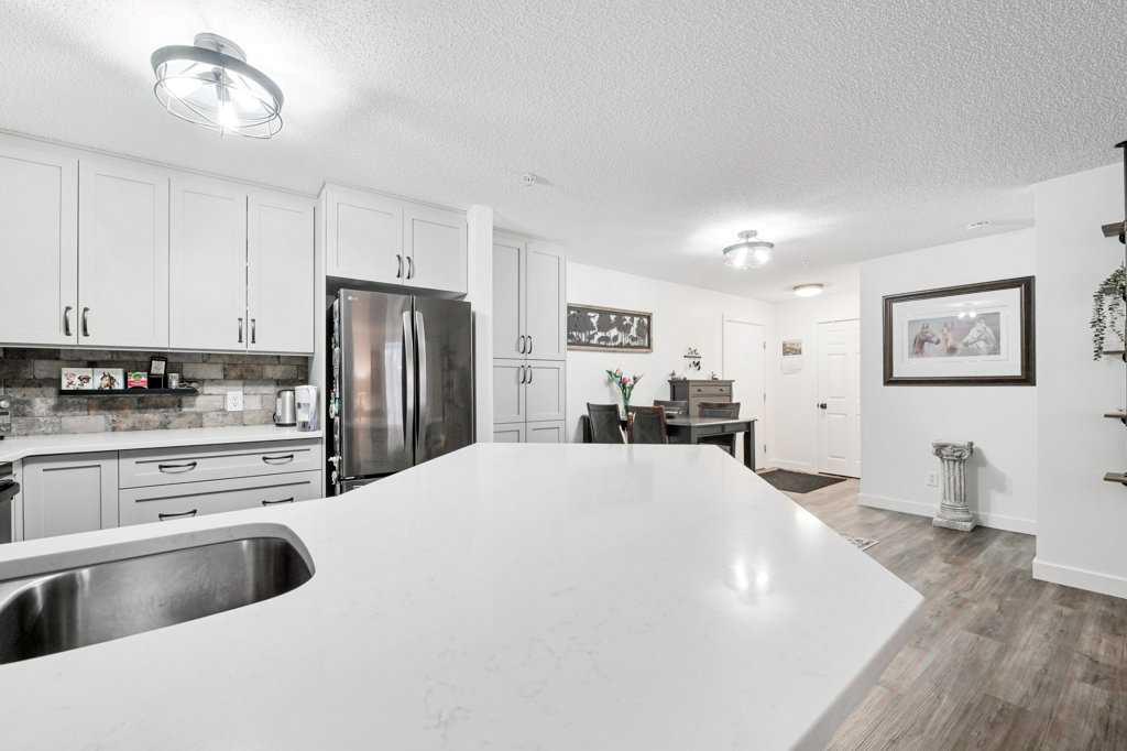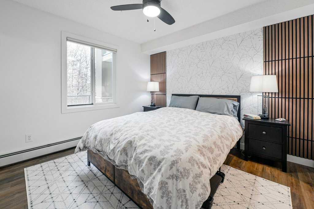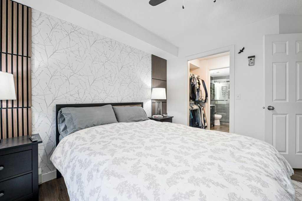 Welcome home to this fully renovated 2-bedroom, 2-bath sanctuary with in-suite laundry, titled underground parking, and a massive storage room located in Fish Creek. Renovations were completed in 2024 and include all flooring, all lighting, new kitchen cabinets with ample storage, backsplash, quartz counters, fridge, and dishwasher. Both bathrooms have been fully renovated. The in-suite laundry includes a washer, dryer, and an additional freezer. All window coverings are Hunter Douglas electric programmable blinds. The open floor plan is ideal, with the kitchen and eating area overlooking the living room and backing onto a treed area. The bedrooms bookend the living space for optimal privacy. The primary bedroom is a stylish retreat featuring a walk-in closet complete with new cabinetry and organizers, along with a luxurious ensuite bath. The second bedroom is conveniently located next to the second four-piece bath, making it ideal for guests or a roommate. Situated in the desirable community of Evergreen, the quiet location of this unit is second to none. Backing onto a forested area that connects with Fish Creek, you can enjoy morning coffee on the peaceful patio alongside the birds and resident deer that frequent the area. Get in touch with nature as it is minutes away from the many hiking and biking trails and beaver ponds located in beautiful Fish Creek Provincial Park. Pet-friendly (upon board approval), this 838 sq. ft. home has been completely renovated and leaves nothing to be desired. Condo fees include electricity, water, sewer, and garbage, as well as an oversized storage room the size of a small bedroom directly in front of the titled underground parking. This prime location offers easy access to nature while remaining close to everyday amenities. Evergreen has many schools in the area, including Dr. Freda Miller Elementary School just a few minutes’ walk away. Shopping at Costco is less than a 5-minute trip. Transit is right outside the door, and there is quick access to Stoney Trail and Macleod Trail, making commuting across Calgary simple and convenient
