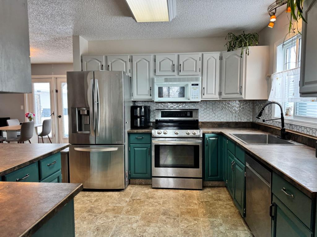 Spacious Fully Developed Family Home Beside Cummings Lake Trails! This fully developed 2-storey home offers nearly 3,000 sq ft of living space with 6 bedrooms and 3.5 bathrooms, making it perfect for large or growing families. Located on a corner lot with a huge fully fenced yard, this property offers excellent privacy with no rear or east neighbours and sits right next to the Cummings Lake Walking Trail, just minutes from the Grande Prairie Golf & Country Club. The main floor features an open layout with a large kitchen, two living areas, space for a formal dining room, main floor laundry, and a convenient 2-piece bathroom. Upstairs includes 5 bedrooms and 2 full bathrooms, including the primary bedroom with ensuite and a fully renovated main bathroom. The basement offers a massive family room, an additional bedroom, and a bathroom ready for completion. Outside you’ll love the two-tier rear deck, large private yard, and charming front veranda. The 22’ x 26’ heated detached garage plus parking pad provides plenty of room for vehicles and storage. Recent updates include: new shingles, renovated upstairs bathroom, new flooring upstairs and downstairs, new hot water tank, and fresh paint throughout. A rare opportunity for space, privacy, and location close to trails and golf!