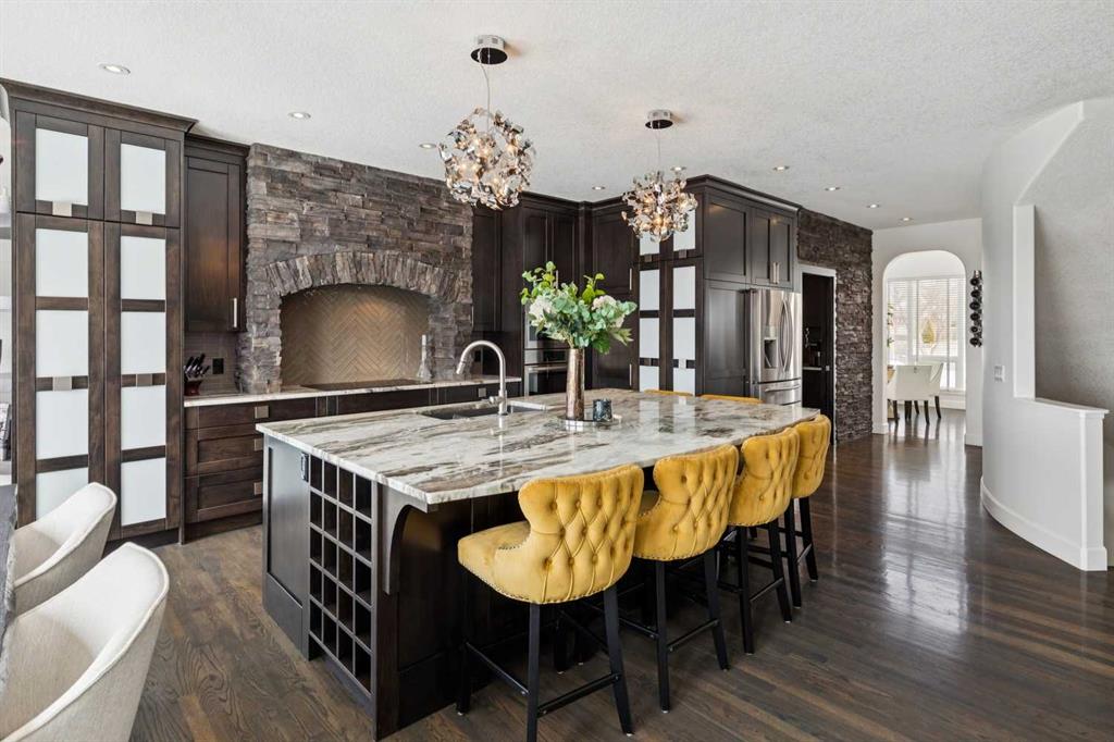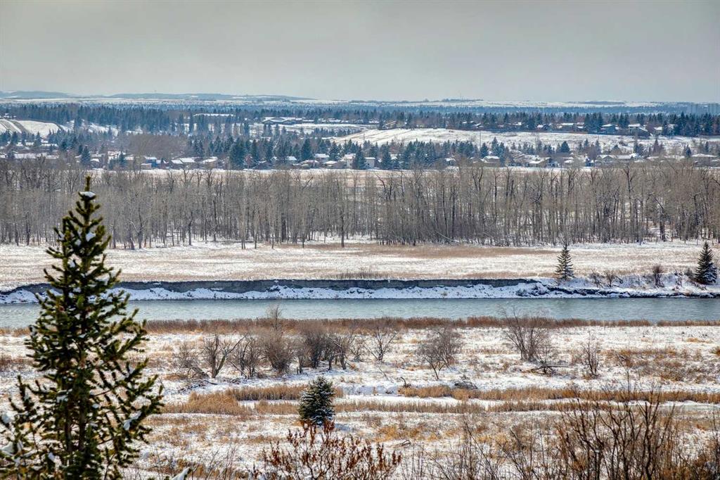 Positioned on one of the LARGEST RIVERFRONT RIDGE LOTS in the area, this property backs directly onto the Bow River with UNOBSTRUCTED MOUNTAIN, RIVER AND DOWNTOWN SKYLINE views that are simply stunning in a large urban centre. With DIRECT ACCESS to the PATHWAY SYSTEM OF FISH CREEK PARK, you’re stepping into one of Calgary’s most coveted outdoor lifestyles with MIILES OF TRAILS at your back door. Evenings here don’t get old, whether you’re under the newly installed, ALL-SEASON PERGOLA or relaxing on the PRIVATE LOWER PATIO with HOT TUB, the SUNSETS put on a show every single night. Inside, this 5-BEDROOM home delivers both presence and precision. A DRAMATIC CIRCULAR STAIRCASE and SOARING VAULTED CEILINGS make an immediate statement. The custom-renovated kitchen is built to impress and perform, featuring a MASSIVE ISLAND, BUTLER’S PANTRY, BOSCH appliances, and timeless STONE FINISHES. A SCULPTURAL CONCRETE FIREPLACE anchors the main living area, while a MAIN FLOOR OFFICE adds executive-level functionality. Upstairs, the primary suite is framed by ELEVATED VIEWS and complemented by a fully renovated ensuite with HEATED FLOORS, MARBLE FINISHES, SOAKER TUB, and a CURBLESS WALK-IN SHOWER. Two additional bedrooms and a 3-piece bath complete the upper level. The walkout basement features two additional bedrooms, a full bath, a spacious recreation area, games room and a WET BAR built for entertaining. IN-FLOOR HEATING ensures year-round comfort without compromise. The exterior matches the interior in both scale and execution, with extensive professional landscaping, FRAMING PILLARS, BULLARDS, CONCRETE CURBING, IRRIGATION, a FENCED DOG RUN with upper deck access, and an OVERSIZED TRIPLE-CAR GARAGE. This is your opportunity to own a home with one of the most impressive views in the city. Book your showing today!
