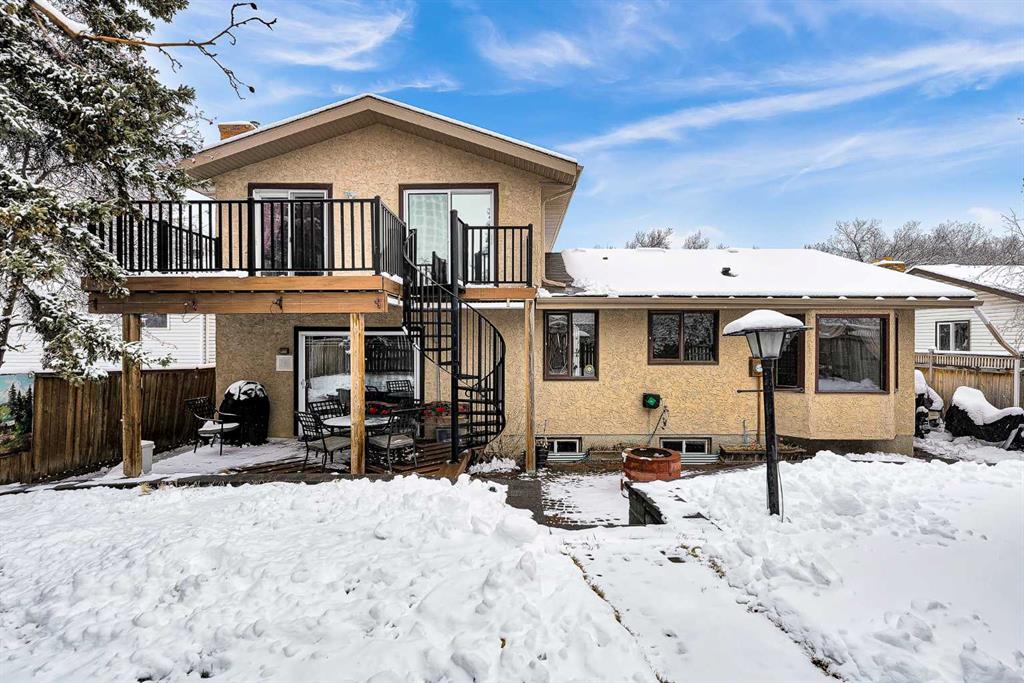 Welcome to this well-maintained home in the established community of Woodlands SW with a thoughtfully designed layout perfect for family living. Situated on a large lot with no neighbors behind, this home features a private, west-facing backyard where you can enjoy warm afternoon sun, mature trees, and beautifully landscaped outdoor spaces. Inside, the main floor offers a spacious and inviting living and dining area. A cozy sunken family room with a gas fireplace creates a warm atmosphere, while the bright kitchen features original oak cabinetry, granite countertops, newer stainless-steel appliances, and a breakfast nook overlooking the backyard. A main floor den with a window provides a great space for a home office or an additional bedroom. Hardwood flooring runs through the main level, complemented by porcelain tile in key areas. Upstairs, you’ll find three generously sized bedrooms, including a primary retreat with a walk-in closet and a private ensuite. A second full bathroom serves the additional bedrooms. A unique feature of this home is that all bedrooms have access to balconies - perfect for enjoying fresh air and quiet moments throughout the day. The fully developed basement offers a den and a full bathroom providing great flexibility for guests or additional living space, along with a large recreation room with a wet bar and a cedar sauna, creating the perfect setting for both entertaining and relaxing. This home has been well cared for over the years with updates including a newer roof and most of the updated windows. The outdoor space is truly special, featuring a large composite deck with a gas line for BBQ, a custom stone patio with a gas fire-pit, multiple seating areas, and a private, elevated yard surrounded by mature landscaping - ideal for entertaining or simply enjoying peaceful evenings at home. Additional highlights include an oversized heated double attached garage, RV parking with front access - perfect for your trailer, boat, or weekend adventures. Located just minutes from Fish Creek Park, Canyon Meadows Golf & Country Club, Stoney Trail, and a variety of shops and amenities, this home offers not only space and comfort, but also a lifestyle connected to nature and convenience.