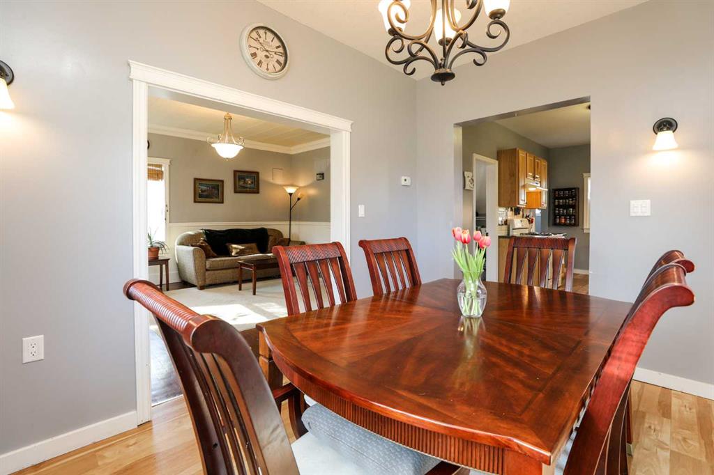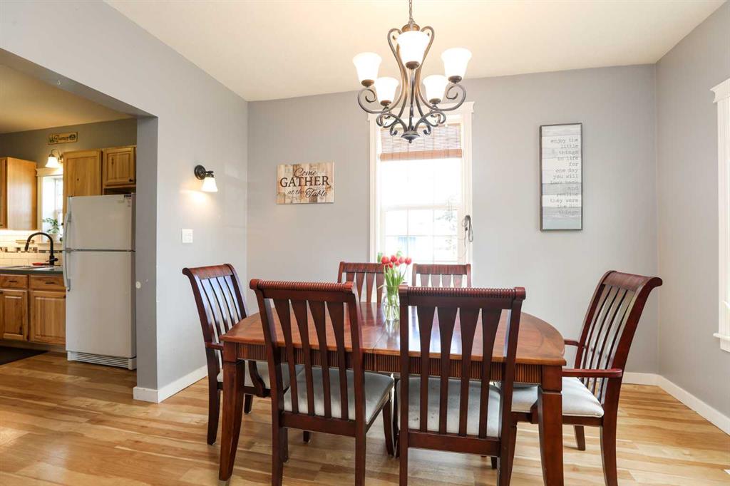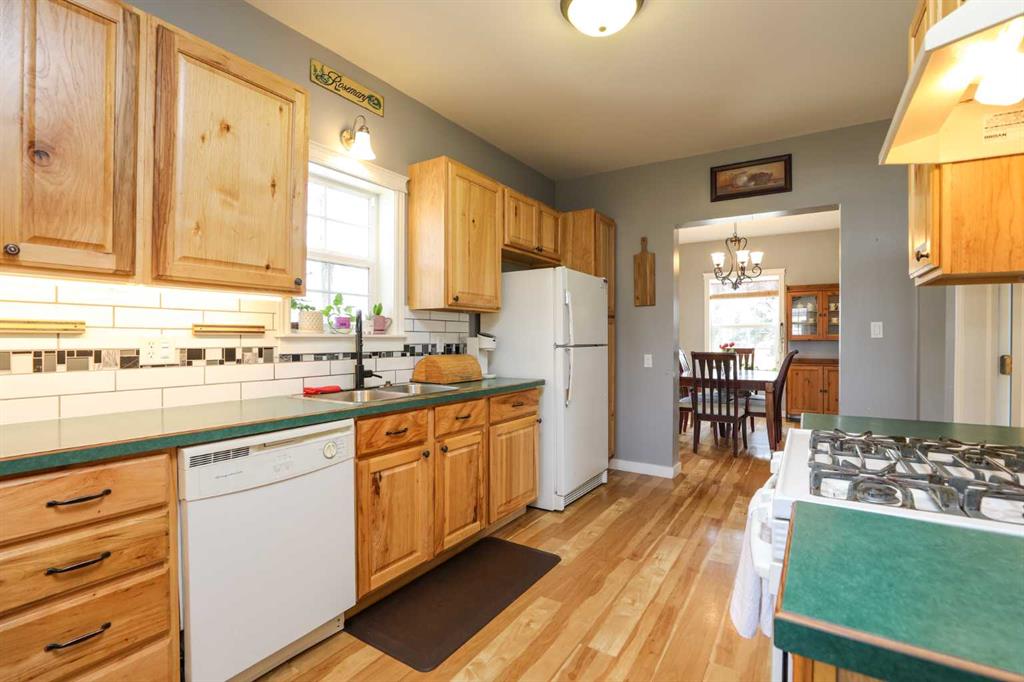 This charming 1.5 storey home in the quaint town of Magrath offers all the space you need and the down-home lifestyle you've been dreaming of! Step inside and be welcomed by high ceilings, crown mouldings and wainscotting in your front living room which flows into the formal dining space. Continue on into the lovely and very functional hickory kitchen with a gas stove and plenty of cubboards and counter space. Just off the kitchen, you will find one of 2 full baths... this one having a relaxing "spa" vibe complete with soaker tub. The kitchen flows through to a large mudroom and pantry space at the back of the home with access to the back deck. Up the stairs, you will find a loft space that dreams of being the primary bedroom... full of sunlight and room for double closets and king sized bed. Enjoy the West-East summer breezes here or keep cool with the window air conditioner. Last but certainly not least, this home features 3 bedrooms in the newer basement (estimated basement pour & development is 1999), a cozy family room with a wood burning stove, and a 4 piece bathroom with copper sinks, a double vanity and a step in shower. There is also a good sized laundry room down here and an additonlal storage room which is perfect for the luggage, Christmas decorations and whatever else you need room for! This home sits on a large 7500sf lot that is fully fenced with a fire pit and has a separate fenced area with a huge garden plot. Top this off with updates over the years to siding, windows and the roof and you have a charming character home situated in a fantastic location just around the corner from the Lion's Park and blocks away from main street. Follow your heart to Magrath and start living your dream of small town living!