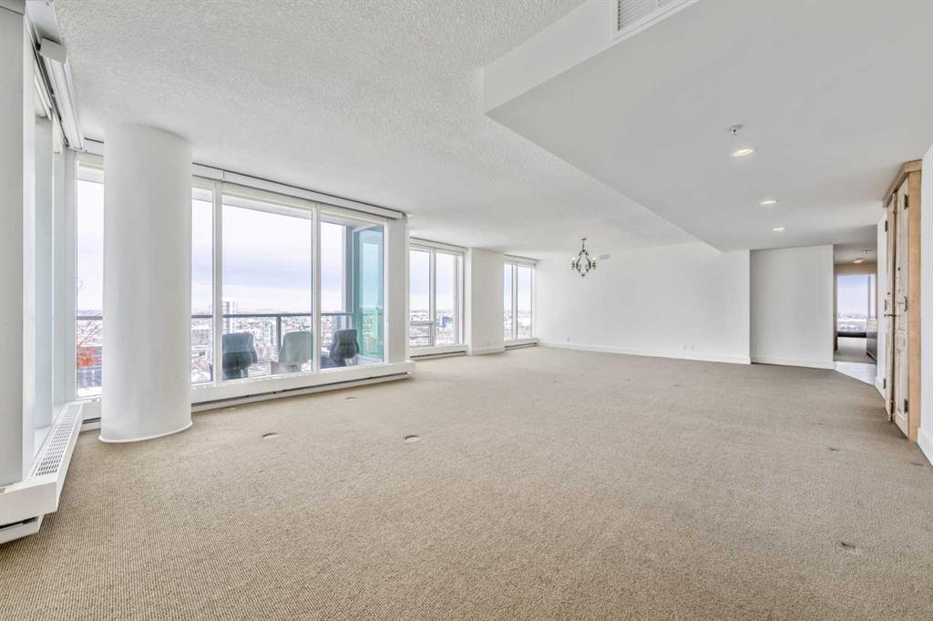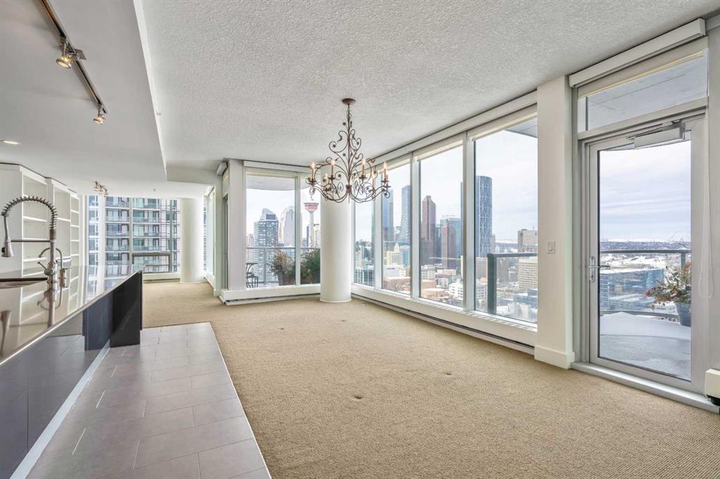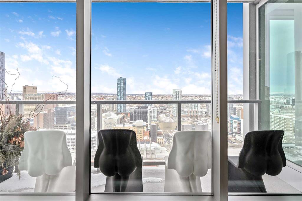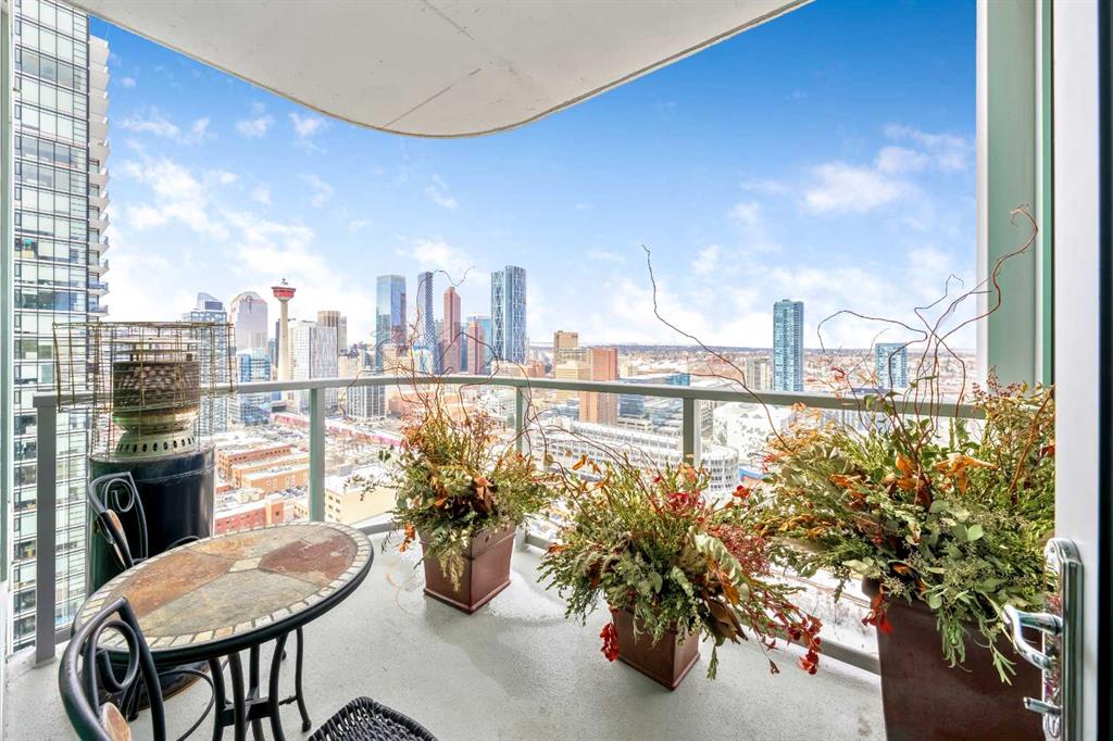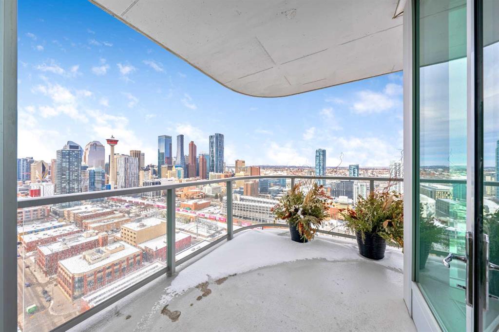 Experience luxury living in this MASSIVE residence in the highly sought after Arriva building. Enjoy complete exclusivity with your own private high-speed elevator including stately double doors. Floor-to-ceiling windows draw in the natural light and provide panoramic views of the city and Bow River. This executive home with a sprawling floor plan, spanning half the of the footprint of the 29th floor makes it ideal for large scale entertaining and hosting gatherings. The state-of-the-art kitchen features a full Miele luxury appliance package, and an expansive sleek island that seamlessly opens to the dining room with direct access to one of three balconies where you can take in the iconic views of downtown. Adjacent to the kitchen is an intimate family room with built in cabinetry a warm fireplace and another private balcony. On the opposite side of the kitchen and dining is a generous living room providing ample space for gathering and more spectacular views! A private office with built in storage and a powder room are tucked in and away. The primary is a true sanctuary with unmatched views, and a balcony overlooking the serene river, where you can take in the morning sunrises. Complete with an expansive walk-in closet including built ins and a spa inspired 5PC ensuite. Offering direct access to your own home gym, or space for a private dressing room or yoga area. The secondary bedroom has a custom murphy bed, with built ins, a walk-in closet, and its own 4PC ensuite providing a private retreat for family or guests. Freshly painting, offering two titled parking stalls, and an assigned storage locker. Experience this perfect blend of luxury and privacy. The Arriva building offers 24-hour security and concierge services, two guest suites, a rooftop garden, an owner’s lounge, central A/C, and secure access. Exceptional executive living located in the vibrant Beltline area, steps from Stampede grounds, the new rink, river pathways, restaurants, cafés, central library and LRT access. View the virtual tour or schedule your private showing today!