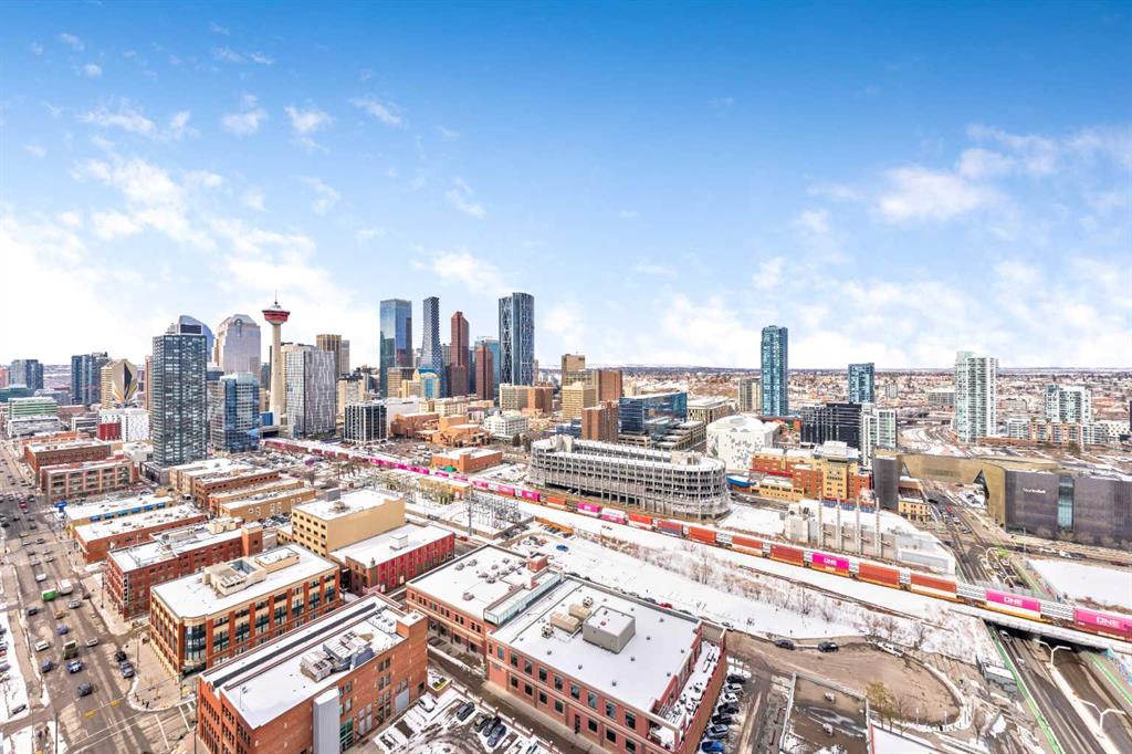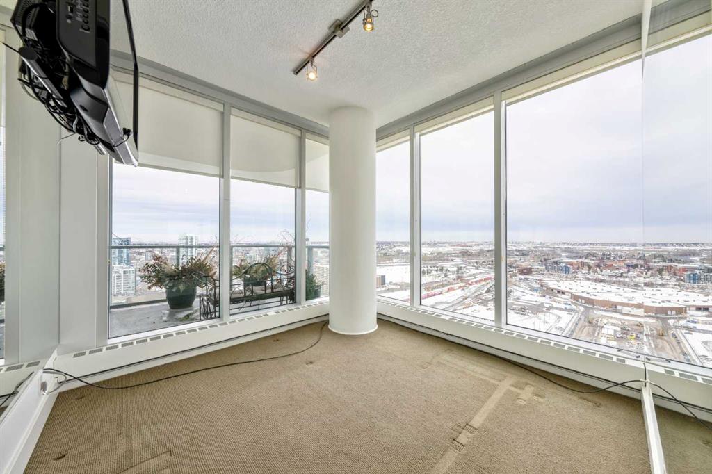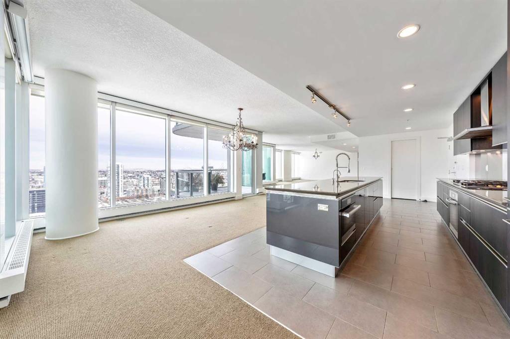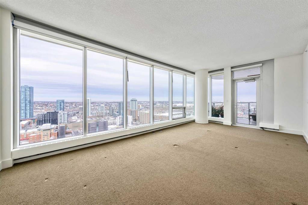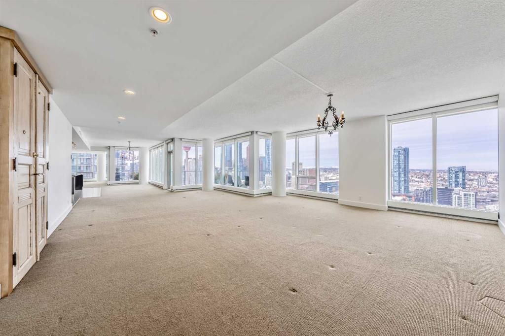 Experience luxury living in this MASSIVE residence in the highly sought after Arriva building. Enjoy complete exclusivity with your own private high-speed elevator including stately double doors. Floor-to-ceiling windows draw in the natural light and provide panoramic views of the city and Bow River. This executive home with a sprawling floor plan, spanning half the of the footprint of the 29th floor makes it ideal for large scale entertaining and hosting gatherings. The state-of-the-art kitchen features a full Miele luxury appliance package, and an expansive sleek island that seamlessly opens to the dining room with direct access to one of three balconies where you can take in the iconic views of downtown. Adjacent to the kitchen is an intimate family room with built in cabinetry a warm fireplace and another private balcony. On the opposite side of the kitchen and dining is a generous living room providing ample space for gathering and more spectacular views! A private office with built in storage and a powder room are tucked in and away. The primary is a true sanctuary with unmatched views, and a balcony overlooking the serene river, where you can take in the morning sunrises. Complete with an expansive walk-in closet including built ins and a spa inspired 5PC ensuite. Offering direct access to your own home gym, or space for a private dressing room or yoga area. The secondary bedroom has a custom murphy bed, with built ins, a walk-in closet, and its own 4PC ensuite providing a private retreat for family or guests. Freshly painting, offering two titled parking stalls, and an assigned storage locker. Experience this perfect blend of luxury and privacy. The Arriva building offers 24-hour security and concierge services, two guest suites, a rooftop garden, an owner’s lounge, central A/C, and secure access. Exceptional executive living located in the vibrant Beltline area, steps from Stampede grounds, the new rink, river pathways, restaurants, cafés, central library and LRT access. View the virtual tour or schedule your private showing today!