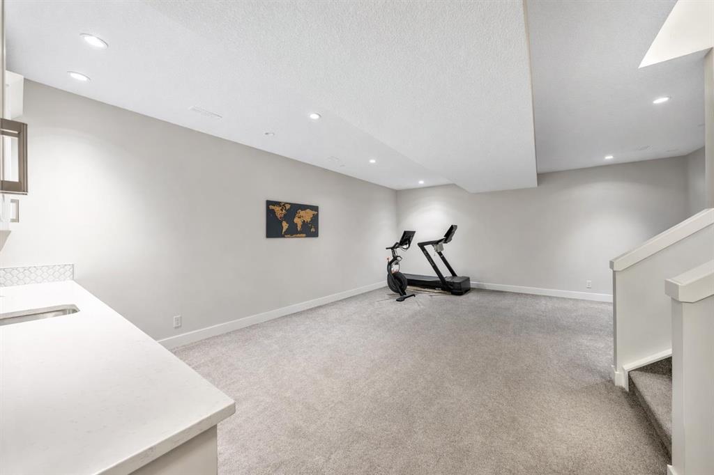 Located just steps from the shops, restaurants, parks, and outdoor pool that define life in Marda Loop, this beautifully finished infill offers over 2,000 sq. ft. above grade plus a fully developed lower level, all wrapped in a layout that feels both refined and genuinely livable. The main floor is bright, open, and welcoming, with 9’ ceilings, oversized windows, engineered hardwood flooring, air conditioning, and an energy-efficient fireplace anchoring the living space. At the centre of the home, the galley-style kitchen is designed for the way people actually live—featuring stainless steel appliances, quartz countertops, ample cabinetry, an oversized island, and seamless connection to the generous dining area. A walk-in pantry and thoughtfully designed mudroom with elegant tile flooring and handcrafted lockers add everyday function without sacrificing style. Upstairs, three well-proportioned bedrooms, a full bathroom, and upper laundry create an ideal family layout, while the spacious primary retreat offers a custom walk-in closet and a spa-inspired ensuite with dual sinks, a freestanding soaker tub, and a full tile and glass shower. The fully developed lower level extends the home in all the right ways, featuring a large family/media room, bar area, fourth bedroom, full bathroom, and excellent storage. Outside, the landscaped yard, large deck, and double garage complete a property that delivers the full Marda Loop lifestyle with comfort, function, and style. From morning coffee at the island to summer evenings on the deck and movie nights downstairs, this is a home designed to support both entertaining and easy daily living.