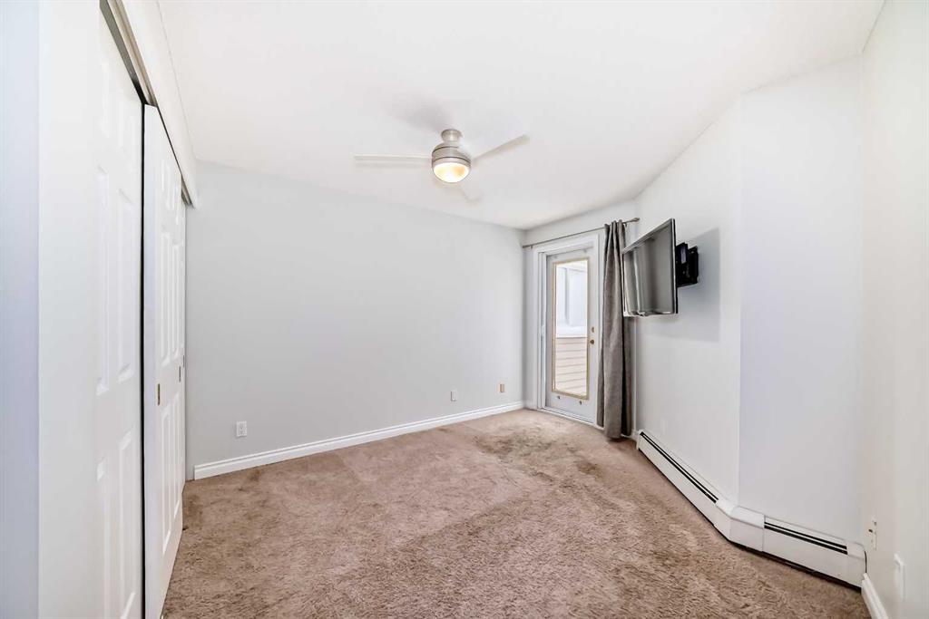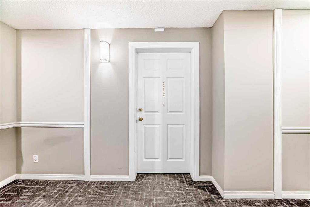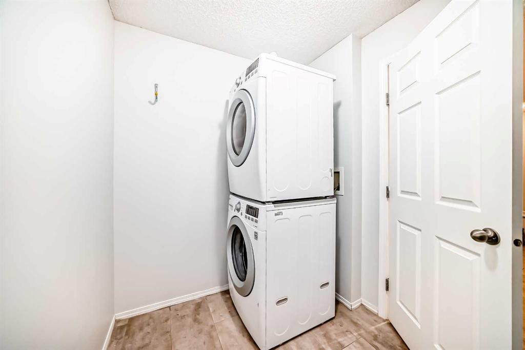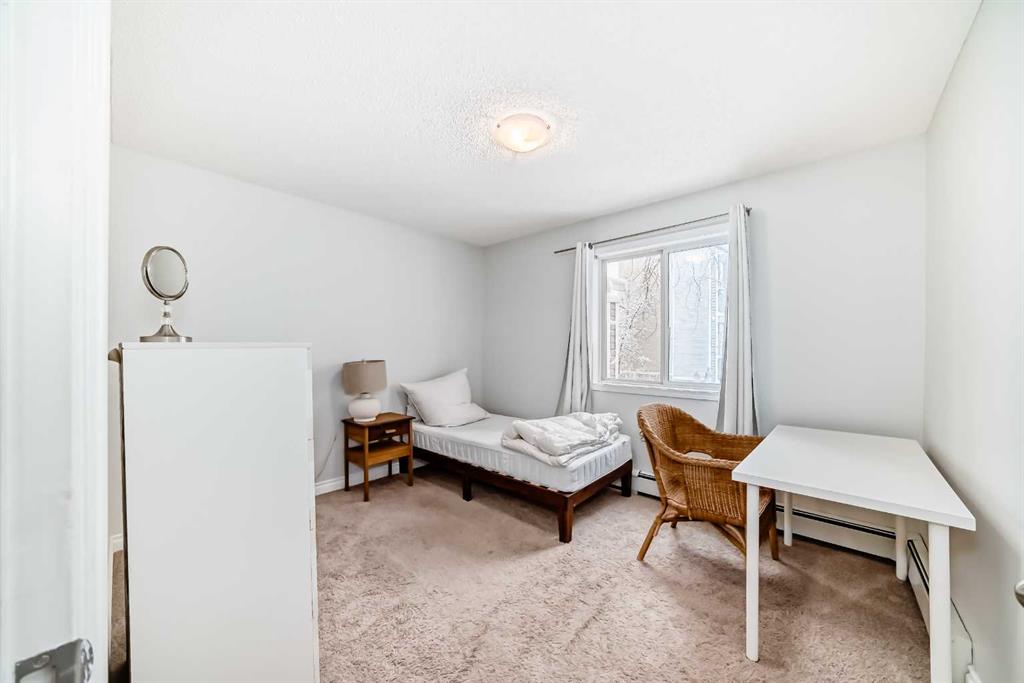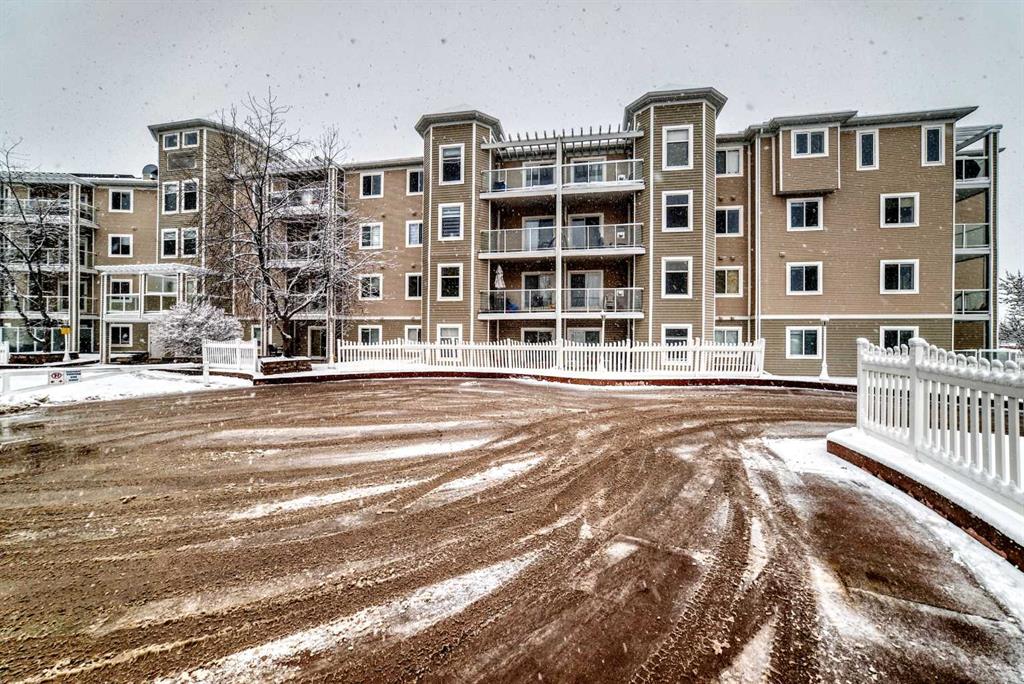 BEAUTIFUL 2-bedroom +large den (no closet) easily adapted to third bedroom, 2-bath condo just steps to shopping and the C-Train Exceptional floor plan. Stunning upgrades incl. all flooring: ceramic tile in kitchen/entry, laminate in living/dining areas and cozy carpet in bedrooms. Spectacular fresh white kitchen with newer appliances, gorgeous quartz countertops and stylish copper backsplash. Huge storage/laundry/pantry, shelving incl. Fabulous living/dining area with corner gas fireplace and access to spacious main balcony. Fantastic master bedroom with walk-through closet to lovely ensuite. Separate hallway to main bath, second bedroom with private balcony, and . Fresh paint/new trim throughout. Quiet location overlooking courtyard. Sunny west exposure with just enough shade. Ideal parking stall beside elevator.