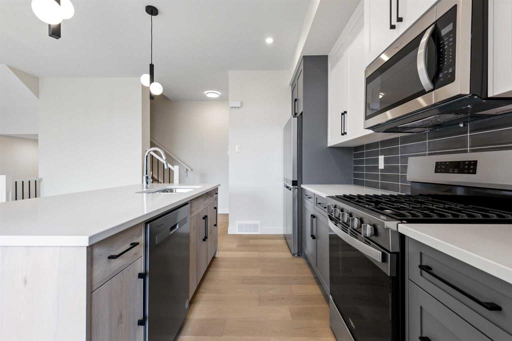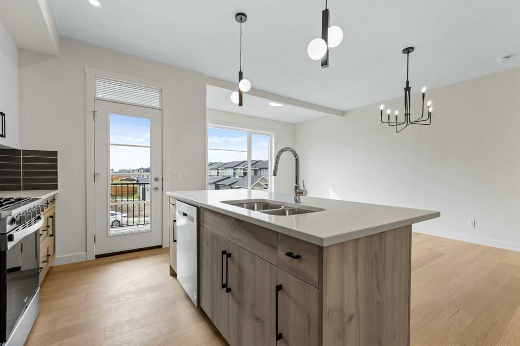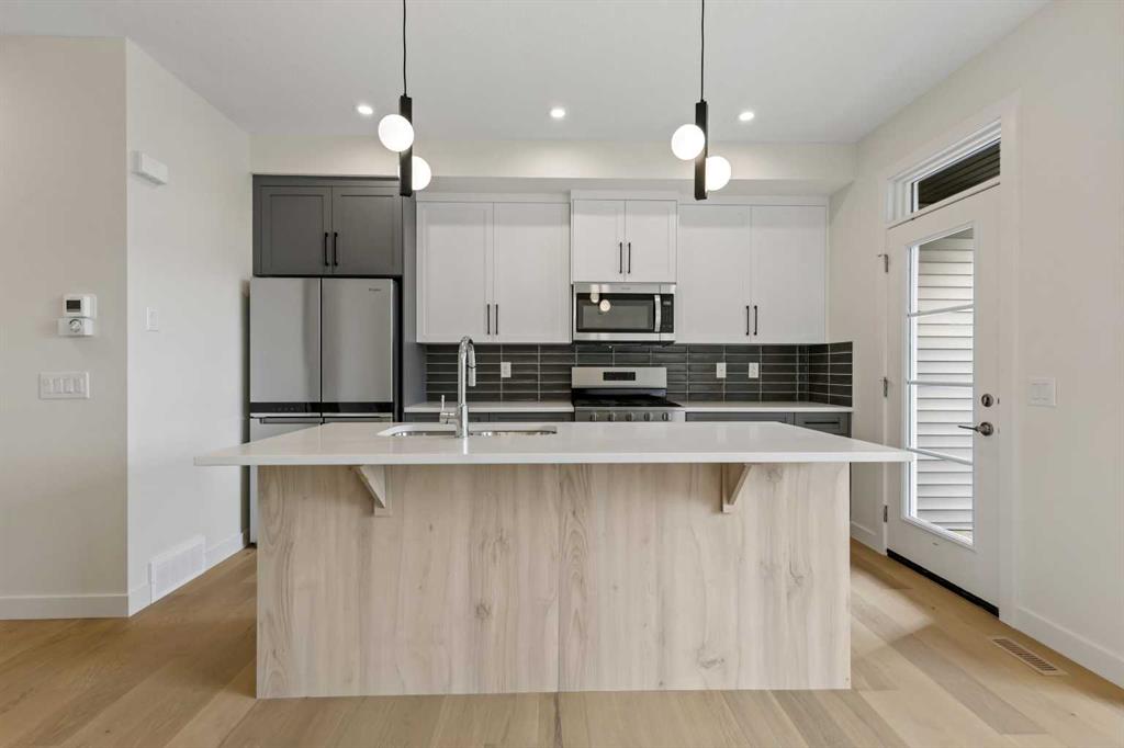 Welcome to 12 Waterford Glen in Chestermere, where modern style meets everyday functionality in this beautifully designed townhouse. This move-in ready home offers the perfect blend of comfort, convenience, and contemporary finishes—ideal for first-time buyers, growing families, or investors. Enjoy the freedom of no condo fees and the convenience of a single attached garage with direct access into the home. Inside, the main floor is bright and inviting, featuring 9-foot ceilings, engineered hardwood flooring, and a thoughtfully designed open-concept layout that feels both spacious and welcoming. The kitchen and bathrooms are finished with elegant quartz countertops, offering a clean, modern look with lasting durability. Step outside to a treated wood deck with BBQ gas line, perfect for relaxing, entertaining, or enjoying summer evenings. Upstairs, the convenient upper-floor laundry adds everyday ease, while the ground-level flex room offers incredible versatility—ideal for a home office, workout space, guest room, or playroom. This is a home that truly delivers style, value, and flexibility in one of Chestermere’s most desirable communities. Unlock Your First Home with the GST Rebate! The First-Time Home Buyers’ GST Rebate could save you up to $50,000 on a new home. To qualify, buyers must be at least 18 years old, be a Canadian citizen or permanent resident, and must not have owned or lived in a home owned by themselves or their spouse/common-law partner within the last four years. Homes placed under contract after May 27, 2025 may be eligible. Terms and conditions are subject to Government of Canada and CRA rules and guidelines. Please note: Front elevation and interior photos shown are from the same model and are for illustration purposes only. Actual home style, interior colours, and finishes may vary. Call today!