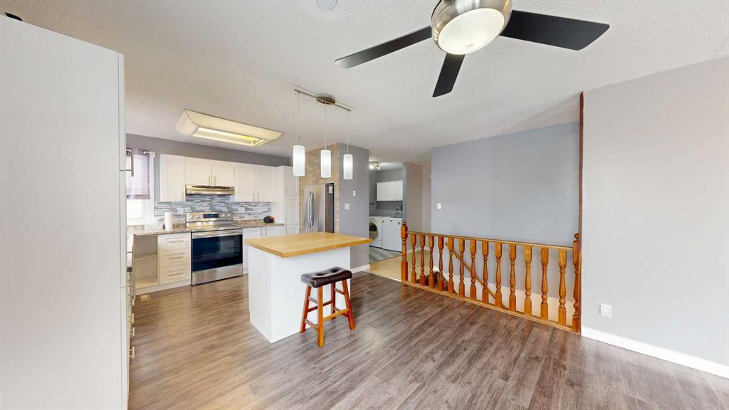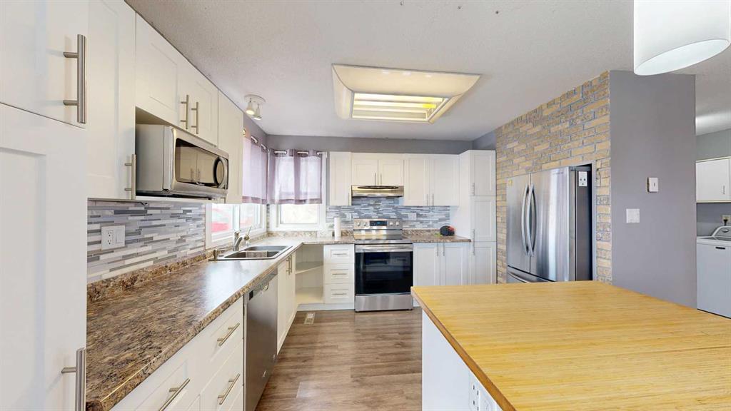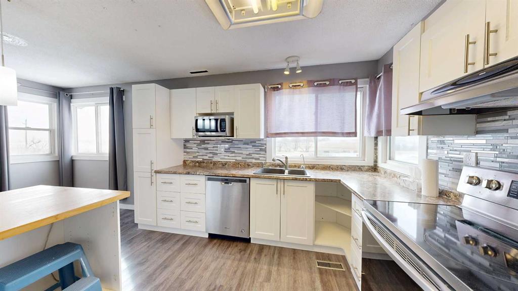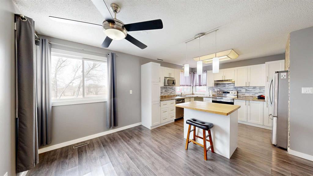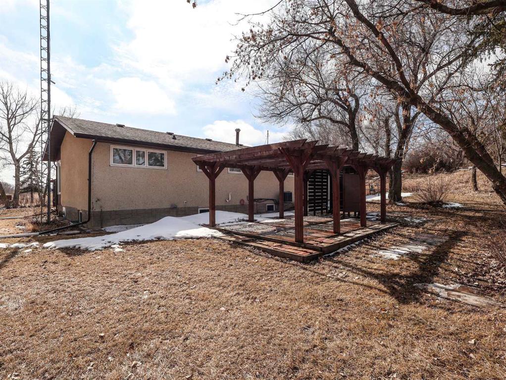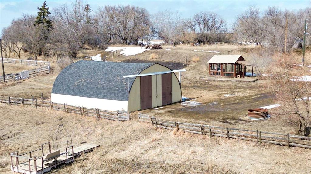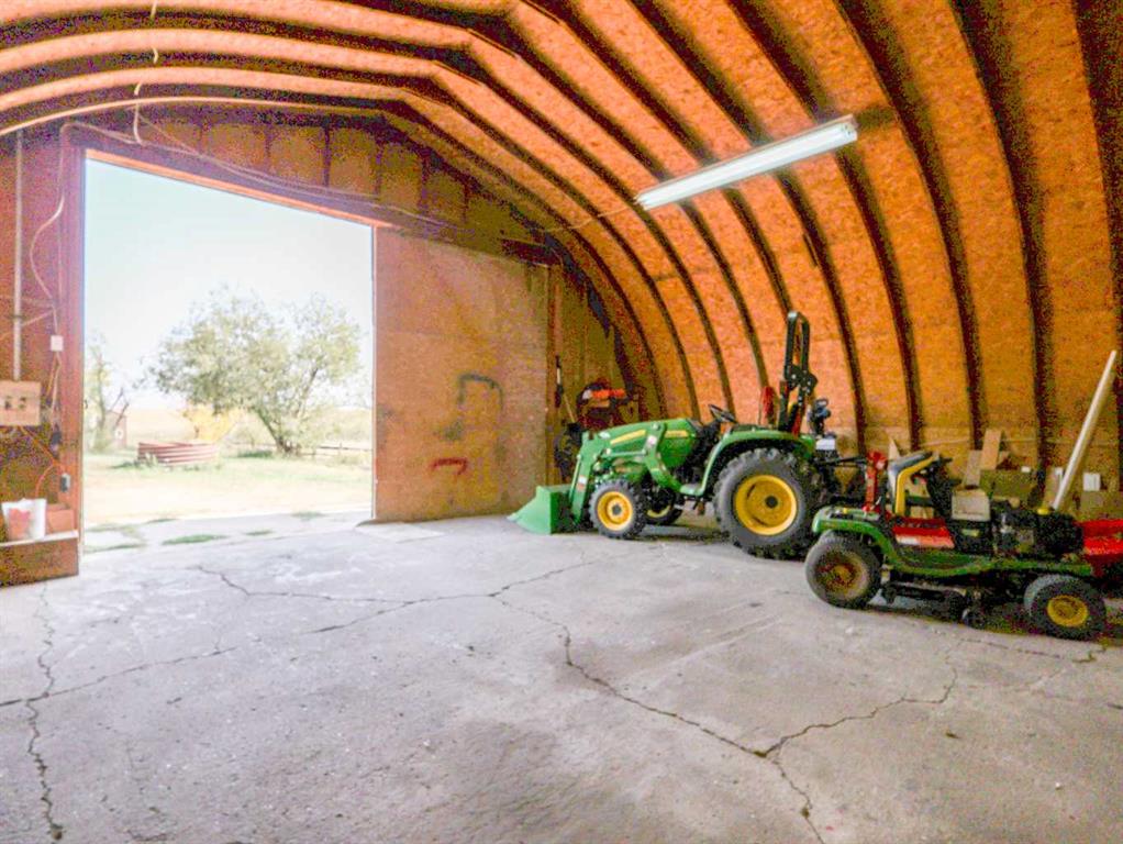 Escape to the space, freedom, and quiet of country living on this beautifully set up 10.01-acre acreage—perfect for families, hobby farmers, or anyone dreaming of room to roam with a few horses in the pasture. Thoughtfully equipped for rural living, the property features perimeter and cross fencing, a barn, a quonset, and a massive 24’ x 80’ open-front steel machine shed. Additional outbuildings include a greenhouse, a gazebo, as well as a large arbor, great for barbecues. The yard is designed for enjoying the outdoors and is complete three garden plots ready for planting your annual vegetables. The 4-bedroom bungalow is bright, welcoming, and designed with family living in mind. The modern kitchen showcases white shaker cabinetry, a glass tile backsplash, bamboo-topped island with seating, and stainless steel appliances. The spacious living room offers plenty of room for oversized furniture and is filled with natural light from large south-facing windows. The main floor is complete with two bedrooms and an updated 4-piece bathroom featuring double sinks, while newer vinyl windows—triple pane on the south side—add comfort and efficiency. The basement offers a family room with a gas fireplace and oak-tile surround, two additional bedrooms, a den or storage space, and a 3-piece bathroom. A covered, insulated walkway connects the home to the heated 22’ x 24’ double garage, equipped with shelving and its own furnace—ideal for year-round convenience in Alberta’s climate. Located near the welcoming community of Donalda, you’ll enjoy access to a K–9 school, quiet surroundings, and beautiful views of the Meeting Creek coulee, all within an easy drive to Stettler and Camrose. Experience the lifestyle you have been looking for—space, privacy, and the freedom to make it your own.