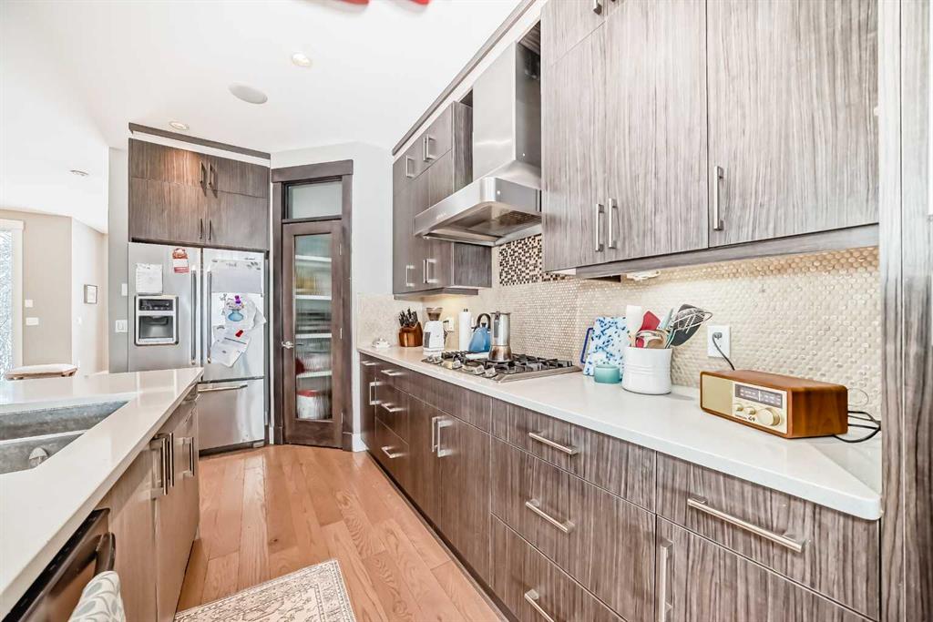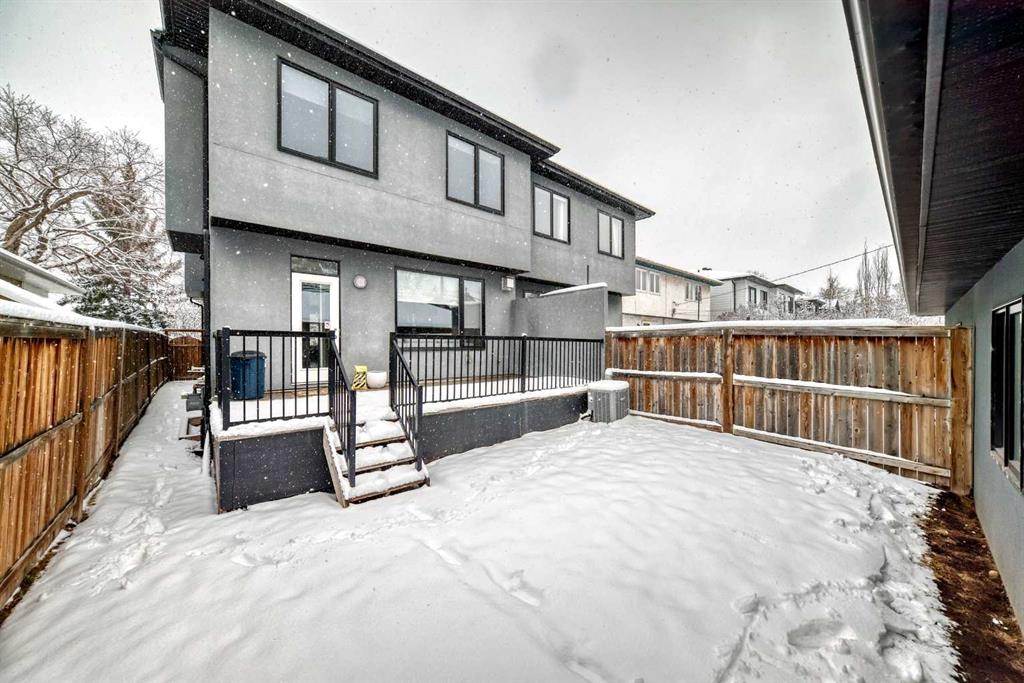 Welcome to 2117 51 Avenue SW, a beautifully crafted semi-detached home offering 2,706 sq ft of luxurious living space. This executive build features high-end finishes, impeccable design, and thoughtful details throughout. Features You'll Love: Main Floor: 9-foot ceilings, elegant engineered oak hardwood, and a cozy gas fireplace with built-ins Kitchen: Gourmet appliances, sleek cabinetry, Island with breakfast bar and a full pantry Upper Floor: 12-foot ceiling primary bedroom with a double-sided fireplace, spa-like ensuite, custom walk-in closet, and two additional spacious bedrooms Office & Laundry: Functional second-floor layout with office and dedicated laundry spaces Fully Finished Basement: Wet bar with wine fridge, media room built-ins, full bath, and large fourth bedroom with walk-in closet Outdoor Oasis: A well-sized deck with a gas line for your BBQ, perfect for summer evenings Parking: Detached double garage for convenience Located in desirable North Glenmore Park, this home is ideal for families, professionals, or anyone looking for elegance and comfort. Don’t miss this rare opportunity!