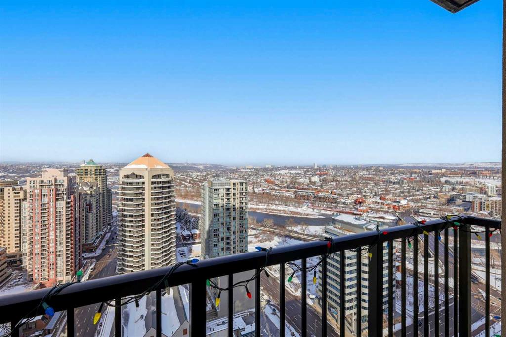 Welcome to elevated downtown living in the heart of Calgary’s Downtown West End. This west-facing 1 bedroom, 1 bathroom condo sits high on the 28th floor, with unobstructed views of the Bow River, Rocky Mountains, Walk to the Bow River pathways, Prince’s Island Park, Kensington Village, C-Train, boutique shops, fine dining, cafes, and Calgary’s +15 network—all just steps away. Sunny West Facing Living Rm w/ Incredible Views, Sleek Modern Kitchen w/ Quartz Counters, Designer Backsplash, Under-cabinet lighting, Stainless Steel Appliance Package (Fisher & Paykal Fridge, Built-in Microwave & Oven), Master Bedrm w/ Double Closets & Access to Balcony w/ BBQ Gas Hookup, Amazing 4 pc Bath w/ Quartz counters & Soaker Tub, In-Suite Laundry, Titled Underground Parking & Storage Locker in Front. Impressive Amenities includes Sky Lounge/Gym on 36th Floor with 360 degree views, Party Rm & Rooftop Patio, Full time Concierge/Security Service & Stunning Hotel Style Lobby. This sought-after building offers upgraded amenities, including a state-of-the-art fitness center, yoga room, professional boardroom, owners’ lounge, secure underground parking, and concierge service. With eco-friendly, energy-efficient features and the assurance that short-term rentals are not permitted, you’ll enjoy a safe, stable, and welcoming community. Whether you’re looking for a stylish urban home or a low-maintenance lock-and-leave lifestyle, this 28th-floor residence delivers the perfect balance of comfort, convenience, and sophistication.