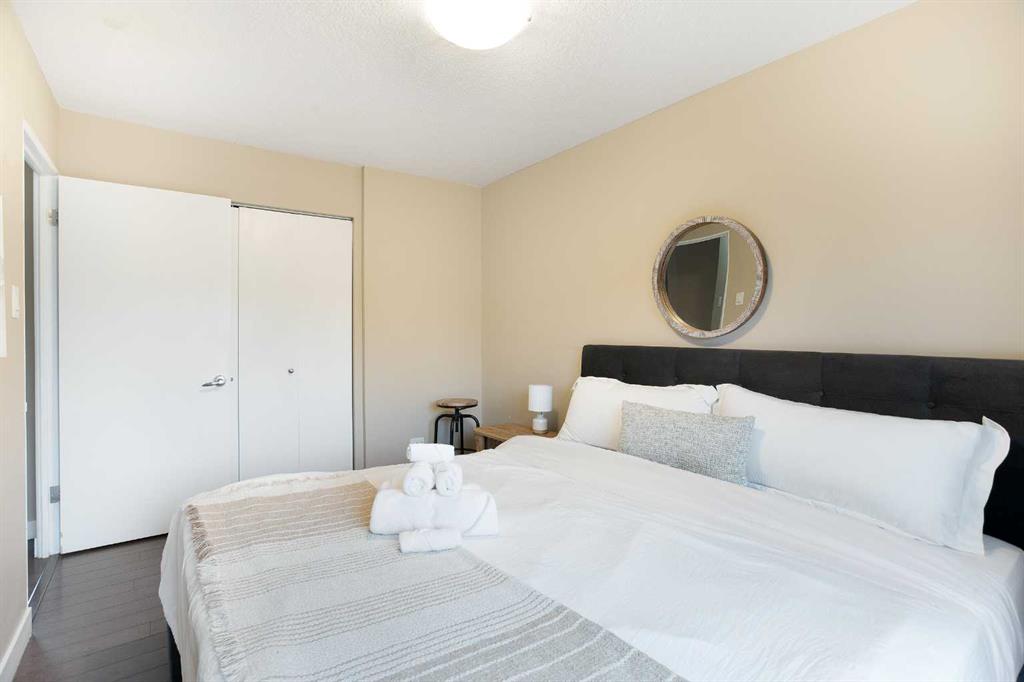 Welcome to urban living at its finest in the heart of Cliff Bungalow. Perfectly situated right on iconic 17th Avenue SW, this spacious and beautifully furnished 2-bedroom condo offers an exceptional opportunity to enjoy the best of downtown Calgary. Whether you’re a first-time buyer, investor, or looking for a stylish inner-city home, this unit delivers the ideal blend of comfort, convenience, and lifestyle. Offering 804 sq ft, this well-appointed condo features a functional layout with 2 BEDROOMS, 1 spacious bathroom, and TITLED PARKING. Inside, you’ll find tasteful high-end furnishings, a bright and inviting living space, and a layout designed for both everyday living and entertaining. Step outside onto the balcony and enjoy stunning skyline views — the perfect setting for your morning coffee or evening unwind. Laundry is conveniently on the same floor as well. Currently used as an Airbnb and offered FULLY FURNISHED, this property presents a rare turnkey opportunity in one of Calgary’s most sought-after locations. Surrounded by some of the city’s best restaurants, pubs, cafés, and boutique shopping, you’ll love the unbeatable walkability and vibrant energy that comes with living on 17th Ave. This home is ideally positioned for those seeking true inner-city living or looking to capitalize on a flexible investment opportunity in a prime location. Don’t miss your chance to own in one of Calgary’s most iconic lifestyle communities.