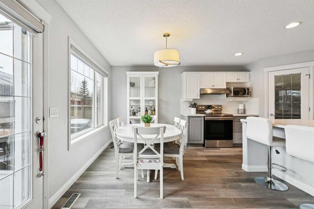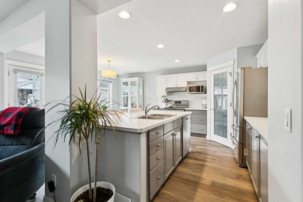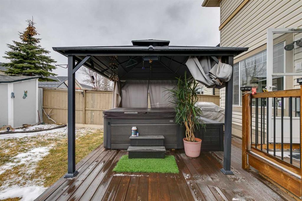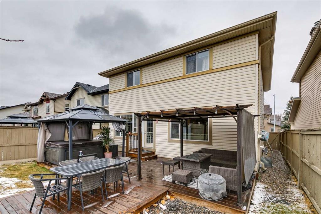 Welcome to this beautiful and spacious family home in the sought-after lake community of Chaparral, offering approximately 3,200 sq. ft. of thoughtfully designed living space. With four generous bedrooms upstairs and two additional bedrooms in the fully developed basement, this home is ideal for growing or multi-generational families. Step inside to a stunning vaulted entrance that creates an immediate sense of openness and elegance. The main floor features large windows that flood the home with natural light, enhanced by new silhouette blinds that maximize brightness while maintaining privacy. This unique layout offers a separate formal dining room, a cozy fireplace, and an open-concept kitchen with a convenient kitchenette area, two-piece powder room, perfect for entertaining and everyday living. Quality new broad board laminate & tile flooring run throughout the main level, showcasing excellent craftsmanship and pride of ownership. Upstairs, the spacious primary suite provides a relaxing retreat with a walk-in closet featuring custom built-ins & a private ensuite with a separate shower. The upstairs is complete with three other good size bedrooms (one without a built-in closet) & a four piece bathroom, ideal for the large. The fully developed basement offers a self-contained suite with two bedrooms & a four piece bathroom, making it an excellent option for extended family or added flexibility. Outside, enjoy a beautifully landscaped south-facing backyard with an extended patio, perfect for soaking up the sun or hosting gatherings. The yard is private, with two gazebos & high fencing. The home is situated on a quiet street with no road noise. Additional highlights include a double attached garage; the roof is 4 years old & the 40-gallon high efficiency water tank is 4 years old. Enjoy access to the incredible amenities of Lake Chaparral, where residents enjoy year-round activities such as swimming, skating, tennis, kayaking, and community events. The home is also conveniently located near excellent schools, playgrounds, shopping & parks, making it perfect for families. This exceptional property combines space, comfort, and lifestyle in one of Calgary’s most desirable communities—an ideal place to call home.