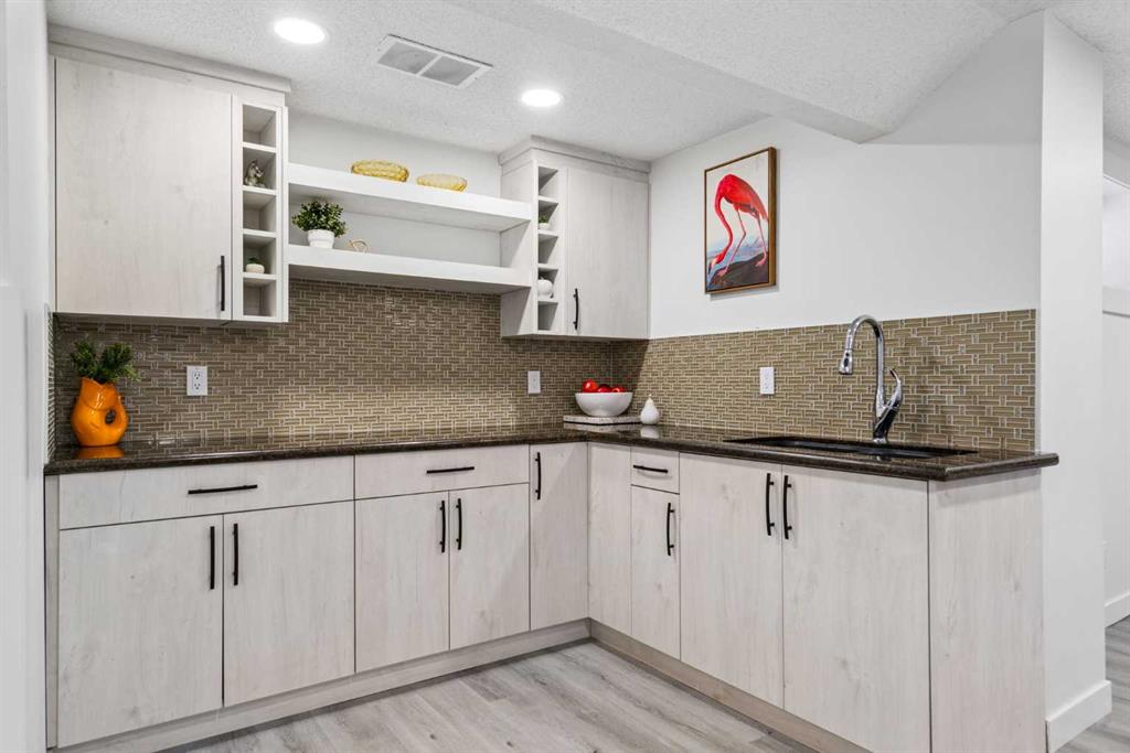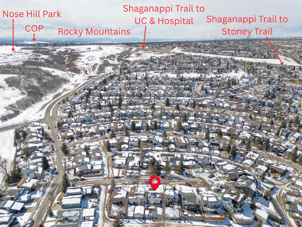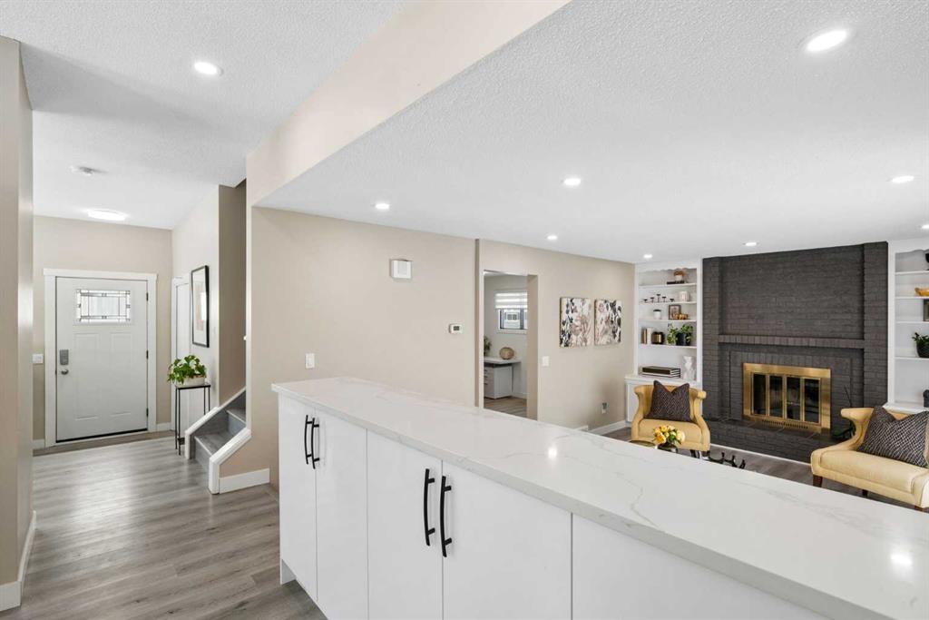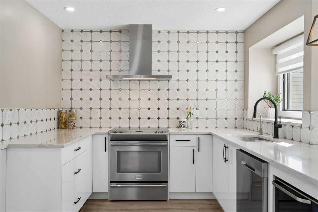 Welcome to this thoroughly renovated over 2150sqft of finished living spaces featuring a total of 4 bedrooms, 1 office, 1 den and 3.5 Bathrooms nested on a quiet cul-de-sac in very family-oriented community MacEwan. Just steps from Nose Hill Park, easy access to scenic walking paths and green space, quick connections to Stoney Trail, Deerfoot Trail, and a convenient commute downtown via 14th Street. Upon entering, you will be impressed by the fully renovated atmosphere and open concept layout. The main floor begins with a bright living room with a new west facing bay window and a dining area with two new west facing picture windows. The thoroughly renovated stunning kitchen has extended white cabinetry, nice quartz countertops, and high-end stainless-steel appliances. The adjacent spacious family room offers a wood fireplace, built-in bookcase, and a French Door leading to the side new composite deck. Behind is a nice office with a big window and a door towards the backyard deck. A convenient new powder room with a laundry area completes the main level. Upper level features a primary bedroom with three side picture windows, walk-in closet and 4-piece bathroom, two other bedrooms, and one 3-piece family bathroom. The basement is fully finished with one nice wet bar, one spacious recreation room, one bedroom with an egress window, a den, and a 3-piece full bathroom. Outside, the fully fenced yard offers large extended deck for seating, enjoying sunshine, and barbecue with family. Other updates include Siding (2016), Hot Water Tank (2017), Part Windows (2023-2024), Shed (2024), Roof (2025), Deck & Fence & Patio (2025), Furnace (2025) and Washer & Dryer (2025). MacEwan is a quiet, family-friendly community in NW Calgary with tree-lined streets, parks, close to schools, and quick connections to transit, shopping, and the extensive trails of Nose Hill Park. An easy commute to downtown, U of C, and SAIT. Best opportunity to own a thoroughly renovated house! Check 3D Tour and Book your showing Today!