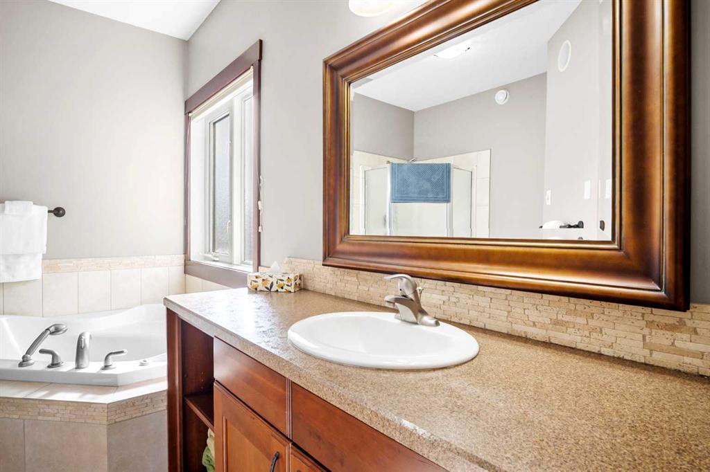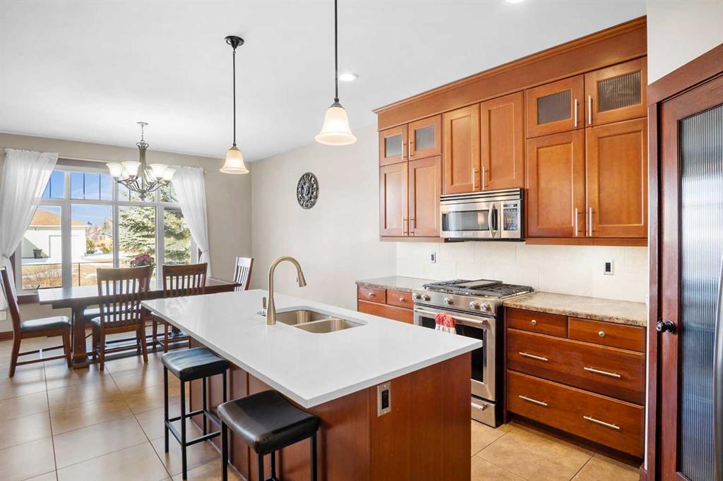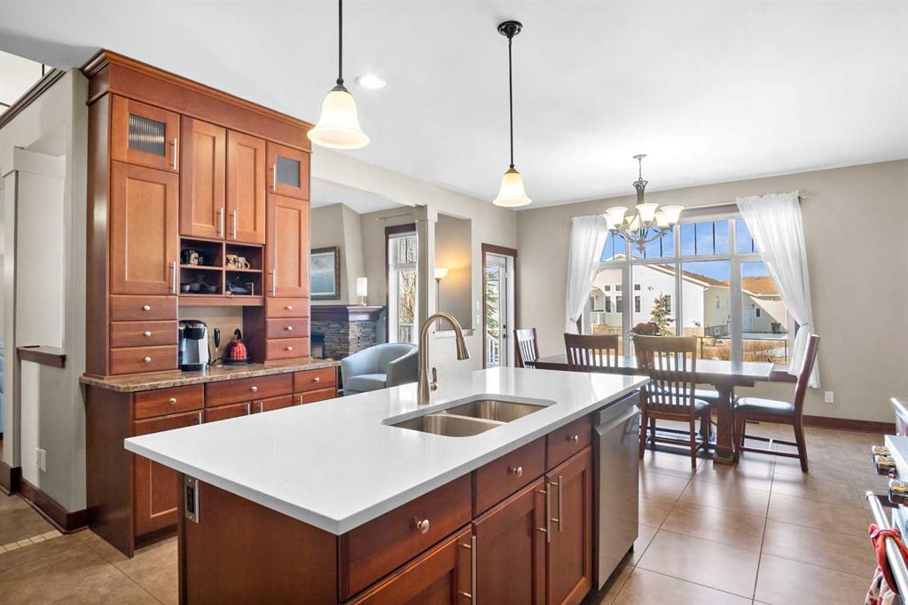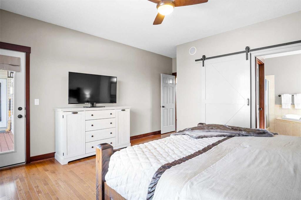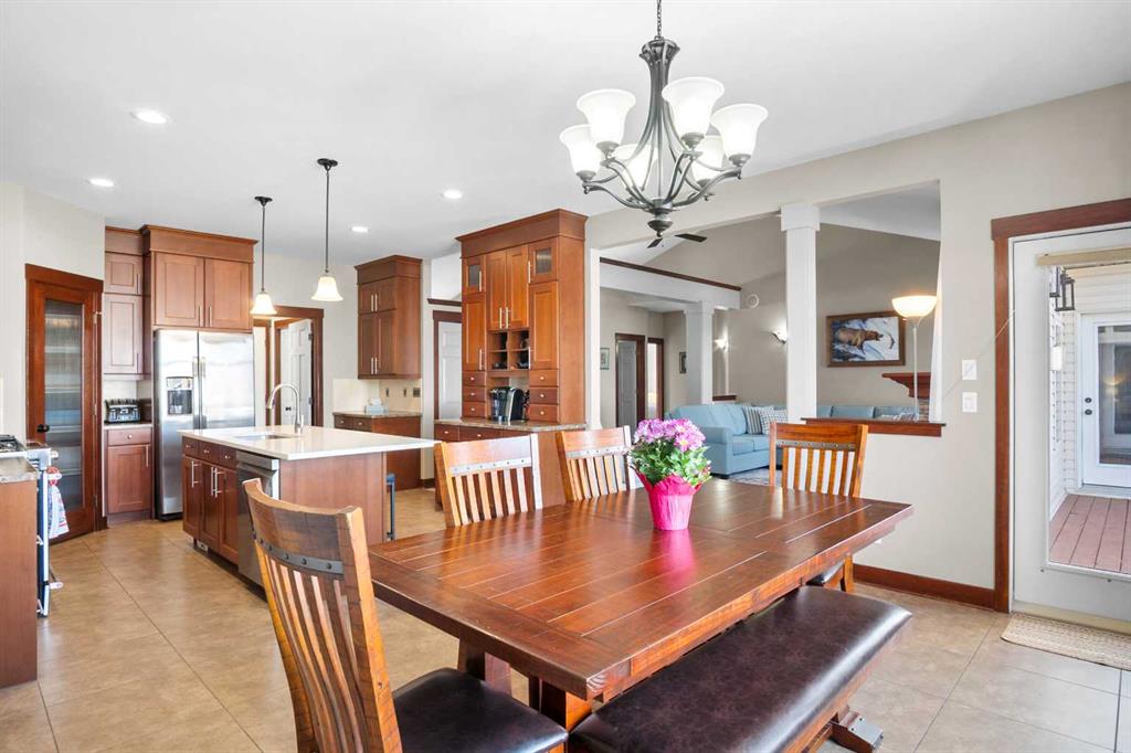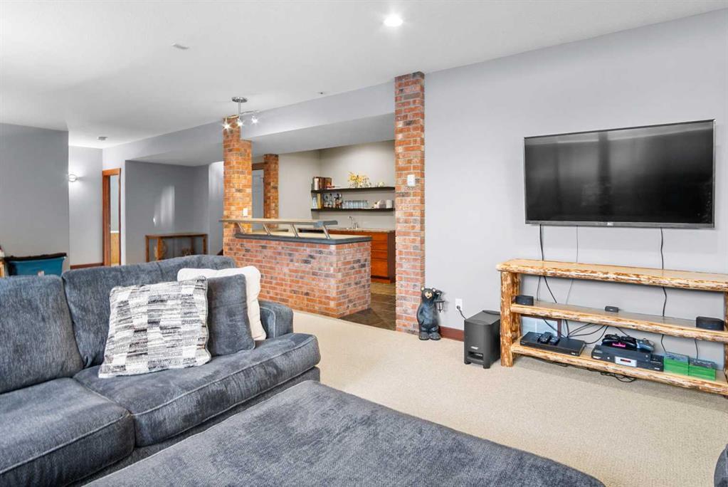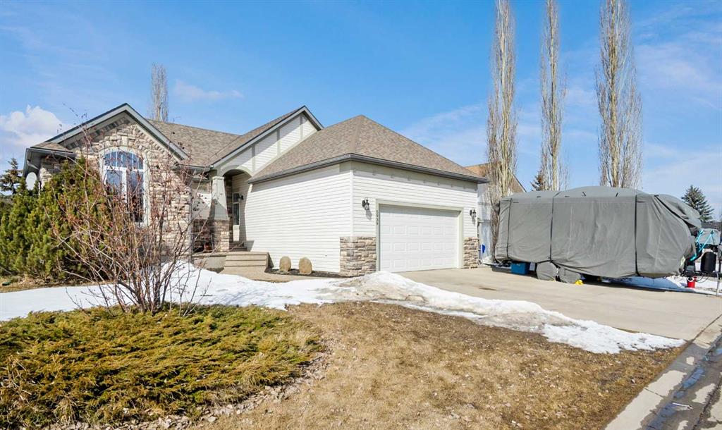 Beautifully built bungalow in one of Olds’ most desirable communities, Park Meadows. Offering 2+2 bedrooms, 2.5 bathrooms, an oversized heated garage, and a gorgeous west-facing fenced yard, this home is the perfect combination of quality, comfort, and location. The main floor features hardwood floors, vaulted ceilings, and a spacious living room anchored by a stunning stone-faced gas fireplace. The bright, functional kitchen and dining area offers updated stainless steel appliances, a gas/electric stove, plenty of cabinetry, built-ins, a large corner pantry, and a newer stone island. The dining area overlooks the private backyard, creating a warm and inviting space for everyday living. The bright and spacious primary suite features a walk-in closet, a 5-piece ensuite, and private access to the back deck — the perfect spot to enjoy your morning coffee. A second large bedroom with double closets, convenient main floor laundry, and a 2-piece guest bath complete the main level. Downstairs, the fully finished basement with in-floor heat adds exceptional living space with 2 large bedrooms, high ceilings, a full bathroom, spacious rec room, built-in wet bar, large pantry closet, massive cold room/canning area, and plenty of additional storage. Outside, the beautifully landscaped west-facing yard features mature trees, flower beds, and a private deck designed for quiet evenings and easy enjoyment. An oversized double attached garage with in-floor heat, plus space on the driveway for a small RV, completes this impressive property.