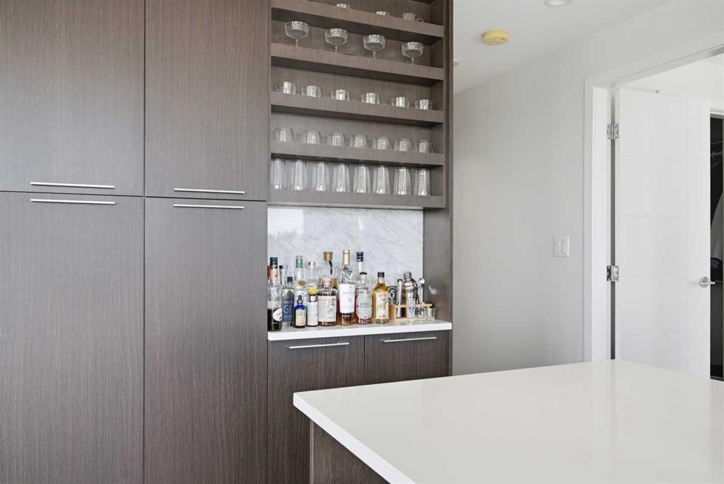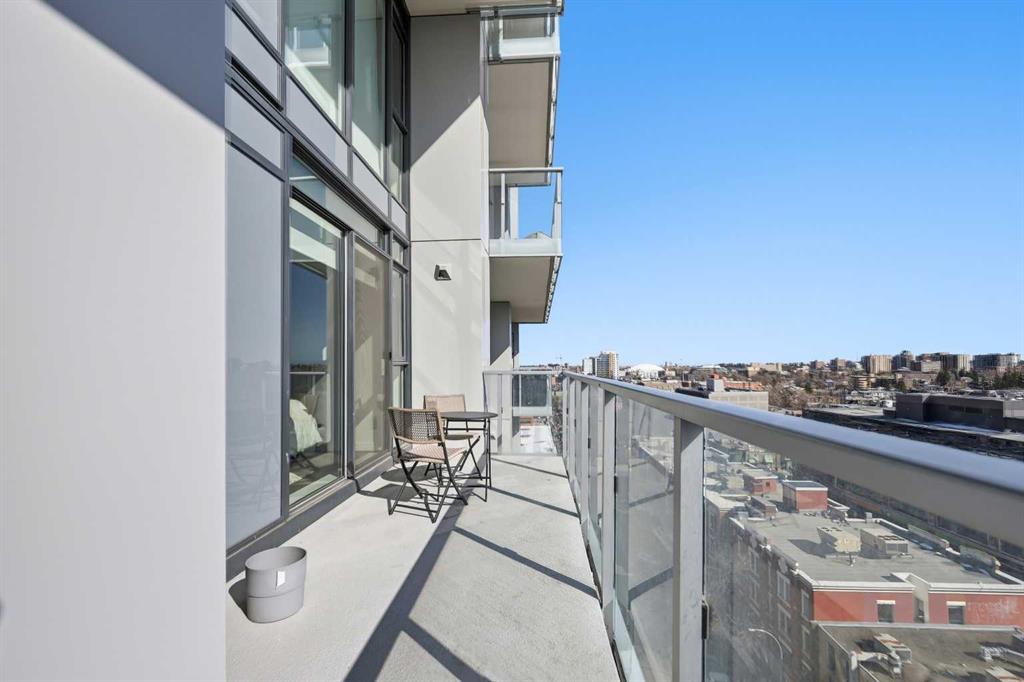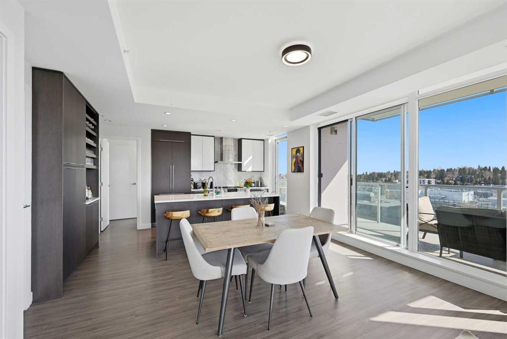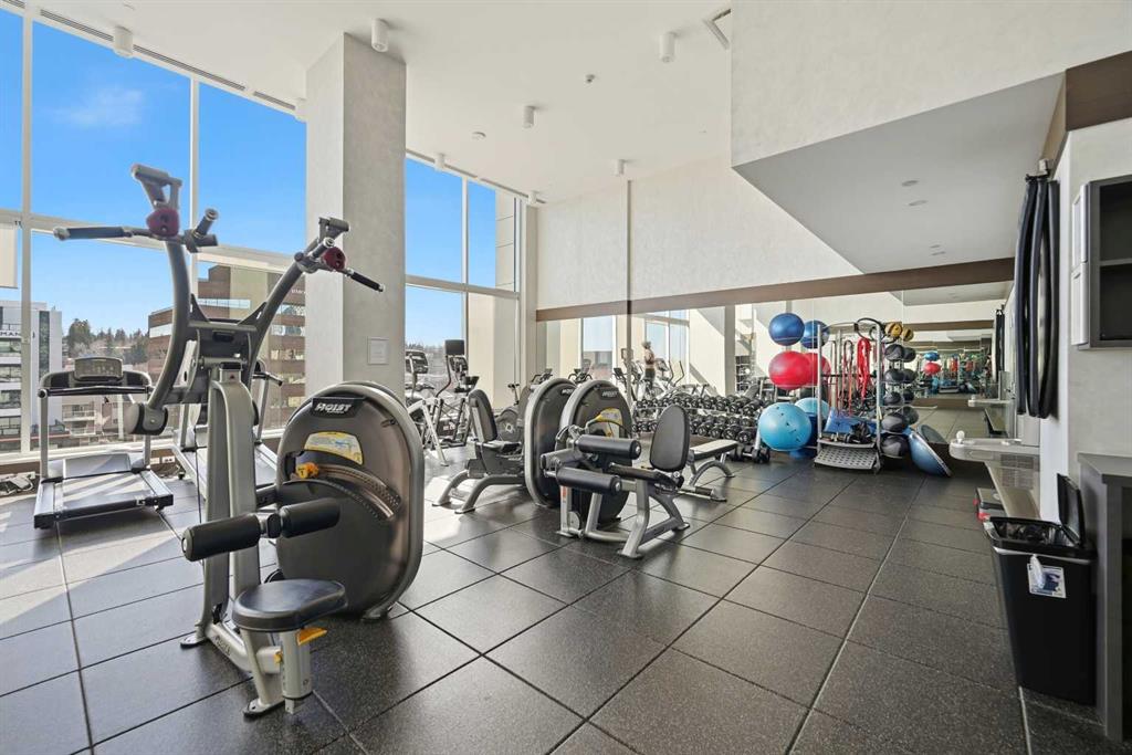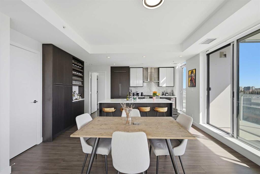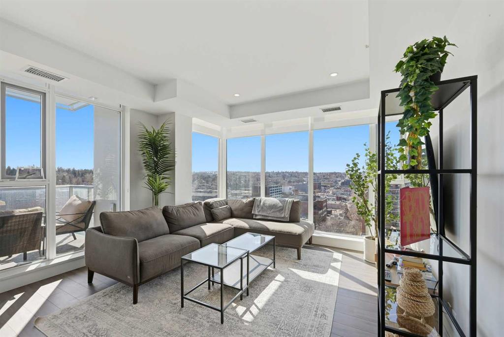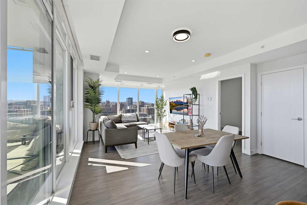 Welcome to The Royal! This stunning 2-bedroom, 2-bathroom southwest corner suite is filled with beautiful afternoon and evening sunshine. The well-designed floor plan and wall-to-wall, floor-to-ceiling windows create a bright, spacious feel throughout. The home features new wide vinyl plank flooring and modern flat ceilings, along with a stylish and functional kitchen complete with quartz countertops, a large central island with breakfast bar, premium appliances including a gas range, integrated fridge and dishwasher, plus a pantry and coffee station. Step outside to the massive double-sized balcony featuring lighting, electrical outlets, and gas BBQ hookups at both ends, perfect for relaxing or entertaining. The spacious primary bedroom includes a walk-in closet and a beautiful ensuite with a large glass shower and double vanity. A second bedroom and full bathroom offer flexibility for guests, a home office, or shared living, while in-suite laundry adds everyday convenience. Residents enjoy outstanding amenities including a fitness center, steam room, sauna, squash court, 24-hour concierge and security, outdoor courtyard, social lounge with TV and billiards, and a spacious rooftop patio with BBQ areas. The building is pet-friendly (with approval) and surrounded by nearby parks and green spaces. This exceptional unit also includes secure heated underground parking, a storage locker, and bike storage, a beautifully maintained urban home in a prime location.