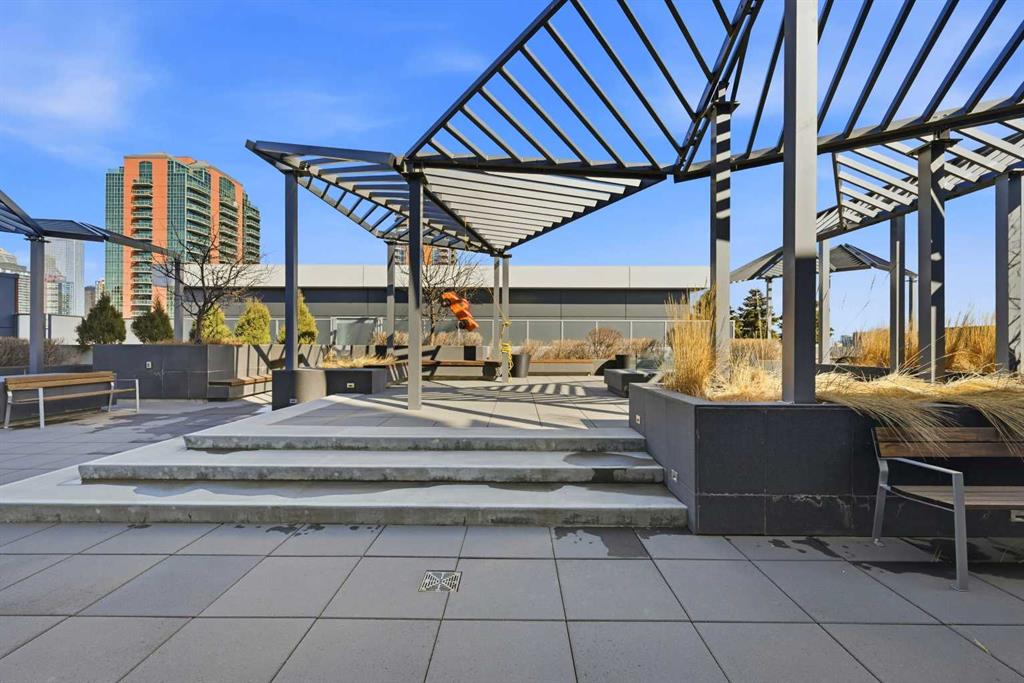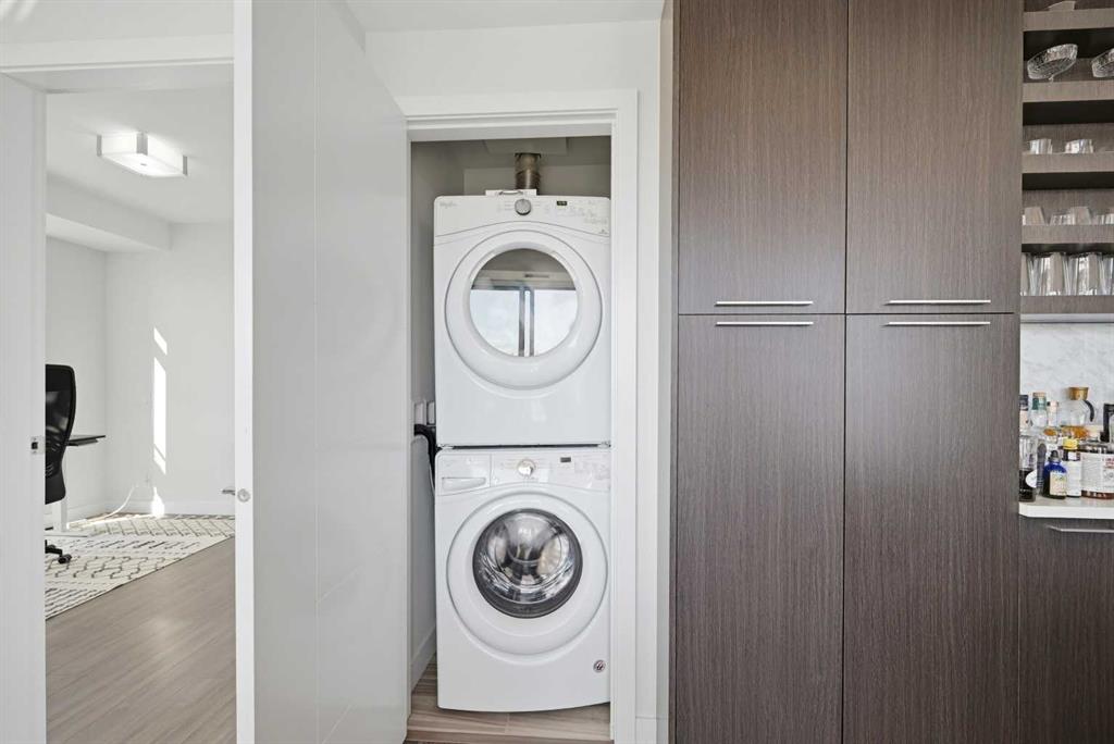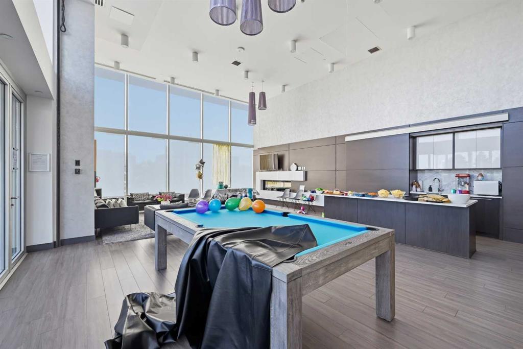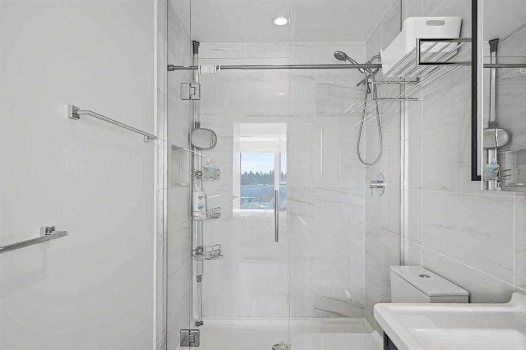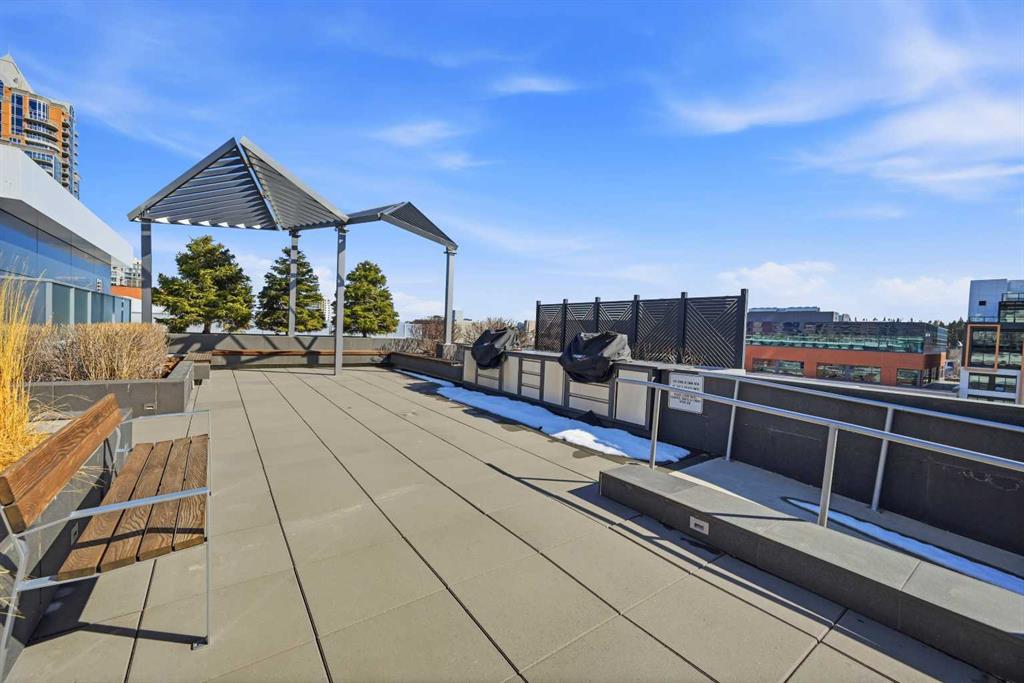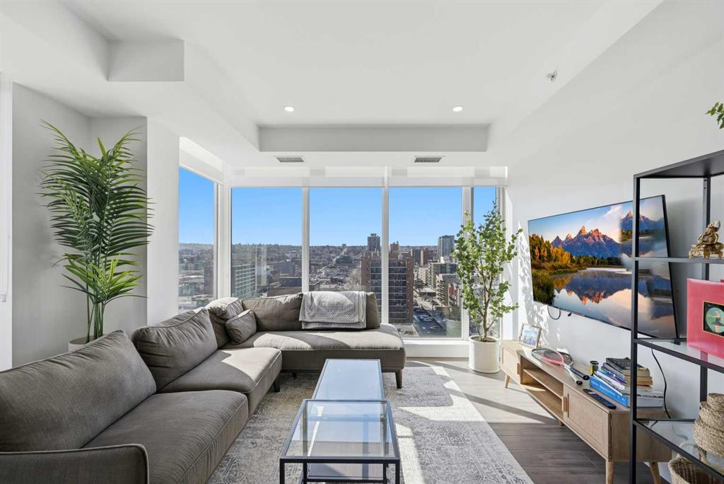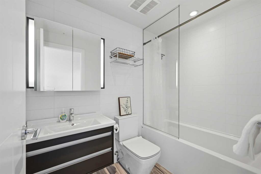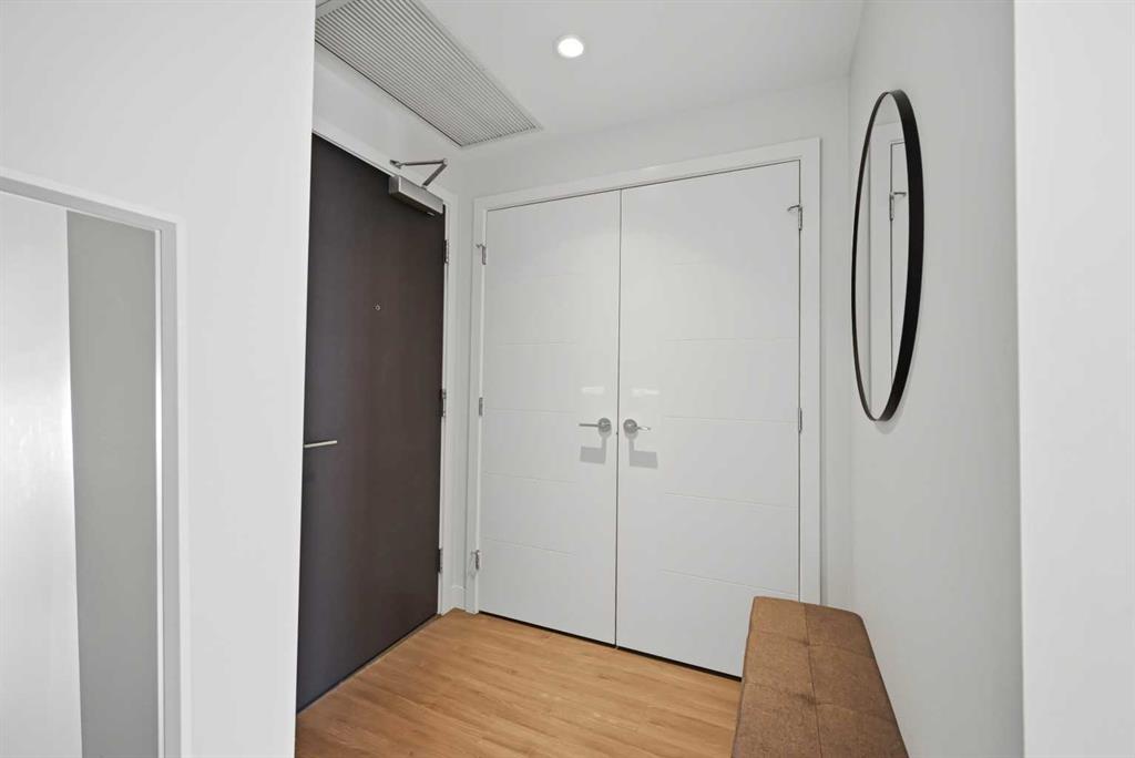 Welcome to The Royal! This stunning 2-bedroom, 2-bathroom southwest corner suite is filled with beautiful afternoon and evening sunshine. The well-designed floor plan and wall-to-wall, floor-to-ceiling windows create a bright, spacious feel throughout. The home features new wide vinyl plank flooring and modern flat ceilings, along with a stylish and functional kitchen complete with quartz countertops, a large central island with breakfast bar, premium appliances including a gas range, integrated fridge and dishwasher, plus a pantry and coffee station. Step outside to the massive double-sized balcony featuring lighting, electrical outlets, and gas BBQ hookups at both ends, perfect for relaxing or entertaining. The spacious primary bedroom includes a walk-in closet and a beautiful ensuite with a large glass shower and double vanity. A second bedroom and full bathroom offer flexibility for guests, a home office, or shared living, while in-suite laundry adds everyday convenience. Residents enjoy outstanding amenities including a fitness center, steam room, sauna, squash court, 24-hour concierge and security, outdoor courtyard, social lounge with TV and billiards, and a spacious rooftop patio with BBQ areas. The building is pet-friendly (with approval) and surrounded by nearby parks and green spaces. This exceptional unit also includes secure heated underground parking, a storage locker, and bike storage, a beautifully maintained urban home in a prime location.