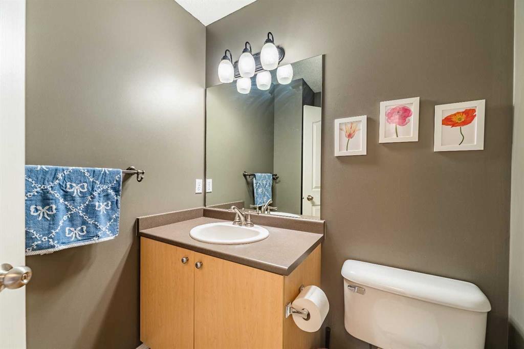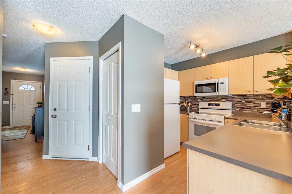 Welcome to this well-maintained 2 Storey townhome—an ideal alternative to renting. Backing onto peaceful green-space, this home offers 3 bedrooms and 2.5 bathrooms, including a convenient cheater ensuite on the upper level. The main floor features a spacious kitchen with ample counter space and abundant cabinetry, seamlessly flowing into an open-concept living and dining area—perfect for both everyday living and entertaining. The fully finished basement adds valuable living space with a large recreation room, along with dedicated laundry and additional storage. Enjoy the comfort of an attached, insulated single garage, plus extra driveway parking. Ideally located close to schools, transit, Crowfoot Centre, and scenic walking paths, this property presents a fantastic opportunity for first-time buyers or investors alike.