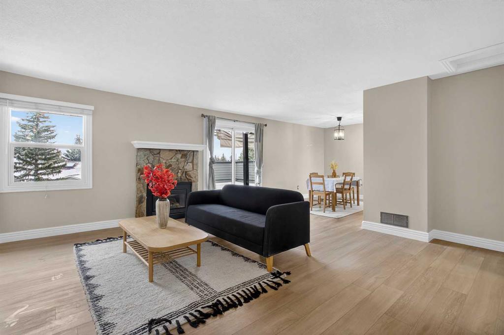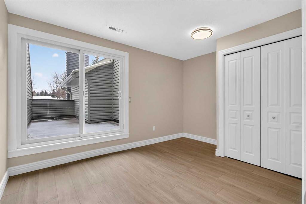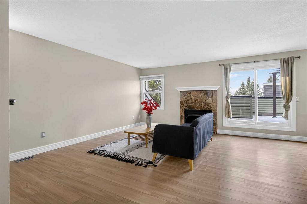 Step into comfort and convenience in this beautifully maintained 2-storey townhome tucked away in the quiet, well-managed community of Glamis Green. This unit has been touched up with all fresh paint, brand new LVP flooring throughout the home, the full bathroom has been fully renovated with all brand new amenities, kitchen is supplied with brand new stove and dishwasher. On the main floor there are 2 good-sized bedrooms, a full bathroom and laundry room. The primary bedroom has a private balcony, your own quiet outdoor retreat for morning coffee or evening winding. Going upstairs to find a huge open living room with large windows and abundant natural light. A sliding door opens to an outdoor patio with mountain view. Spacious dining area with a cozy gas fireplace. Kitchen with ample cabinetry space and a convenient 2-piece bathroom ideal for guests or busy mornings. The attached single garage provides secure parking, extra storage and year-round convenience. Private front patio offering additional outdoor living space. Situated in the heart of Glamorgan, this home keeps you close to everything: Westhills & Signal Hill shopping centres, Mount Royal University, Glenmore Reservoir pathways and parks, Transit routes and major roadways, Schools, playgrounds, and green spaces. This is the townhome everyone will be talking about — act fast!