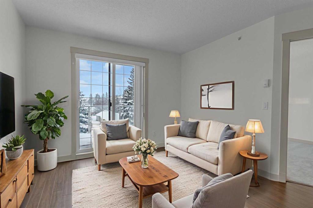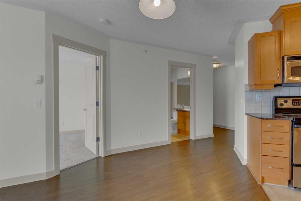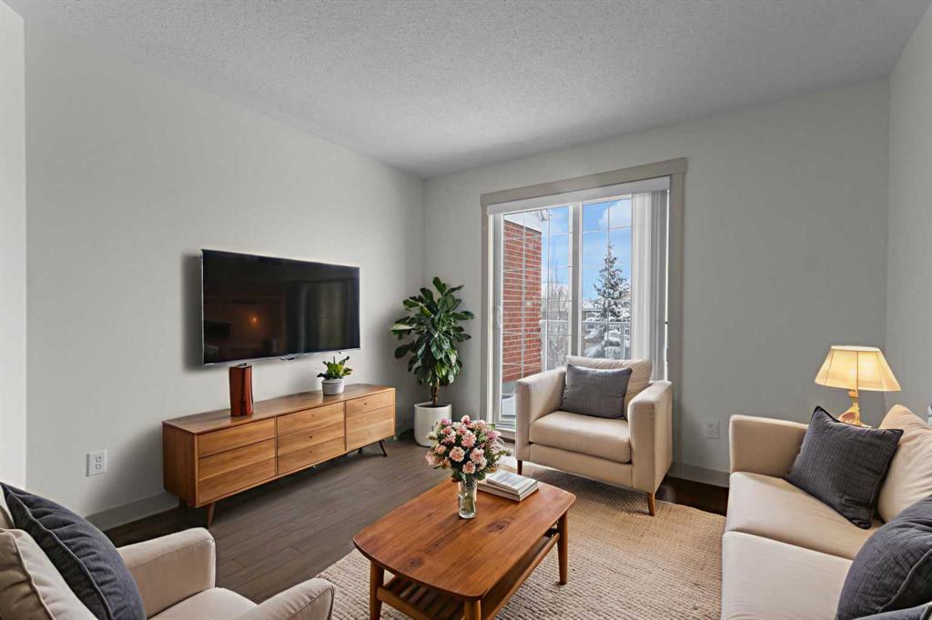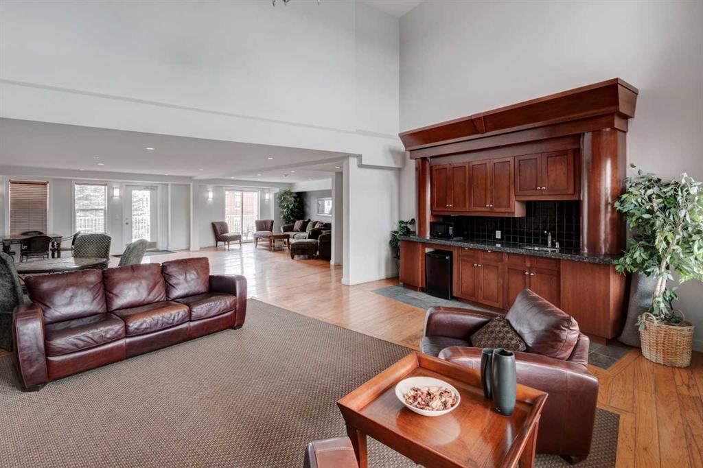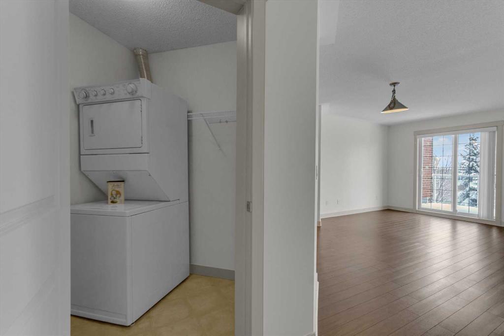Welcome to this very clean top-floor, south-facing condo in the heart of Marda Loop, featuring fresh paint, brand new carpet, titled underground parking, and a titled storage locker. This well laid out one bedroom plus den condo is bright, welcoming and move-in ready. The open concept kitchen offers lots of cabinetry, stainless steel appliances and opens on to space for a dining table. The sun filled living room showcases beautiful views of the surrounding neighbourhood and beyond, while sliding patio doors open to a private south-facing balcony complete with a gas line for your BBQ. The bedroom has brand new carpet, a walk-through closet with shelving and access to the 4-piece cheater ensuite. The bathroom was just updated with a new bathroom fan, new light fixture and new flat painted ceiling. At the front of the condo is the flexible den space, ideal for an at home office or mudroom. In-suite laundry with lots of additional space in this room for your vacuum, linens, and anything else you wish to store in-suite. Convenient location within the building, just steps from the elevator that takes you directly to the parkade where your parking stall and storage locker are located. Enjoy living in the heart of Marda Loop in this well managed, pet friendly building with underground visitor parking, underground bike storage, third level party room with large balcony, and all the utilities included (gas, electricity, water, & sewer) in the reasonable condo fees. Just steps from Starbucks, restaurants, Safeway, banks, parks and schools. Easy access in and out of the community to Crowchild Trail and Glenmore Trail.