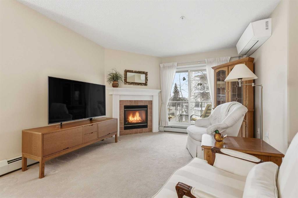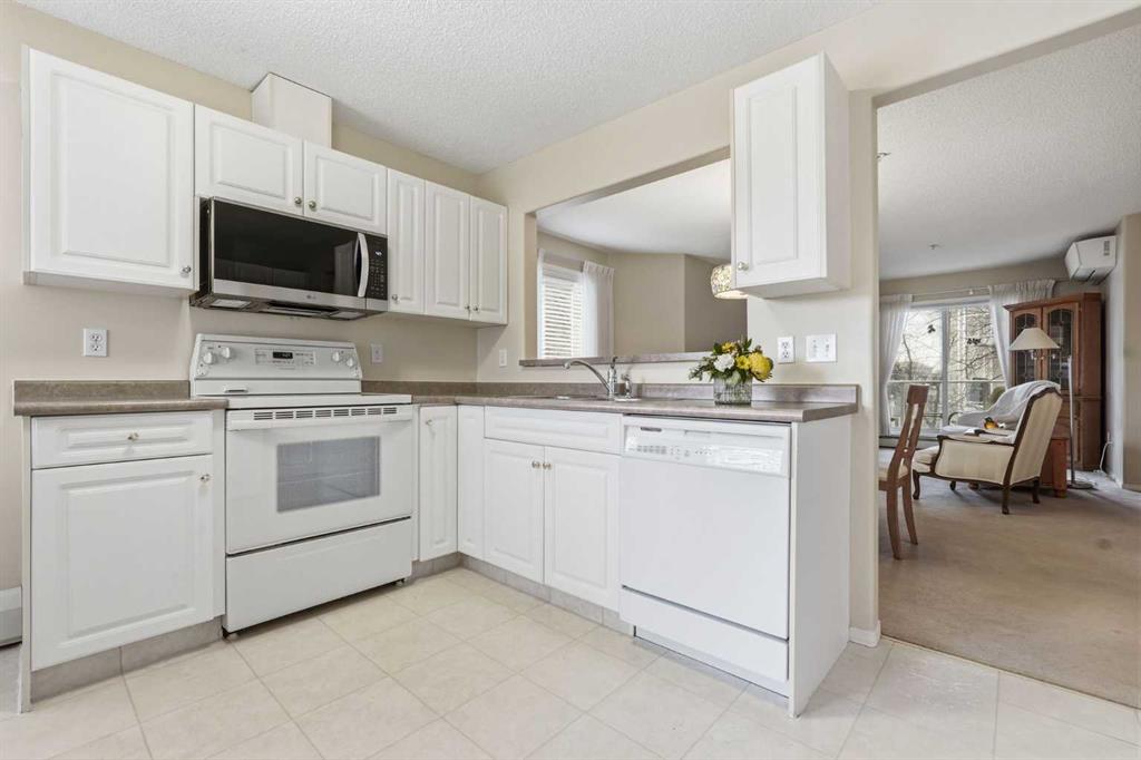 One of the largest units in the complex, this bright corner condo offers over 1,030 sq ft of well-designed living space with exceptional natural light throughout. The layout is both functional and spacious, featuring 2 bedrooms and 2 full bathrooms, including a generous primary retreat with walk-in closet and private ensuite. This home stands out with rare air conditioning, along with updated appliances including a newer washer, dryer, refrigerator, and microwave hood fan, all contributing to a move-in ready, low-maintenance lifestyle. Pride of ownership is evident, with the unit showing in immaculate condition. Enjoy a east-facing balcony overlooking the courtyard, perfect for morning sun and quiet relaxation. Additional features include titled underground parking. Located in an incredibly convenient Shawnessy location, just steps to the LRT, shopping, restaurants, and everyday amenities, this is a turnkey opportunity in one of the most accessible pockets in the south.